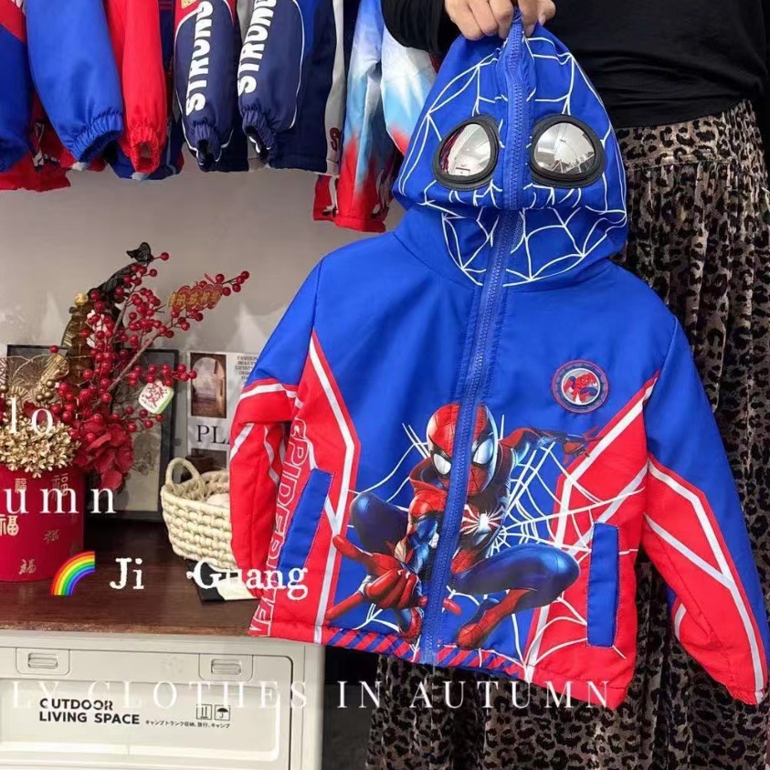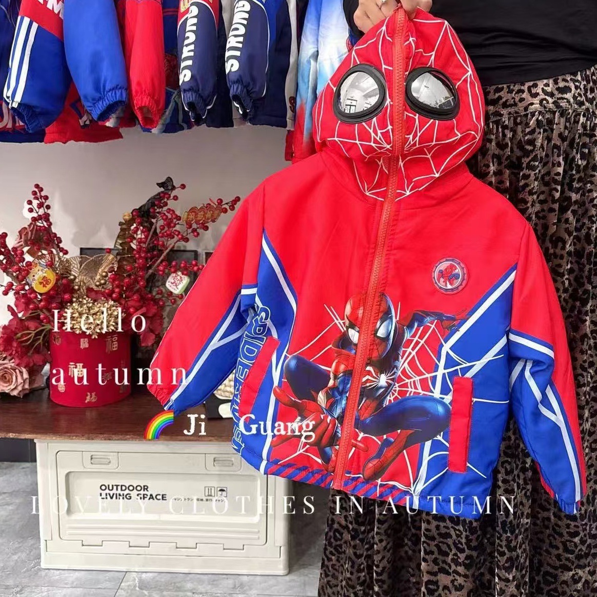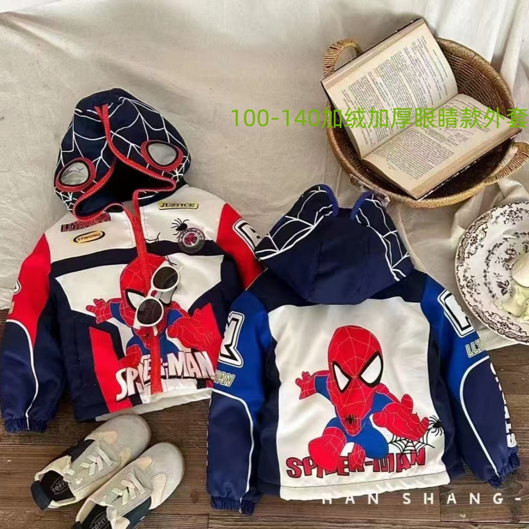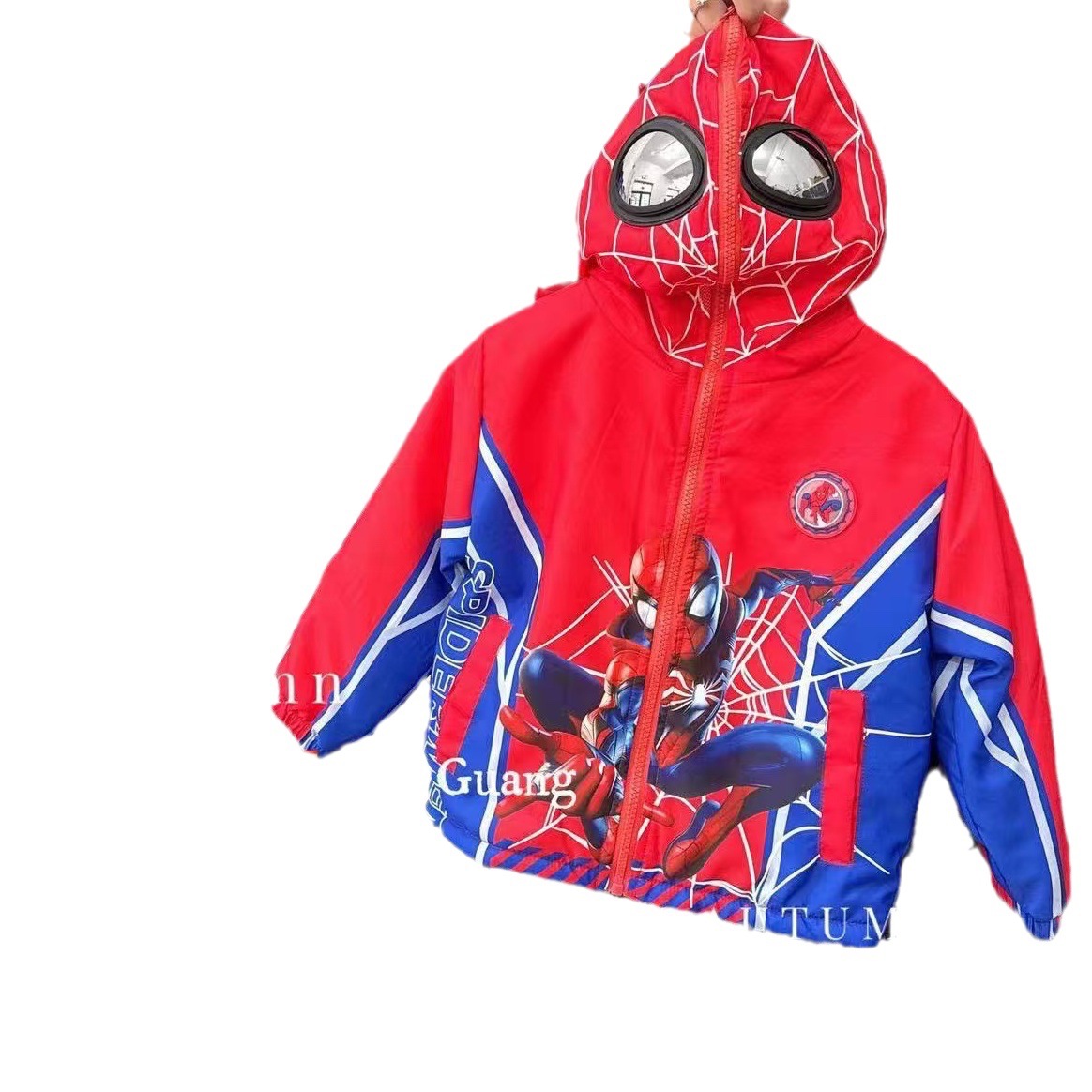 Мальчик-паук куртка осенняя и зимняя толстая ветровка красивые детские очки с капюшоном и куртка