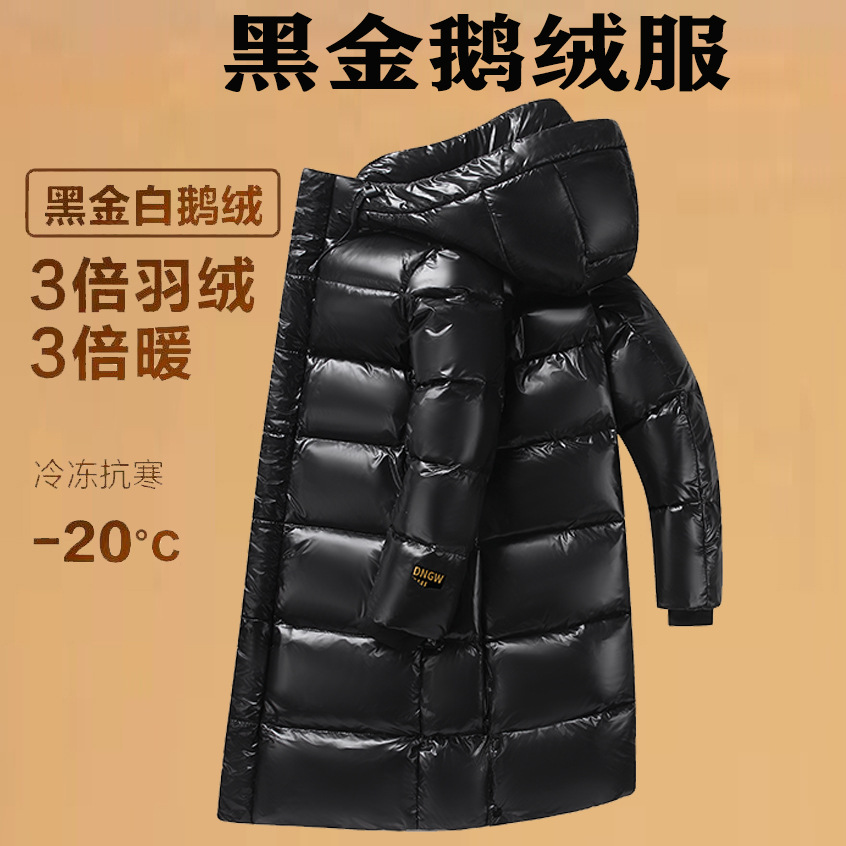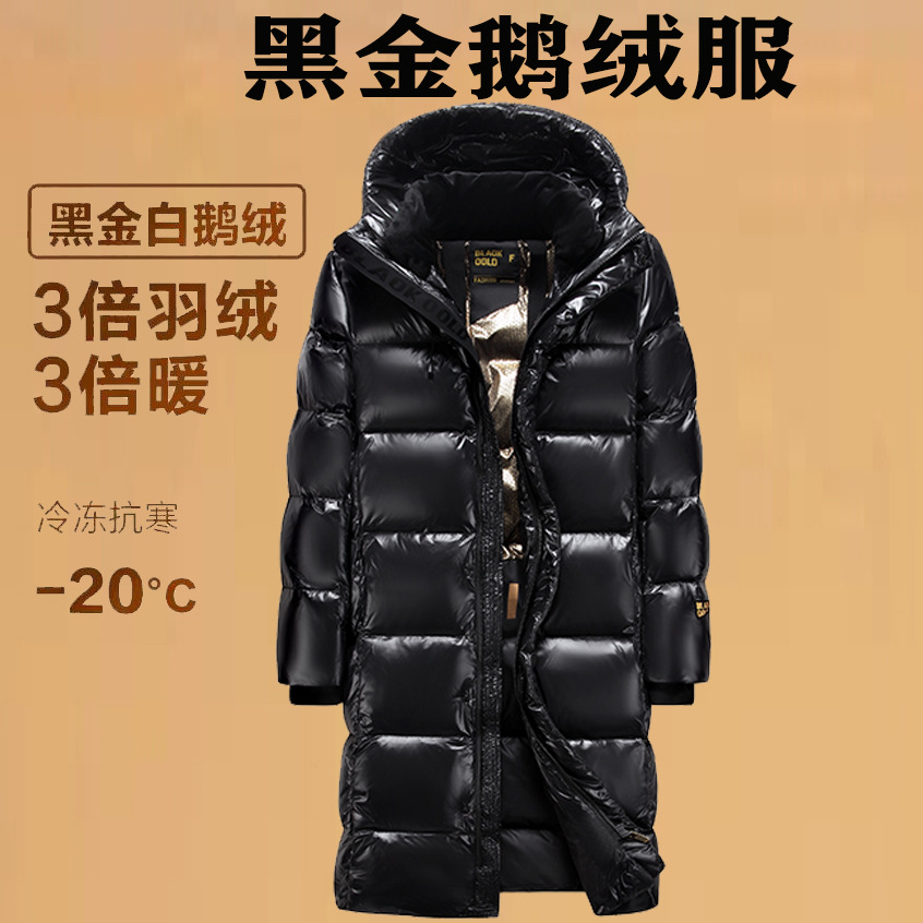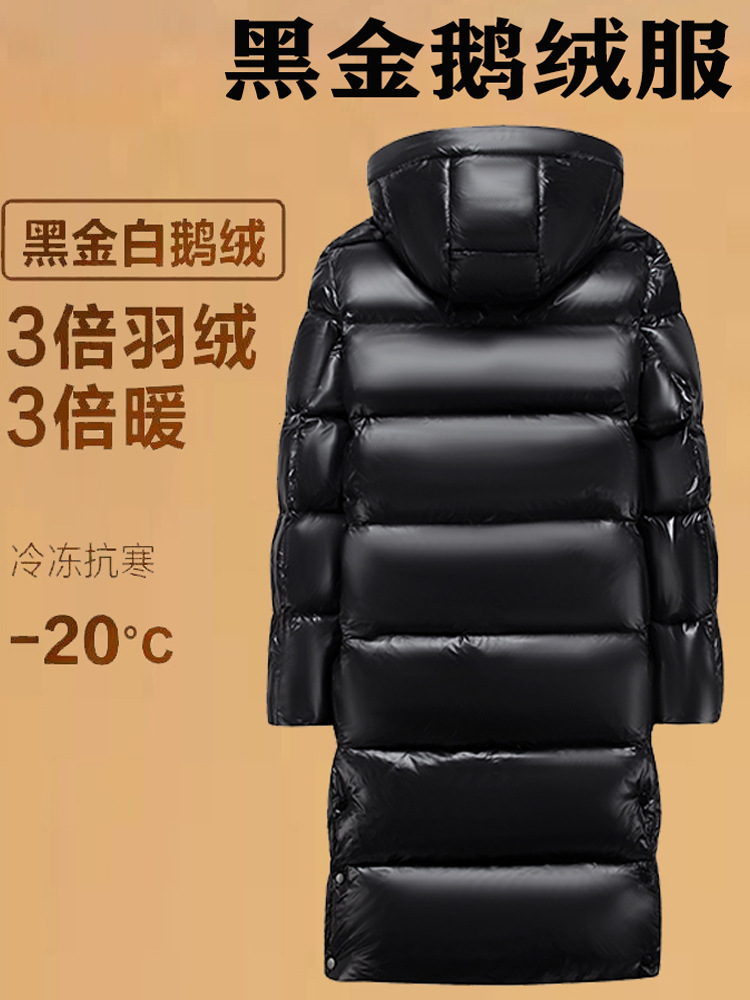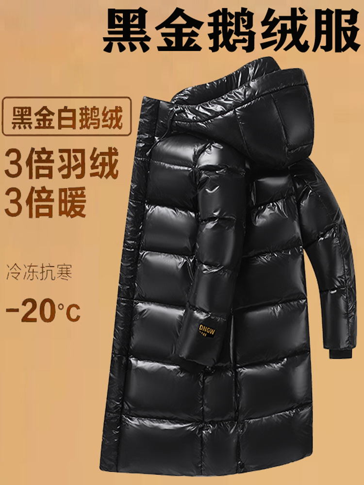 Высококачественный пуховик из гусиного пуха черного золота и белого цвета для мужчин и женщин, длинная верхняя одежда для мужчин и женщин, выше колена, утолщенная зимняя, очень холодная и красивая.