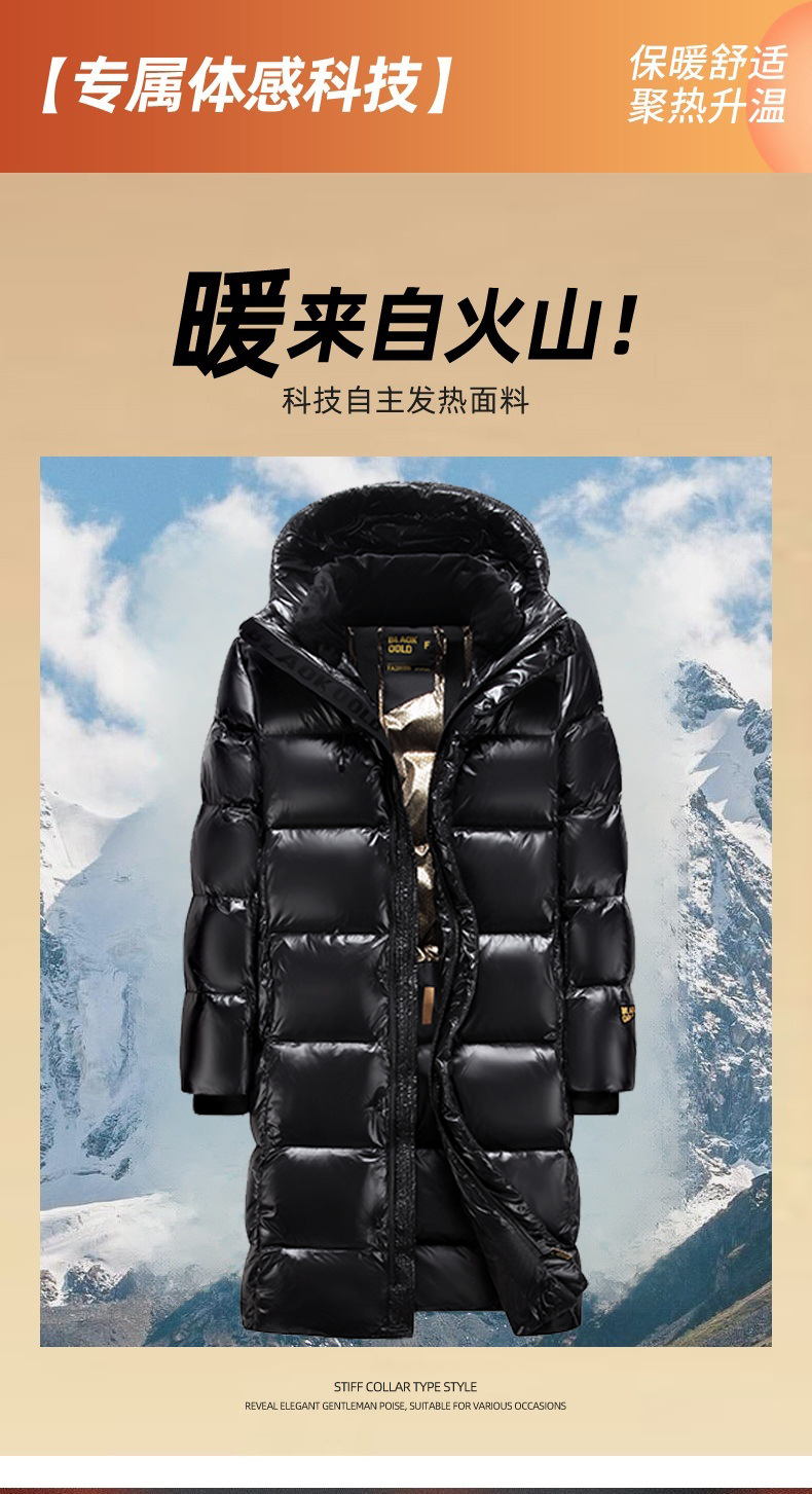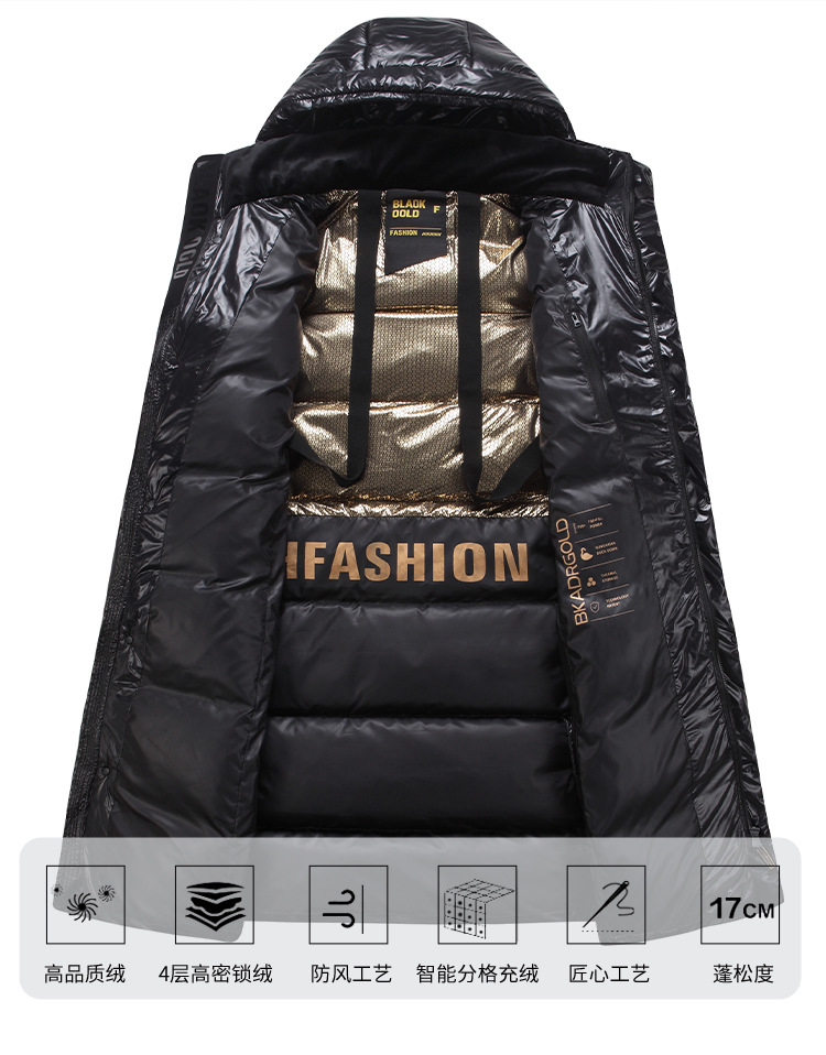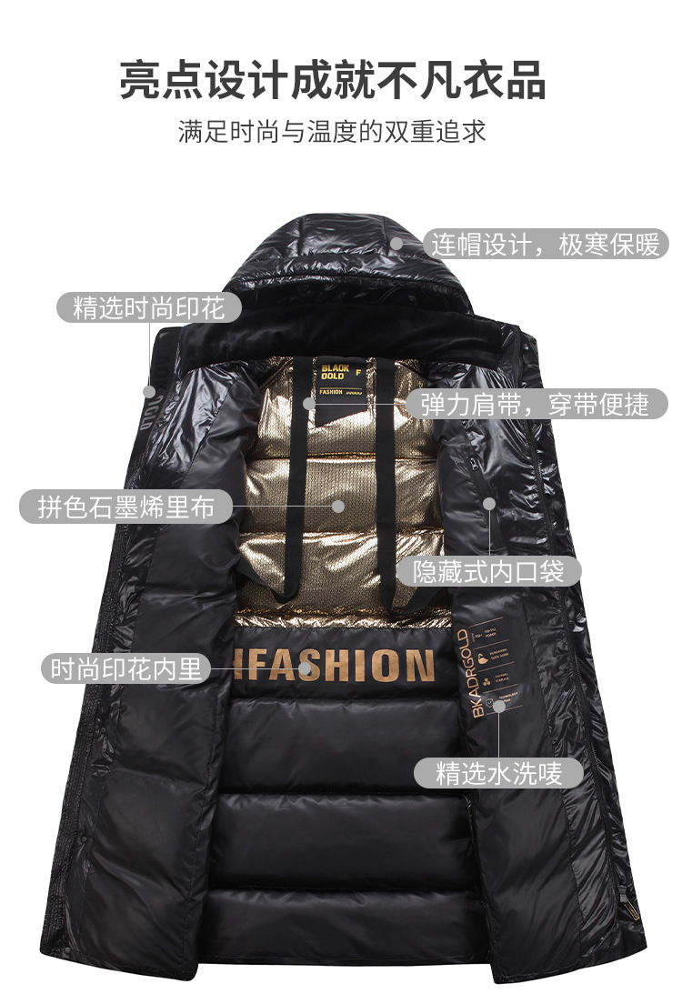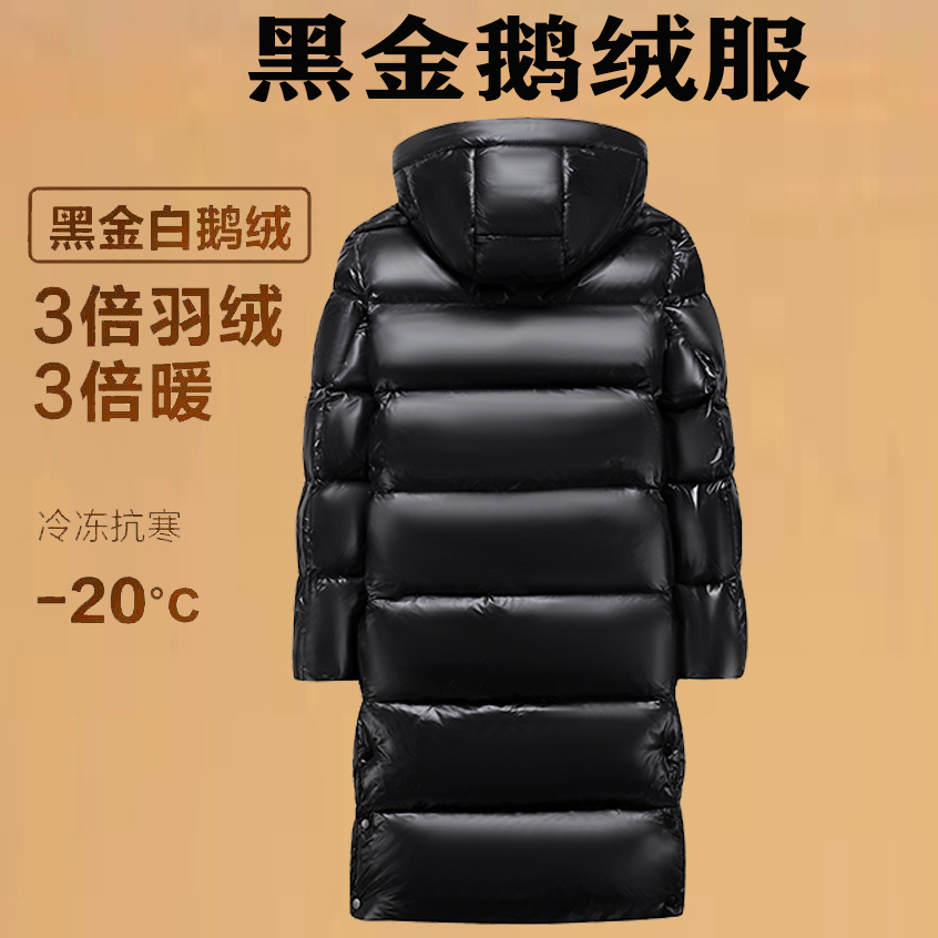 Высококачественный пуховик из гусиного пуха черного золота и белого цвета для мужчин и женщин, длинная верхняя одежда для мужчин и женщин, выше колена, утолщенная зимняя, очень холодная и красивая.