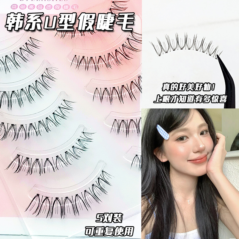 5 пар корейских женских групп U-образный прозрачный стебель накладные ресницы целые комиксы фея ленивый новичок ресницы