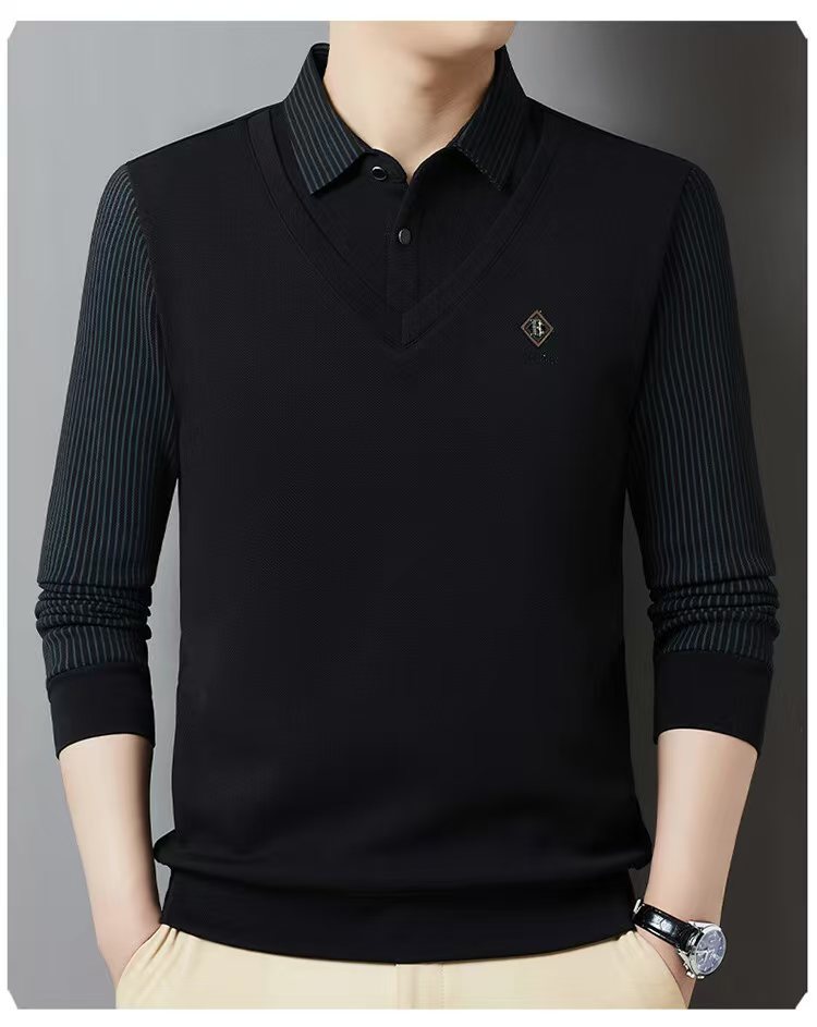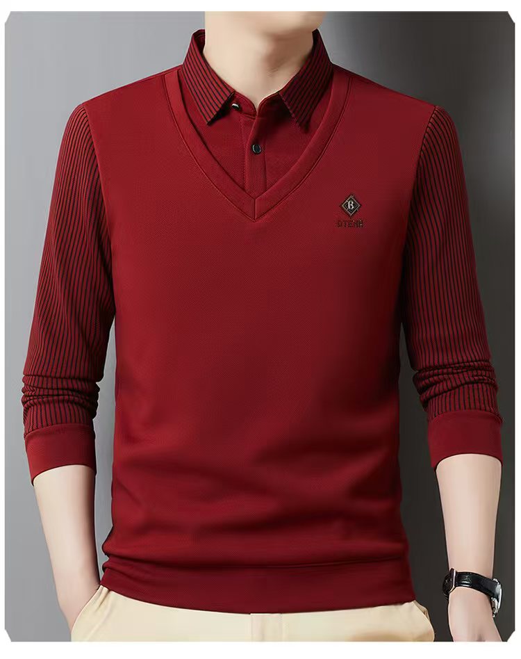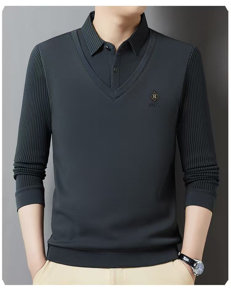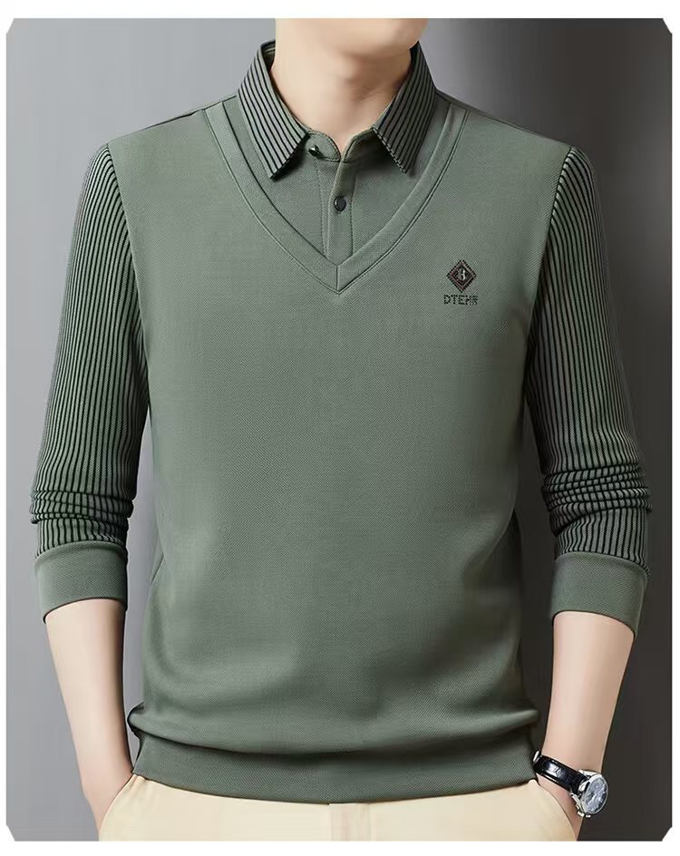 Поддельные две части воротника рубашки плюс бархатный свитер