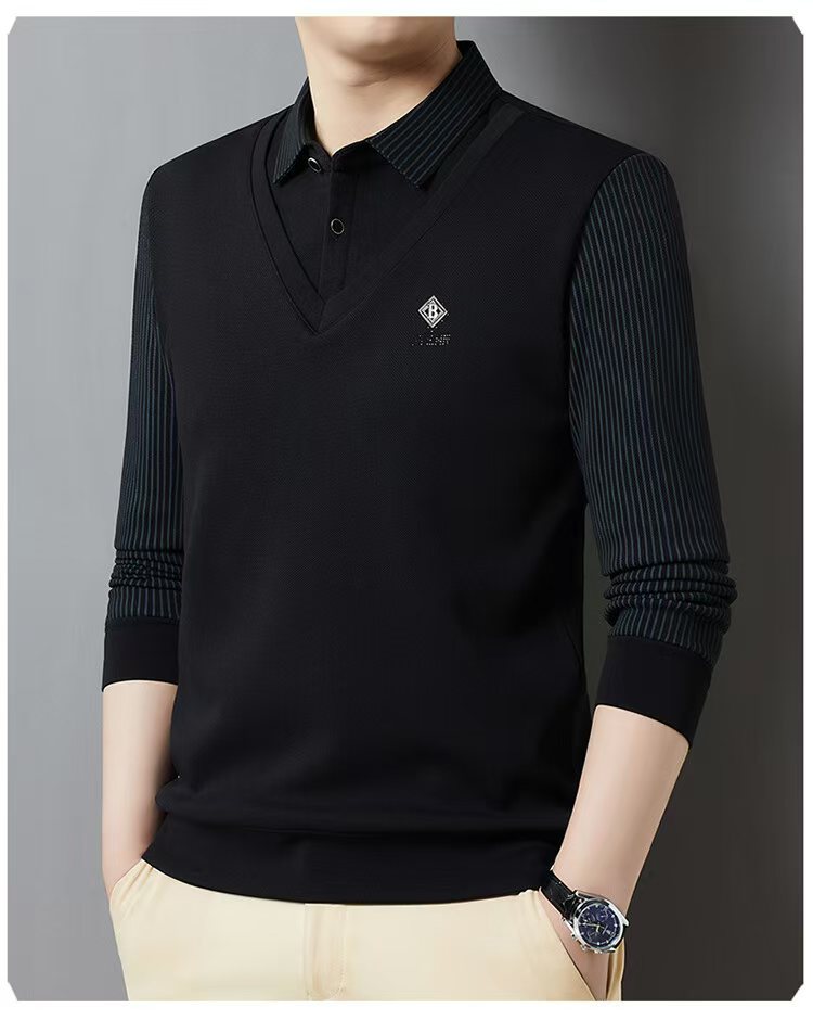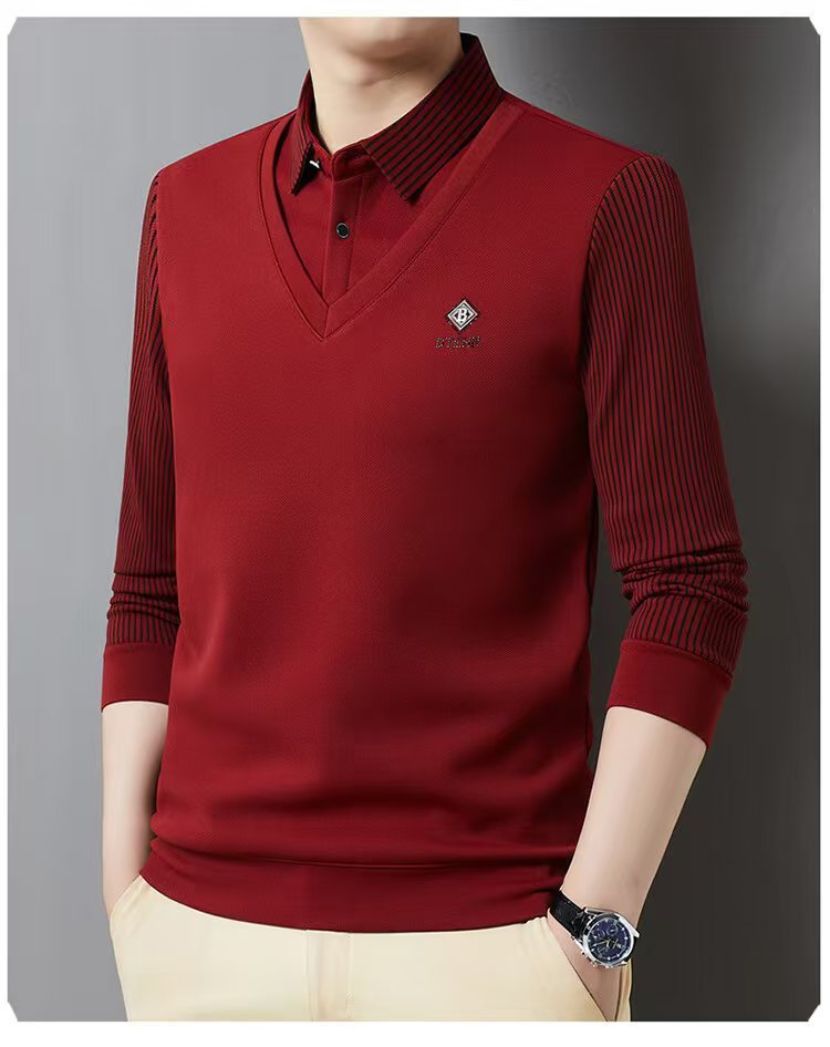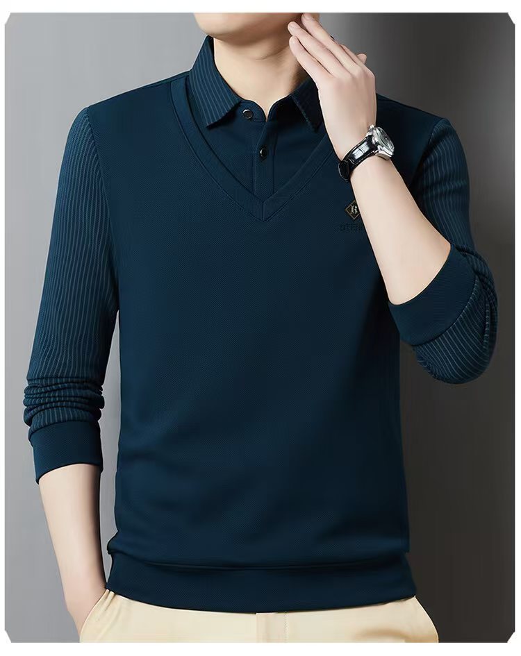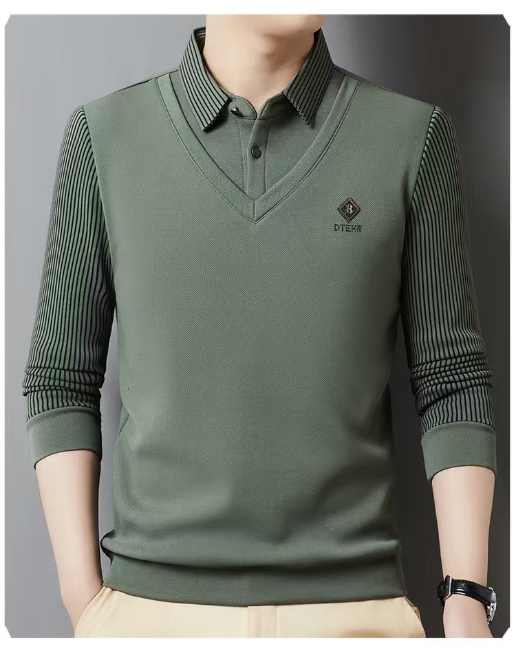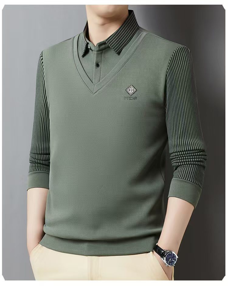 Поддельные две части воротника рубашки плюс бархатный свитер