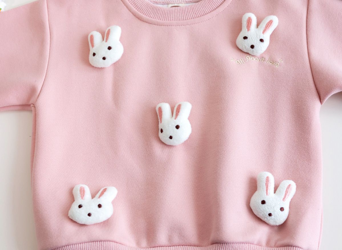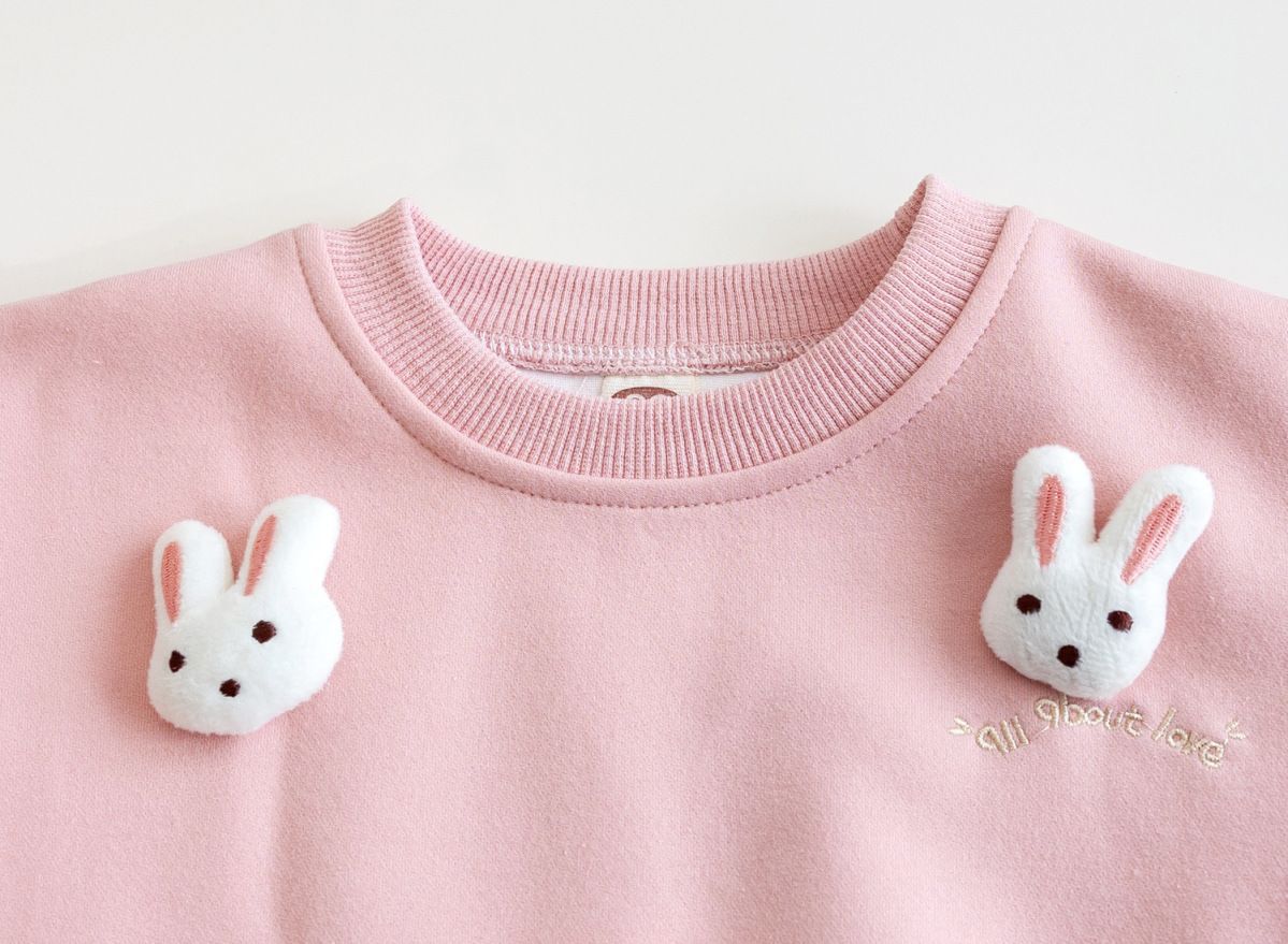 2024 осенний костюм новая девочка малышка свитера корейская версия мультяшный топ маленькая девочка трехмерный декоративный кролик детская одежда оптом