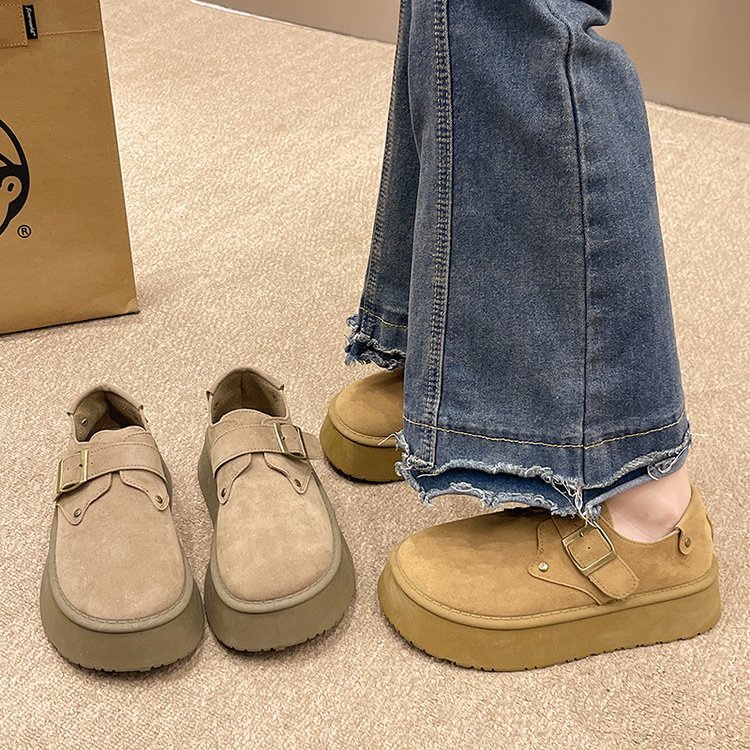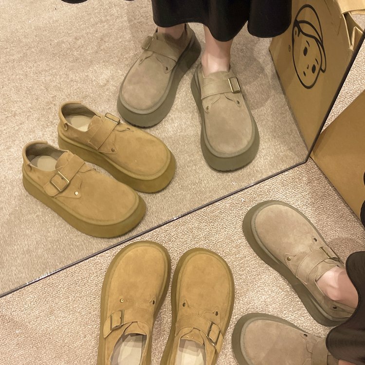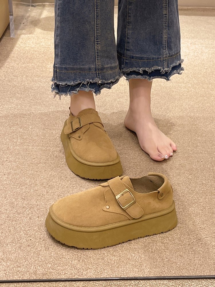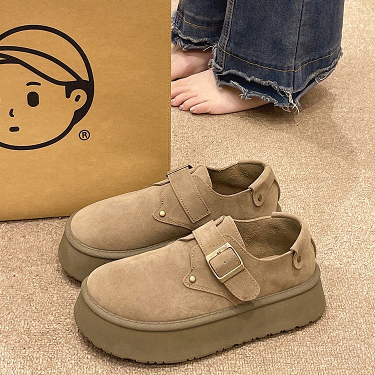Женские туфли Birkenstock на толстой подошве, осень 2024, новые лоферы на платформе без шнуровки с круглым носком