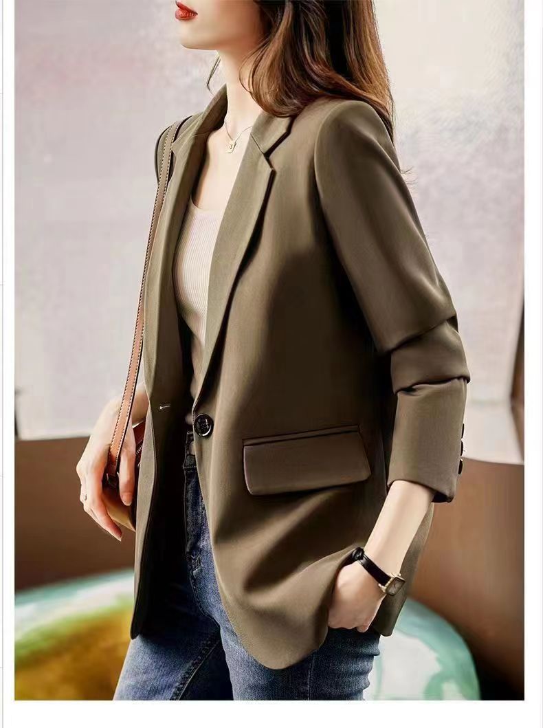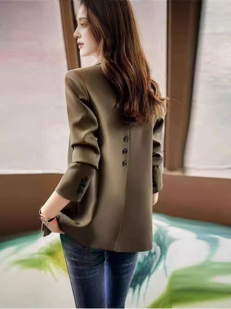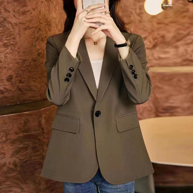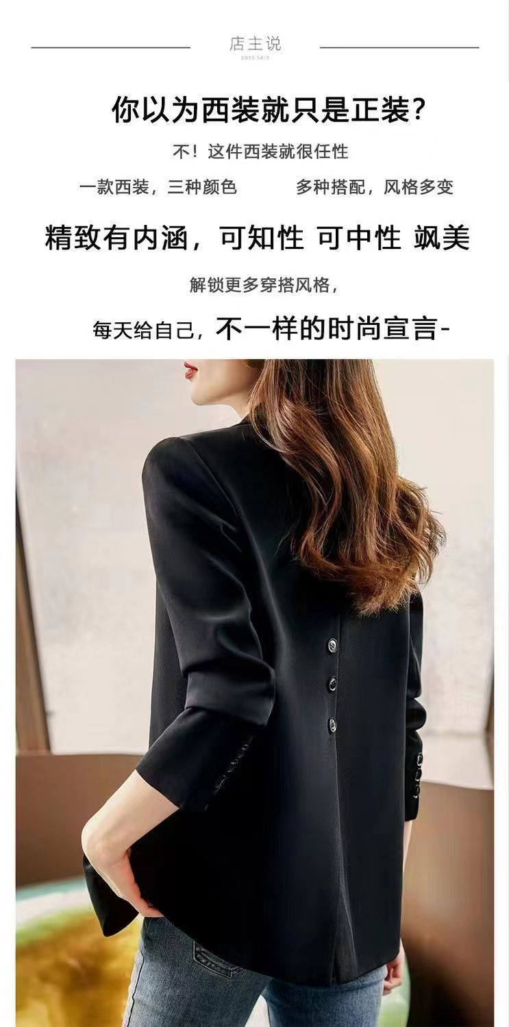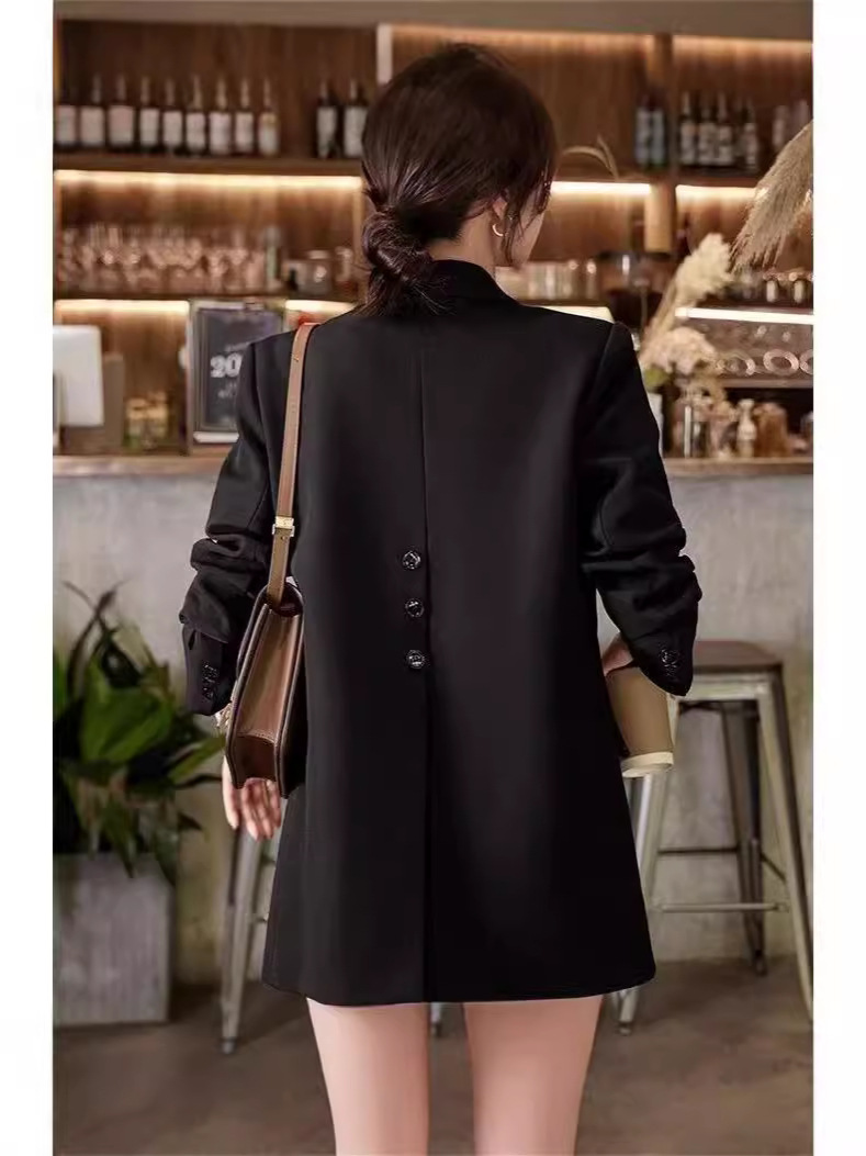 Весенний 2025 универсальный черный блейзер свободного кроя для невысоких женщин с мягкими плечами, утягивающий силуэт.