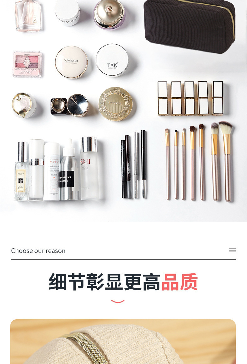 Новая простая вельветовая портативная сумка-клатч 2025 года, вместительная косметичка, дорожная сумка для хранения, женская сумка для макияжа