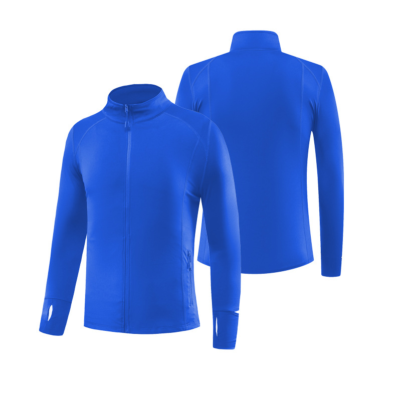 Мужская и женская осенне-зимняя быстросохнущая одежда для фитнеса из тонкого вельвета, повседневная одежда для бега, высокоэластичная тренировочная одежда для бега с воротником-стойкой, спортивные куртки