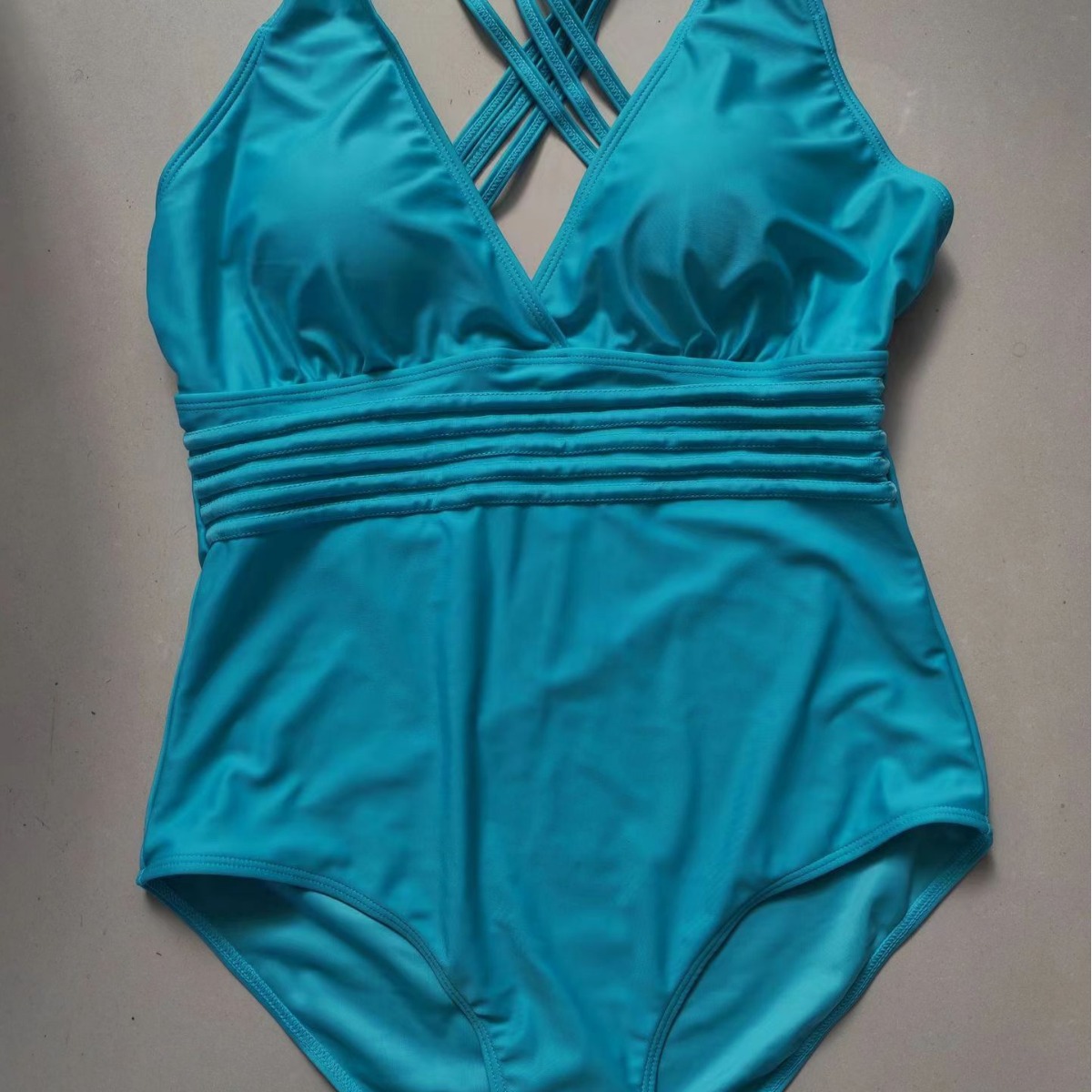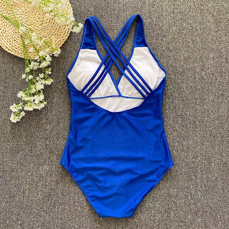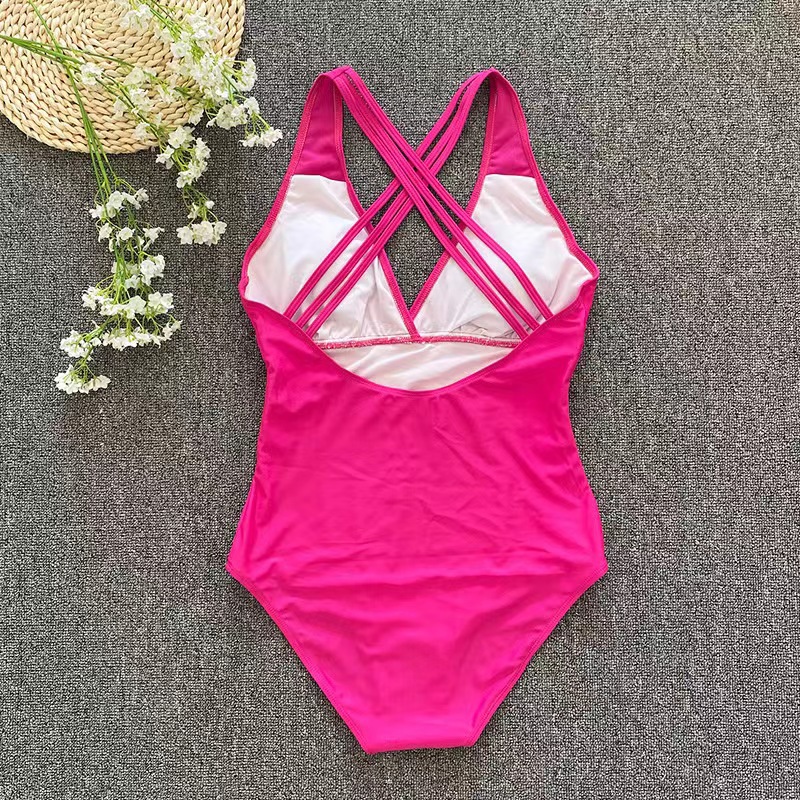 Amazon AliExpress 2024, новый цельный купальник в европейском и американском стиле с цветными блоками, женственное бикини с открытой спиной в европейском и американском стиле
