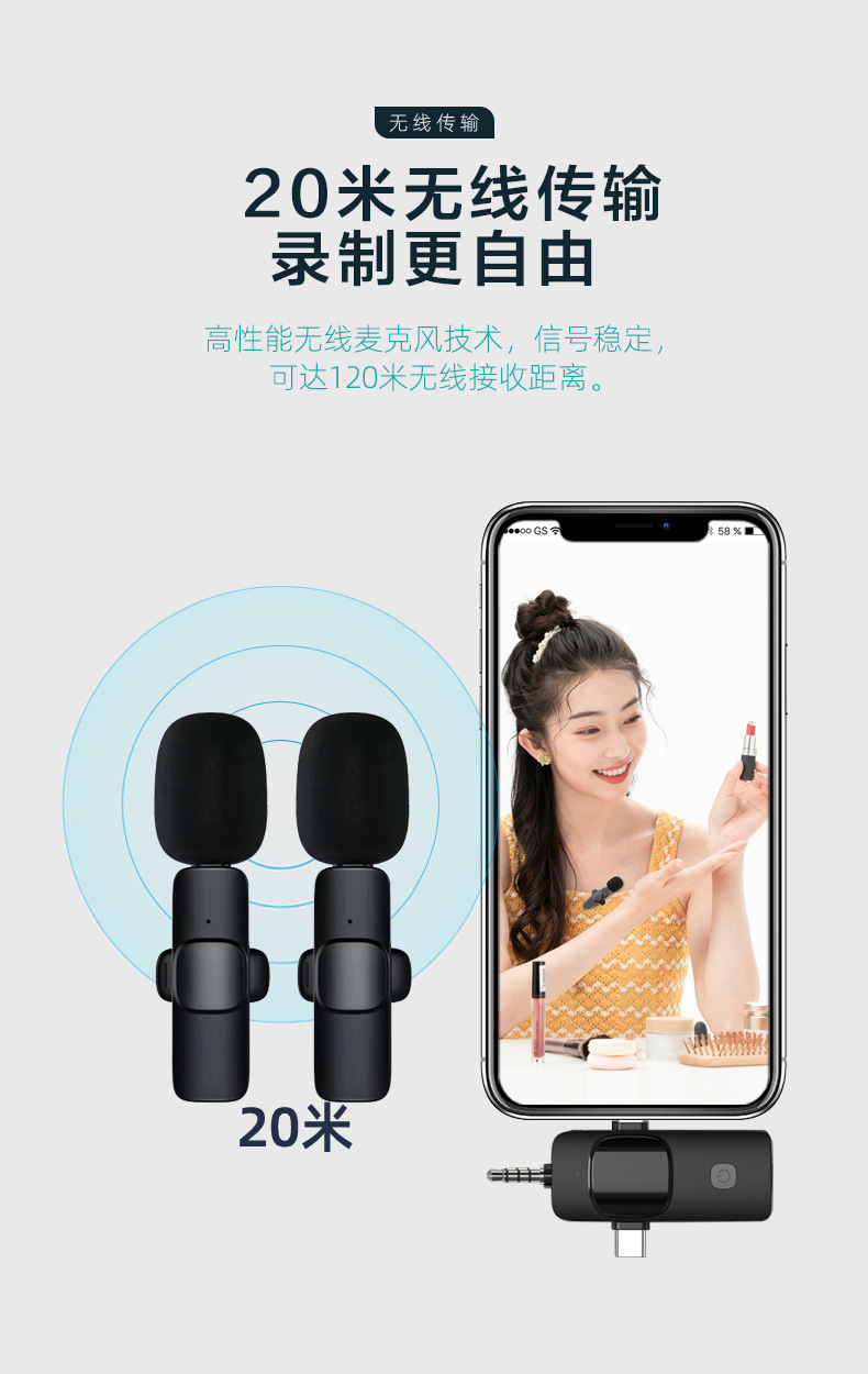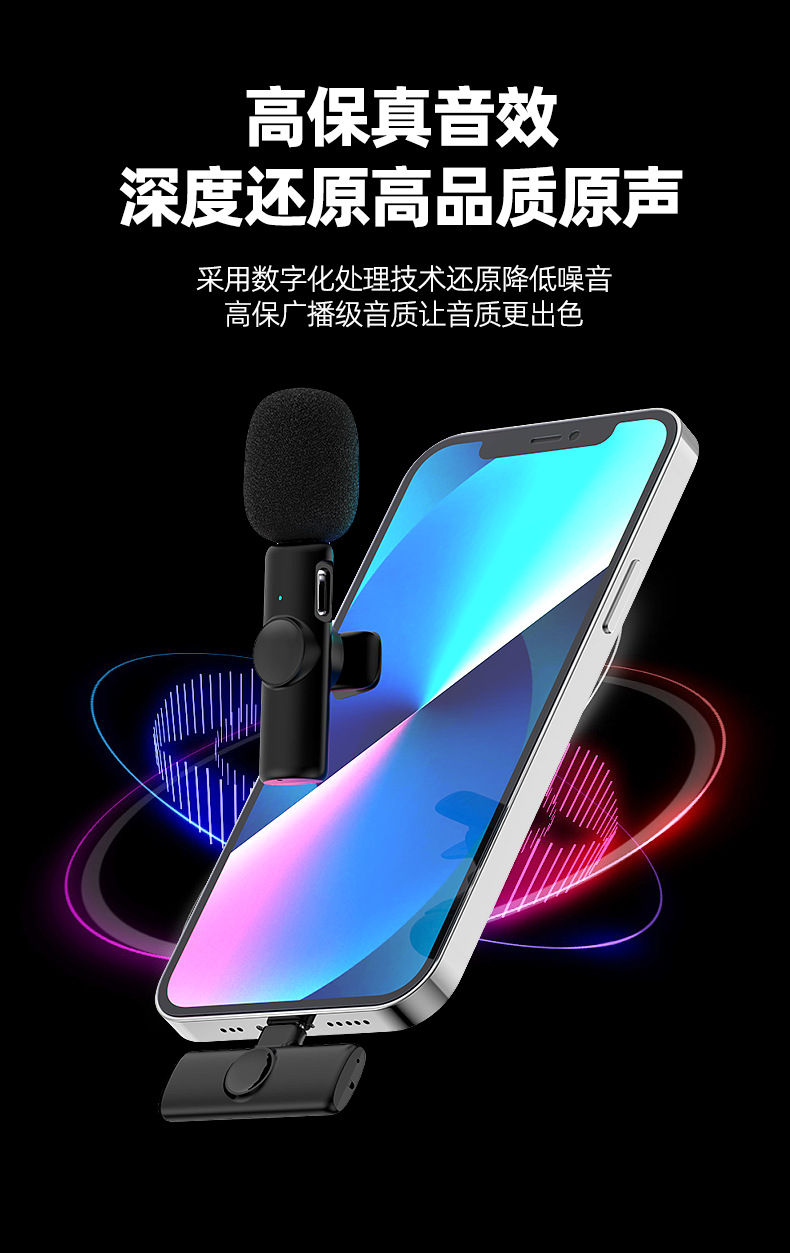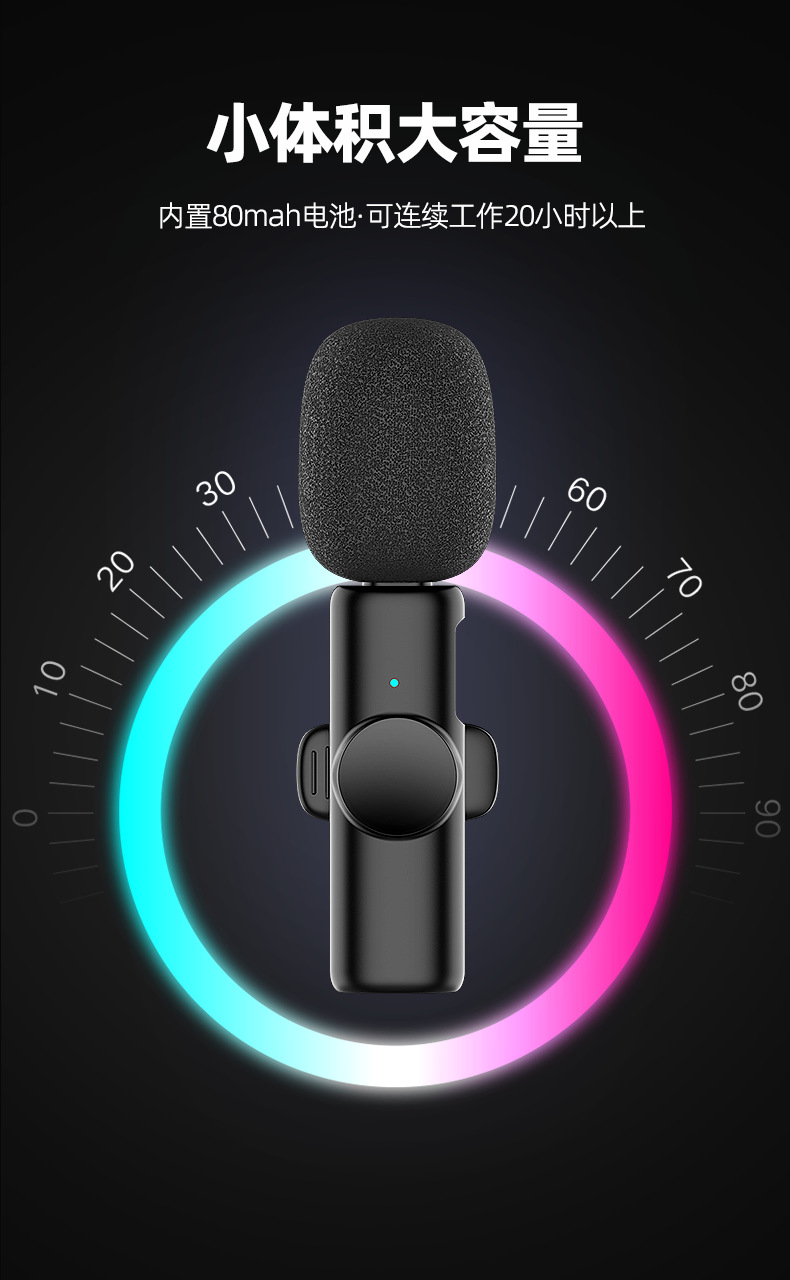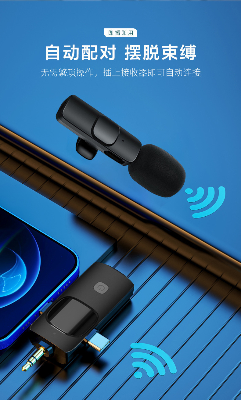 Оригинальный беспроводной воротник микрофон мобильный телефон на открытом воздухе встряхивая звук видео запись интеллектуального радиозвука с шумоподавлением мини-микрофон