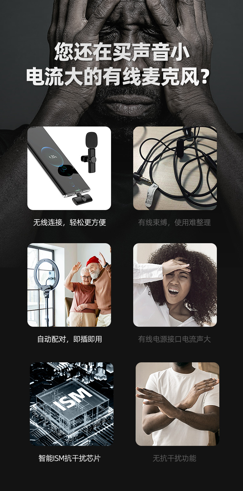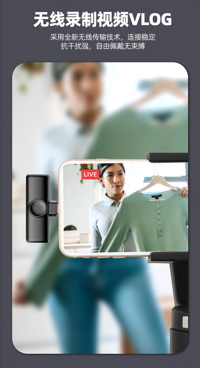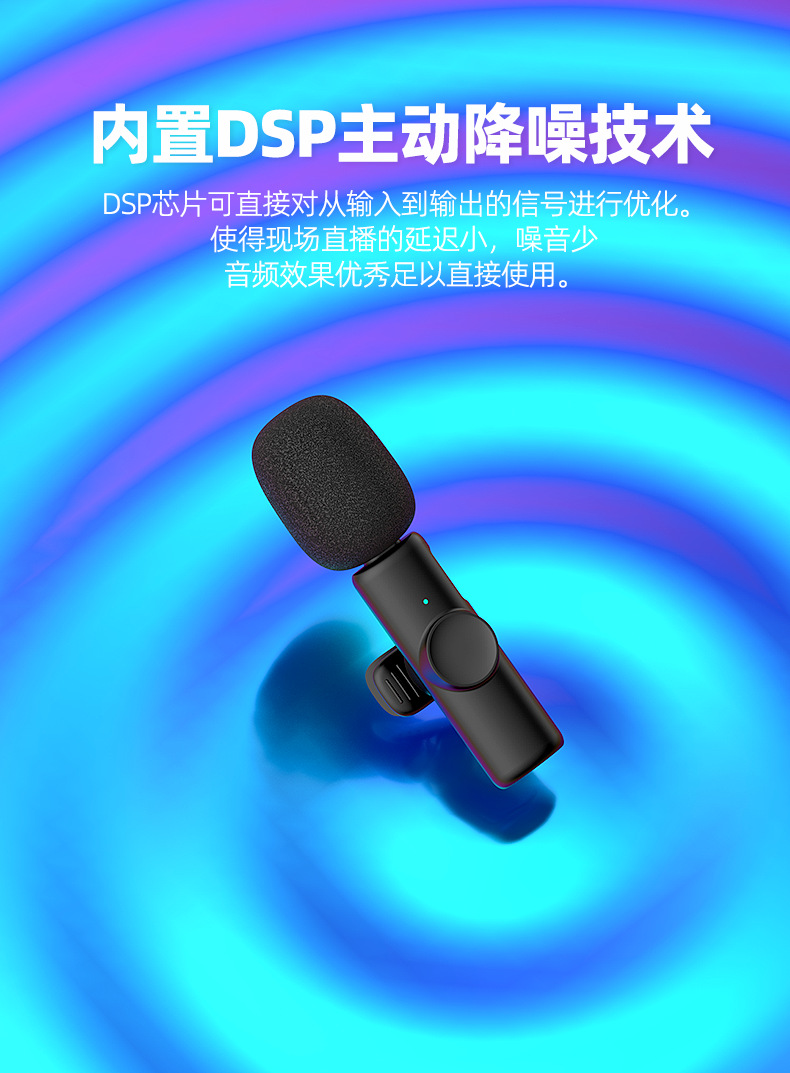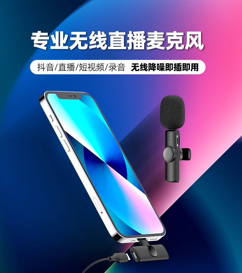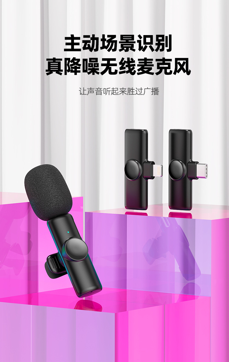 Оригинальный беспроводной воротник микрофон мобильный телефон на открытом воздухе встряхивая звук видео запись интеллектуального радиозвука с шумоподавлением мини-микрофон