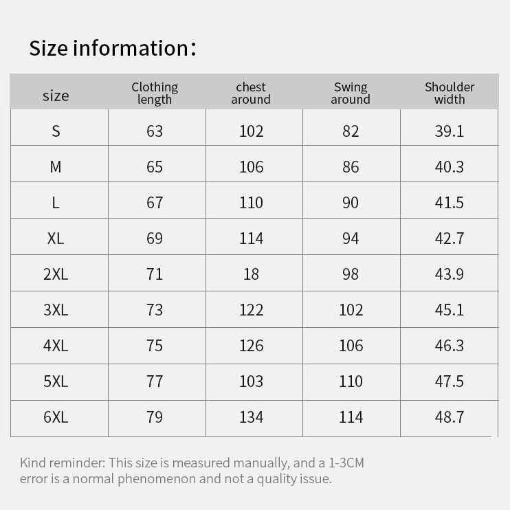S; M; L; XL; 2XL; 3XL; 4XL; 5XL; 6XL