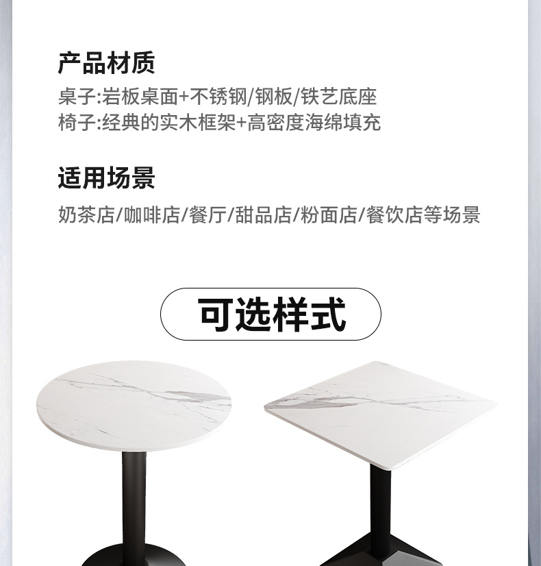 Сланцевый обеденный стол для коммерческого общественного питания, гостиничный стол и стулья, ресторанная столовая, чай с молоком, кофе, фаст-фуд, ресторан, квадратный стол, небольшой круглый стол для переговоров