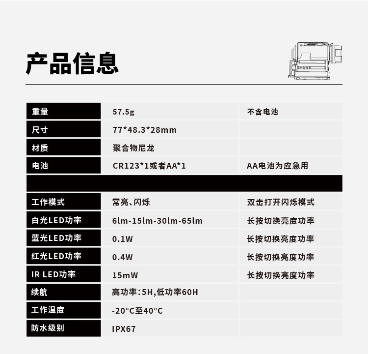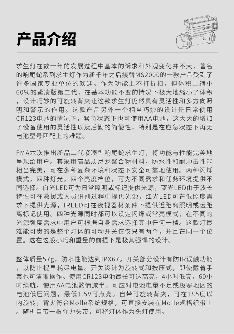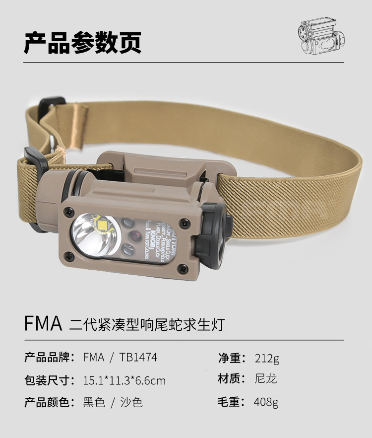 Компактная лампа для выживания Grattlesnake второго поколения FMA с аксессуарами TB1484-BK