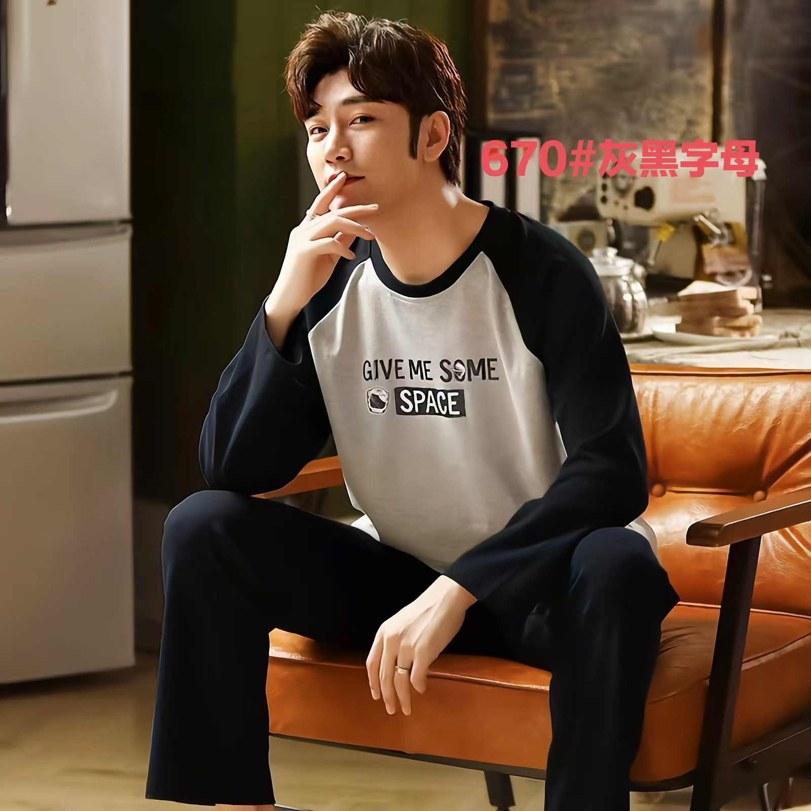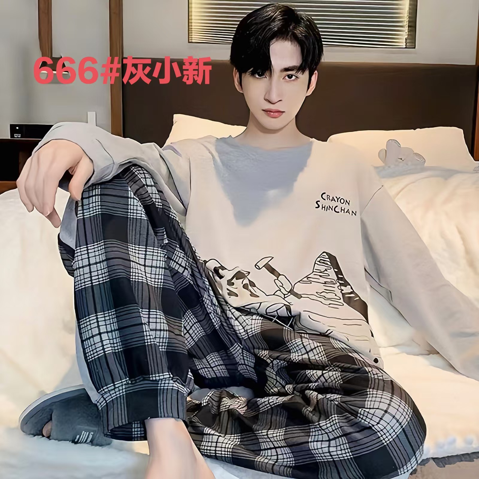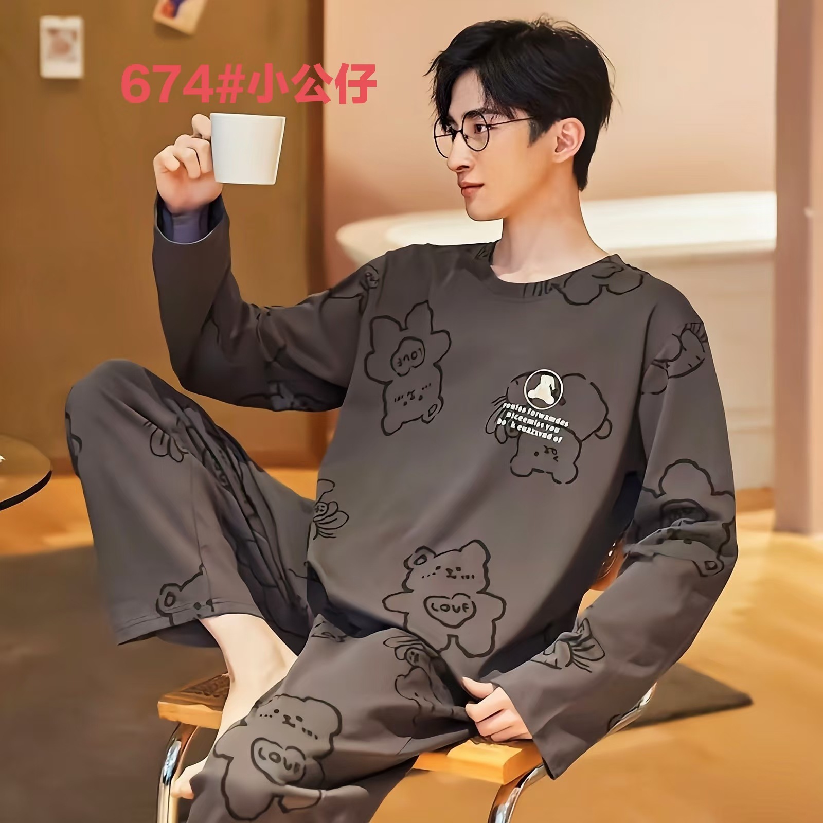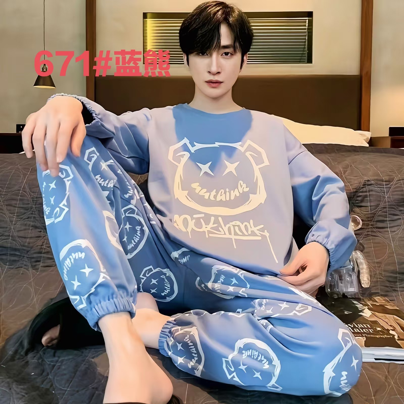 Мужские пижамы из хлопка с длинными рукавами, весна и осень, новый стиль, домашняя одежда с героями мультфильмов для мальчиков-подростков, свободный костюм больших размеров