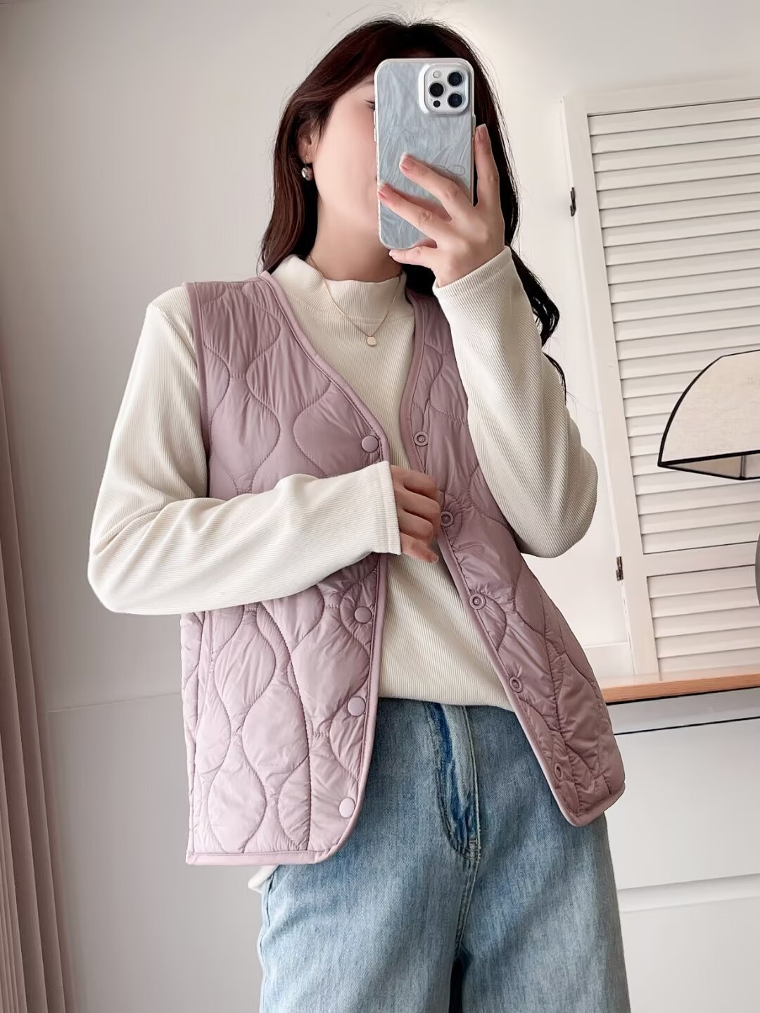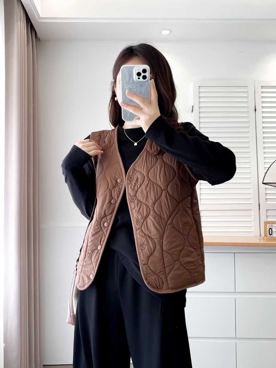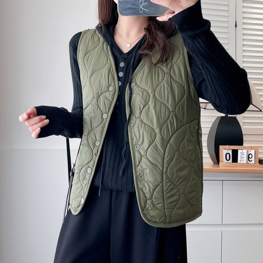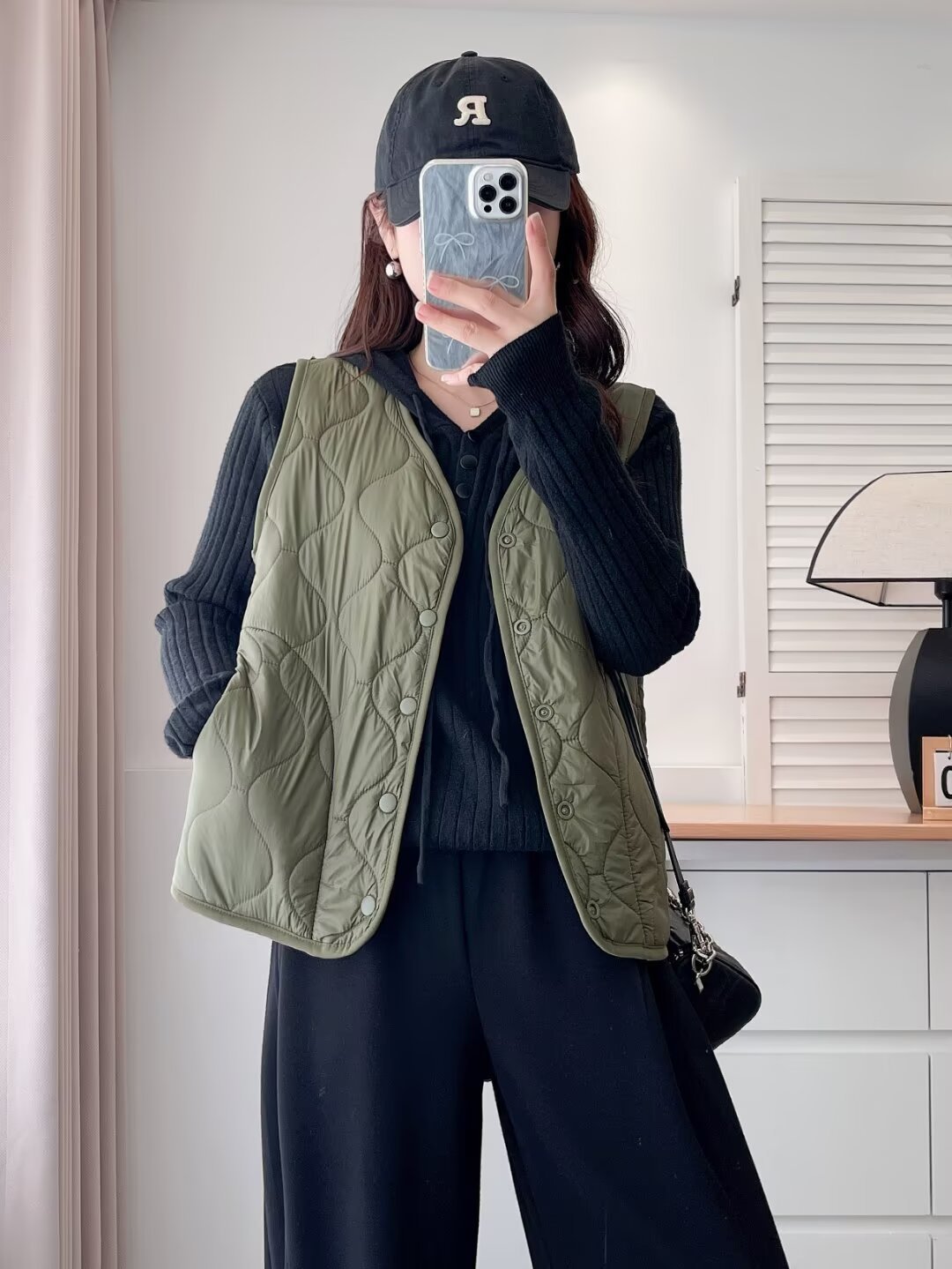 Fat MM плюс размер 2024 осенняя новая женская одежда корейская мода минималистский V-образный вырез дикий жилет теплая куртка для женщин 473