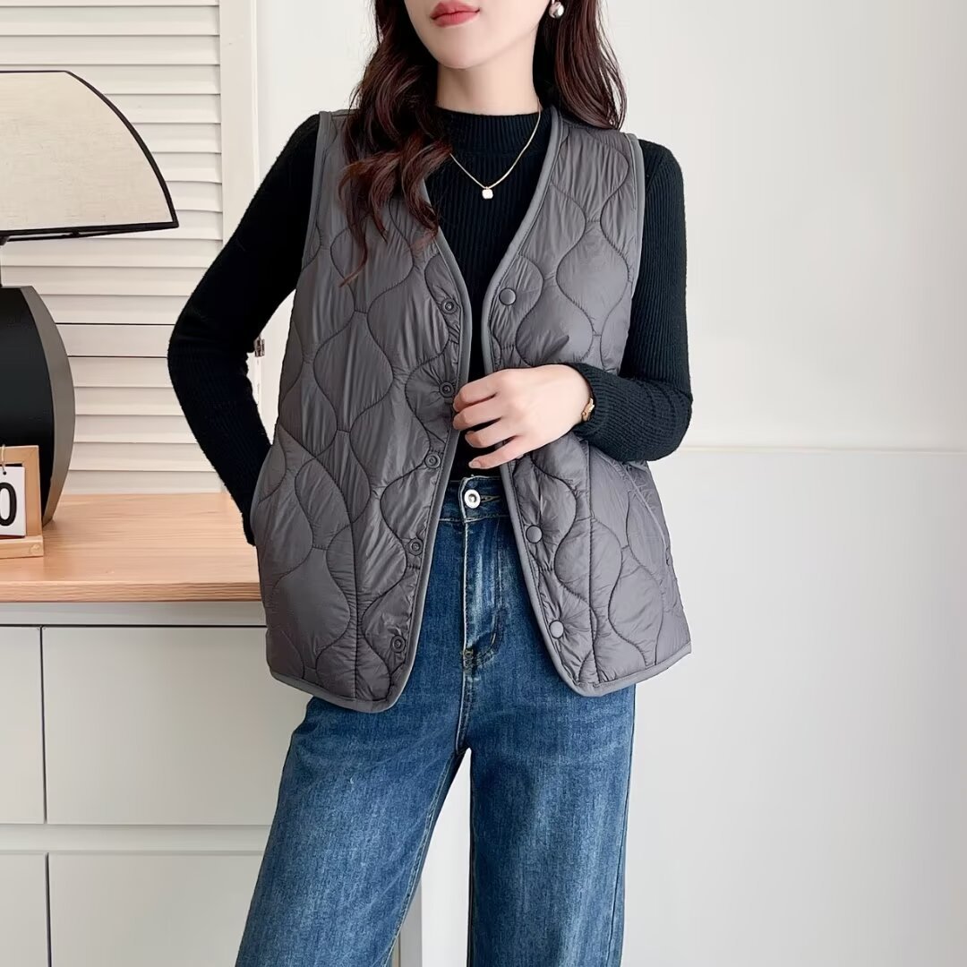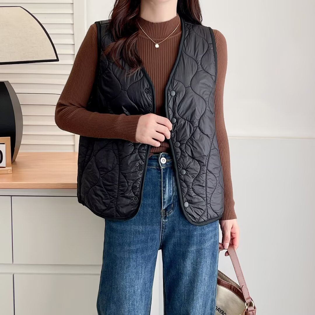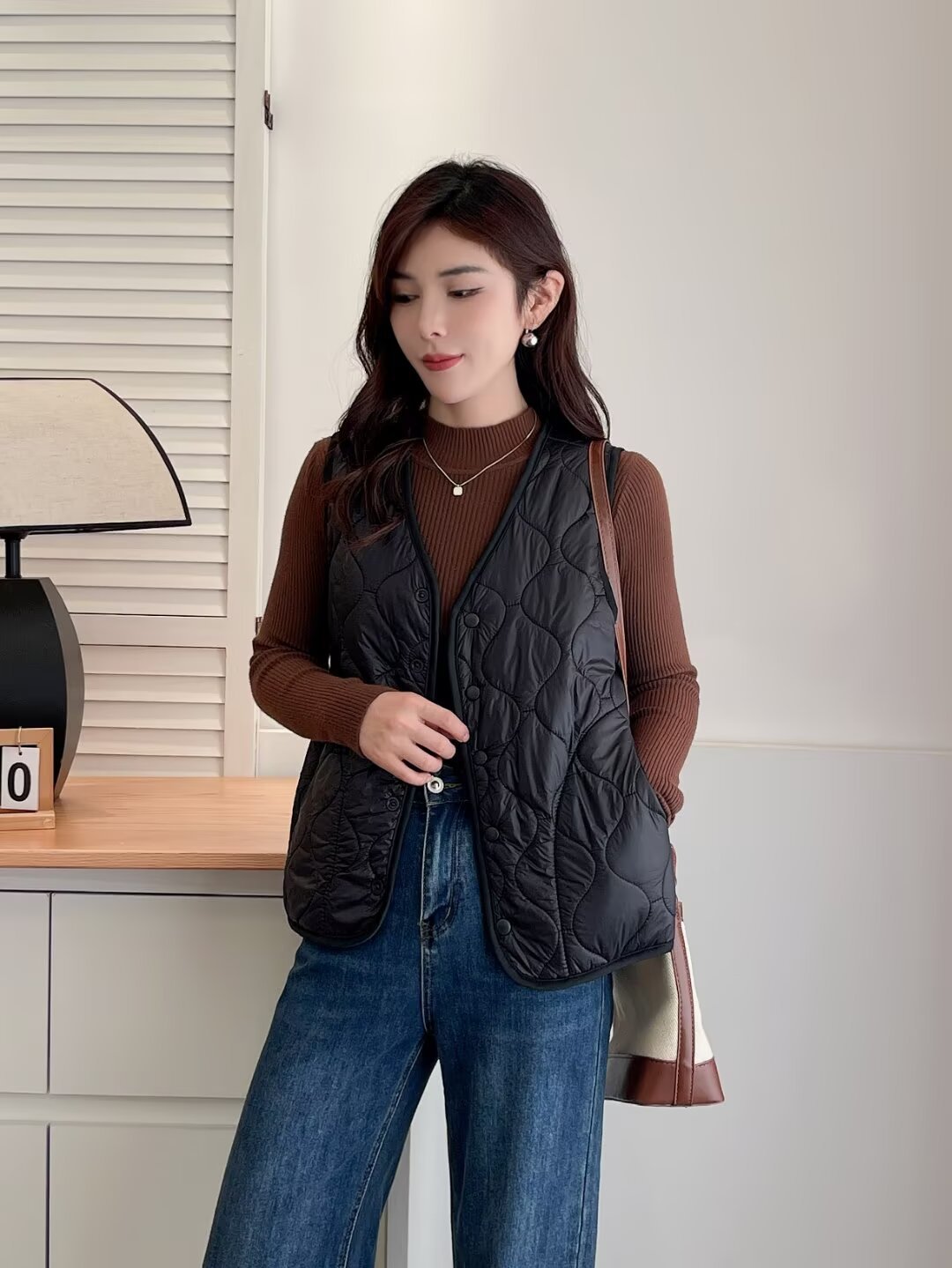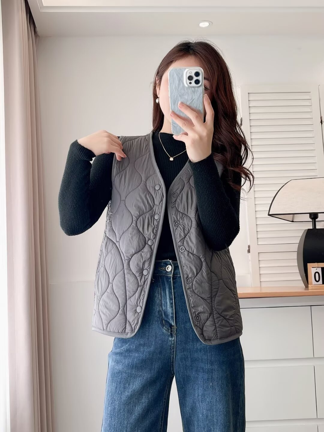 Fat MM плюс размер 2024 осенняя новая женская одежда корейская мода минималистский V-образный вырез дикий жилет теплая куртка для женщин 473
