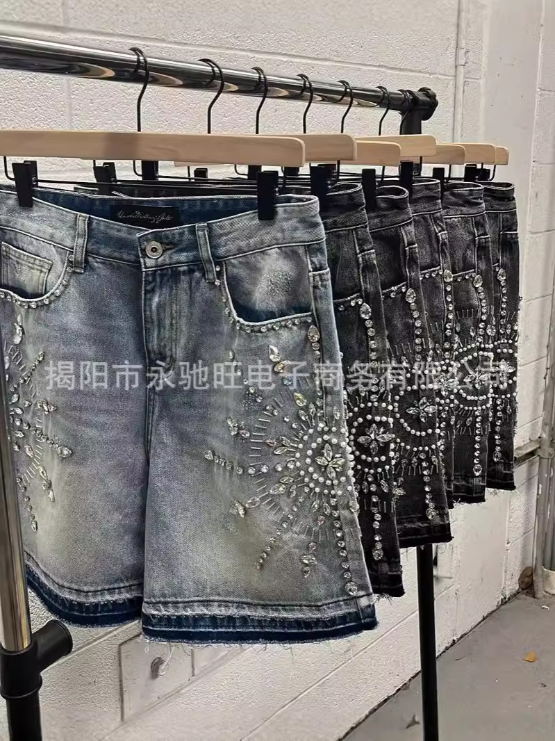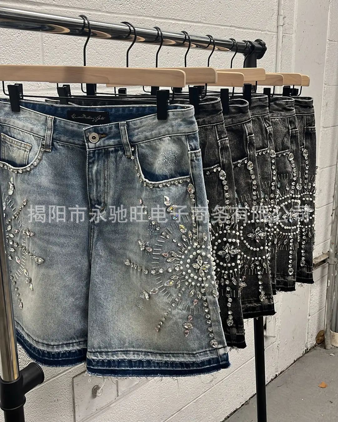 Джинсовые шорты с бриллиантами Heavy Industries мужская мода модная американская личность уличная 2024 новый летний перерыв свободные шорты