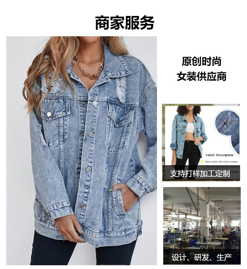 Европейская и американская трансграничная амазонка внешняя торговля женская новая джинсовая куртка модная джинсовая куртка бойфренд дыра имитация