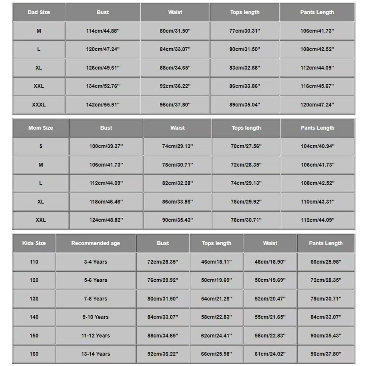 Папа М; Папа Л; Папа XL; Папа 2XL; Папа 3XL; Мама С; Мама М; Мама Л; Мама XL; Мама 2XL; Дети 110; Дети 120; Дети 130; Дети 140; Дети 150; Дети 160