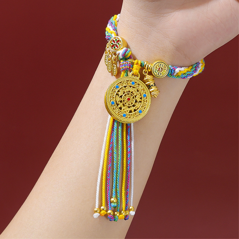 Тибетский браслет ручной работы в этническом стиле, разноцветный плетеный браслет из веревки, браслет из хлопковой нити ручной работы, оптом