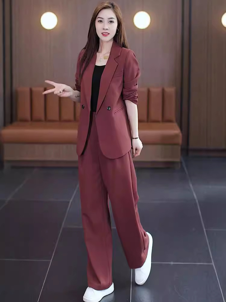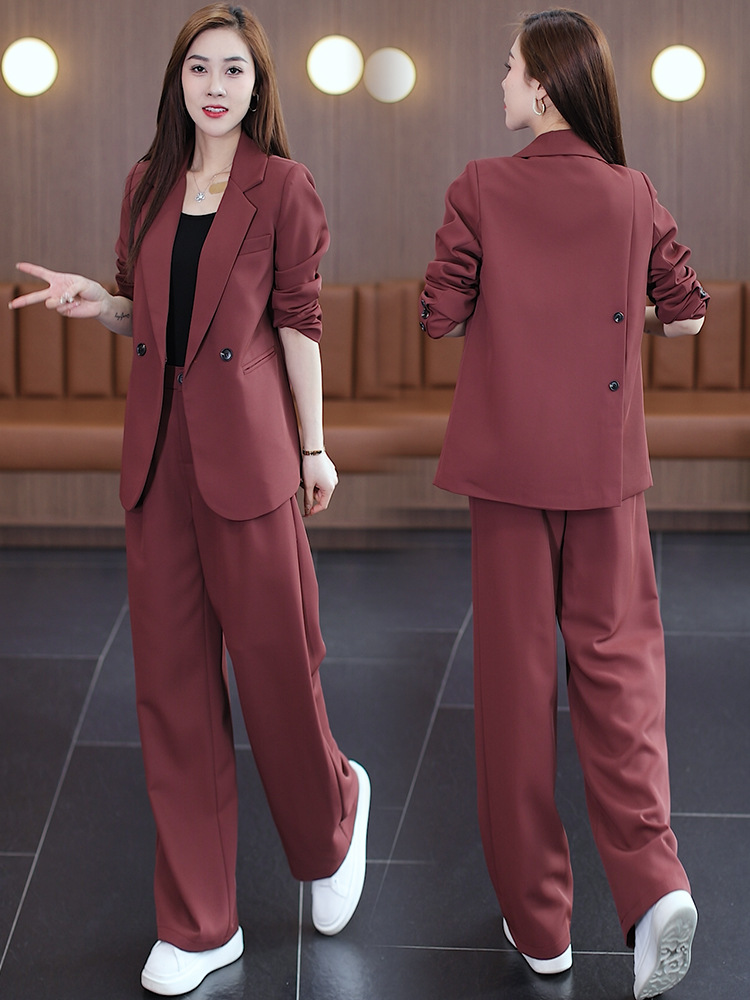 Пятно [6655] Большой размер женской ангольской красной премиум-класса костюм костюм толстый мм широкие брюки из двух частей