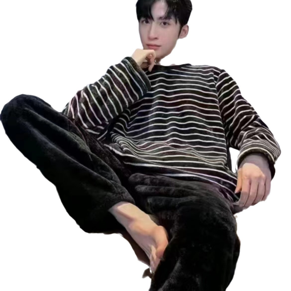 Осенне-зимние теплые коралловые бархатные пижамы для мужчин зимние теплые с длинными рукавами весна, осень и зима мужская фланелевая домашняя одежда удобная