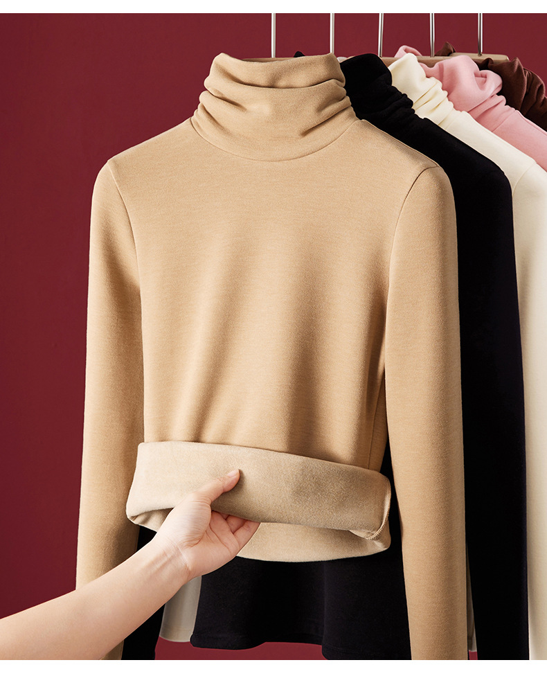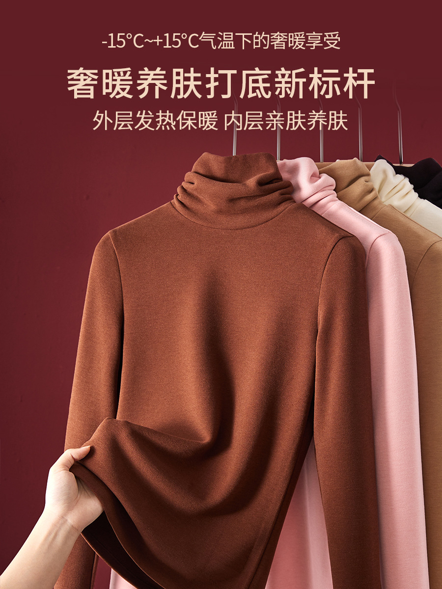 Термобелье из шерсти и шелка для женщин, утолщенное и на флисовой подкладке, осенние топы для многослойных образов, топы 1688, теплый флис, термогенерирующие базовые рубашки для зимы.