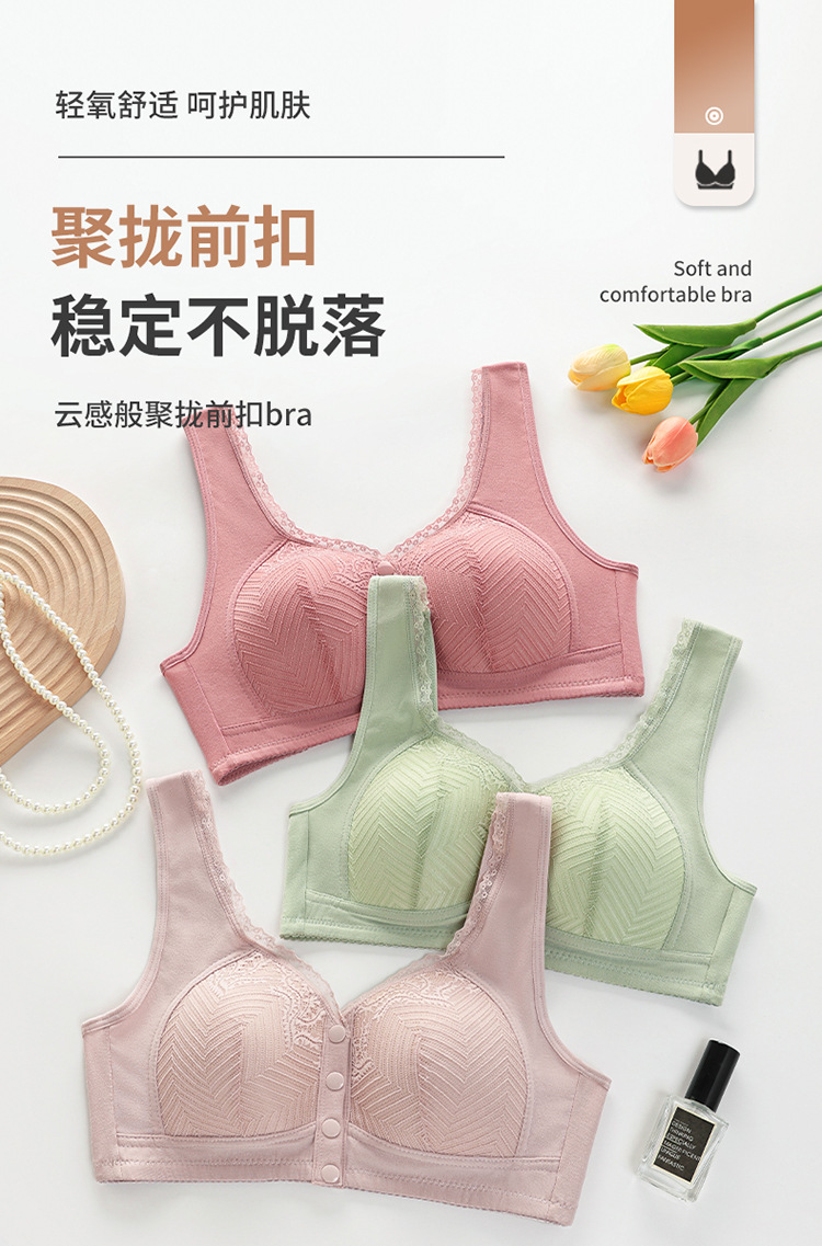 Новый стиль передняя пряжка фиксированная чашка нижнее белье женское мягкое хлопковое спина средний и пожилой большой размер без стального кольца бюстгальтер