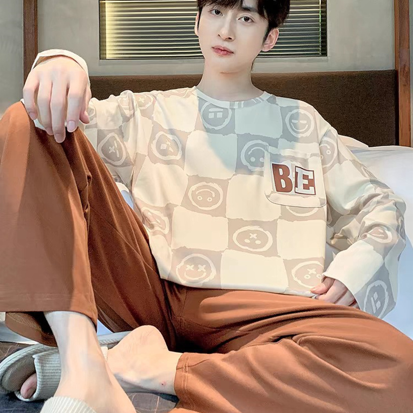 Внешняя торговля трансграничная мужская пижама весна и осень с длинными рукавами костюм повседневная новая свободная и расширяемая домашняя одежда можно носить на улице