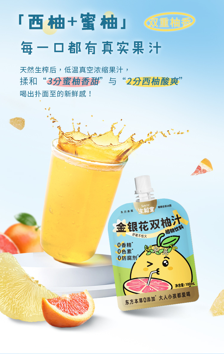 Shenghetang жимолость грейпфрутовый сок 100 мл детский напиток портативный небольшой пакет жимолость двойной грейпфрутовый сок напиток