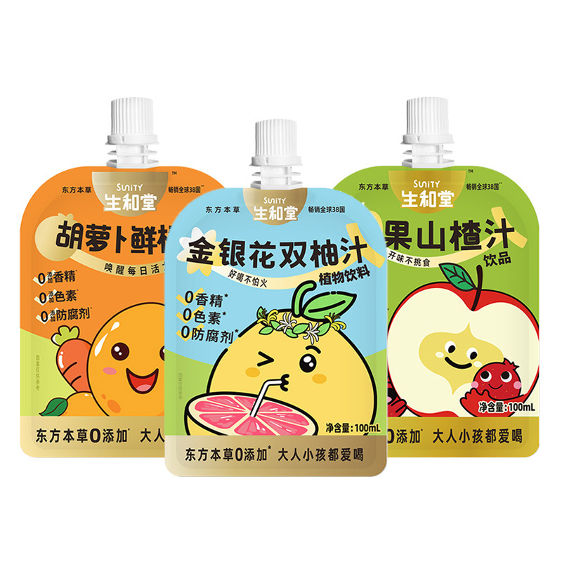 Сок Shenghetang Honeysuckle Double Pomelo 100 мл [заказывайте 36 упаковок на всю коробку]; Сок шиповника Shenghetang Apple 100 мл; Морковный и апельсиновый сок 100мл
