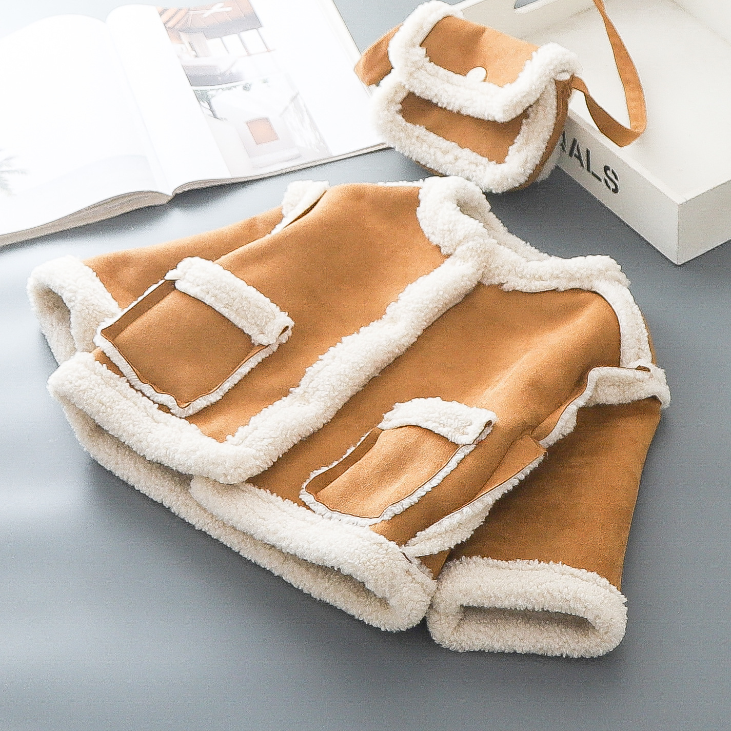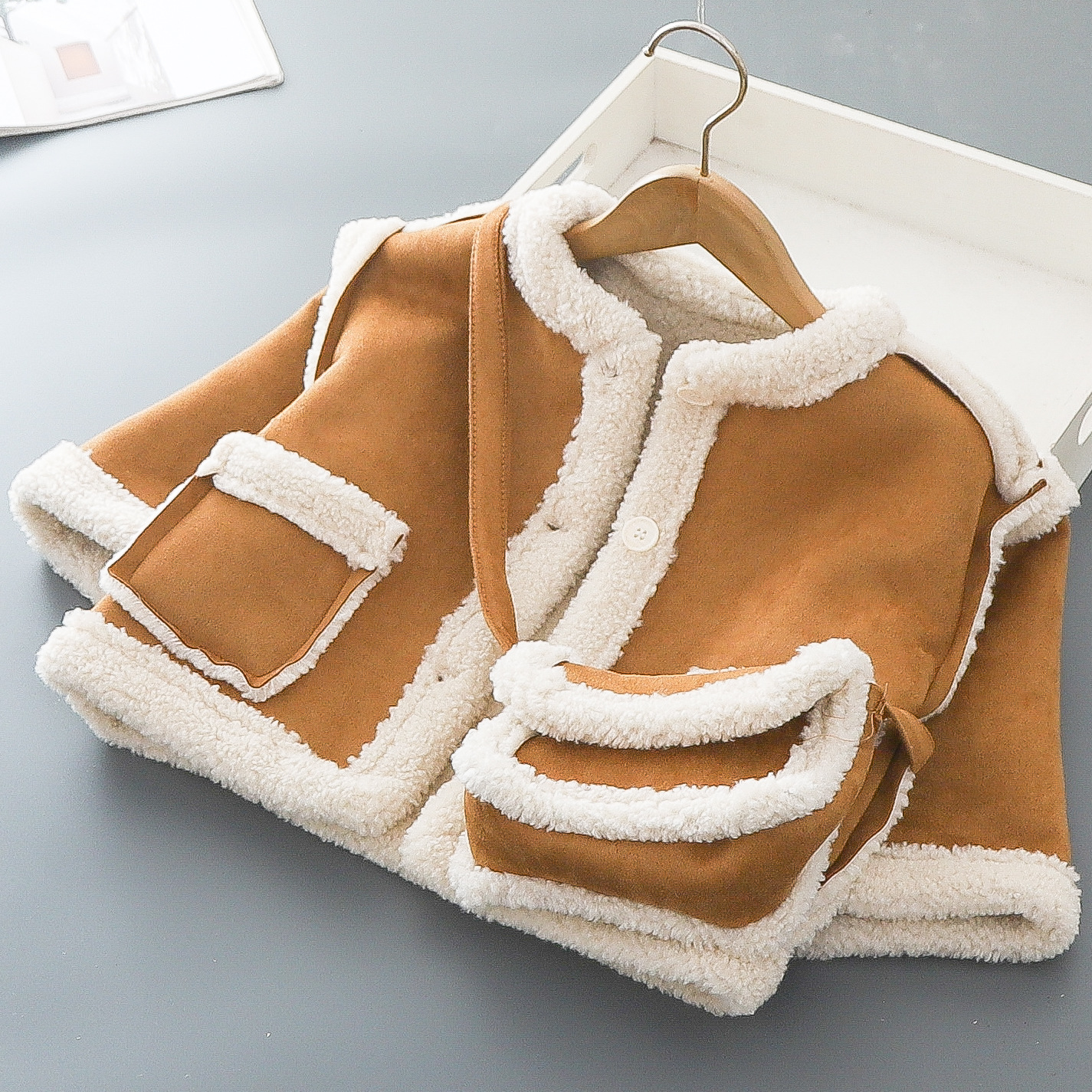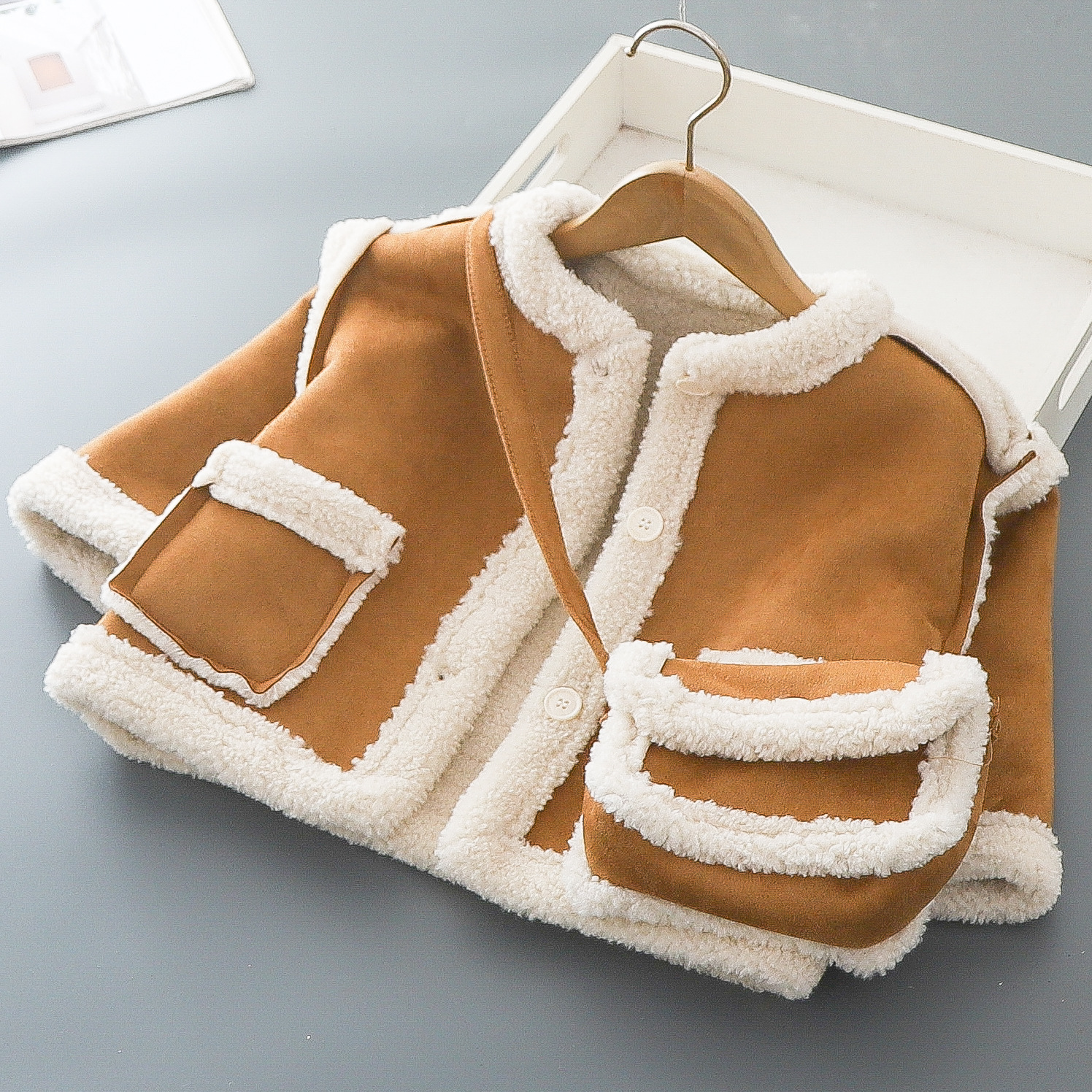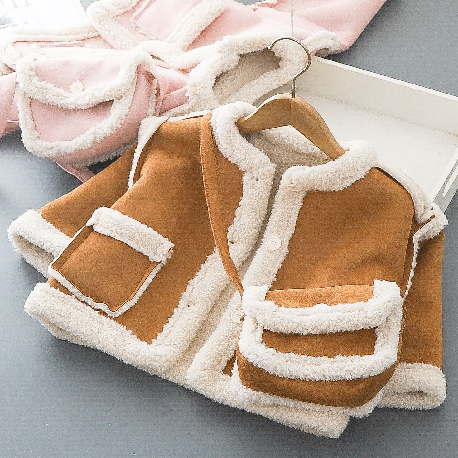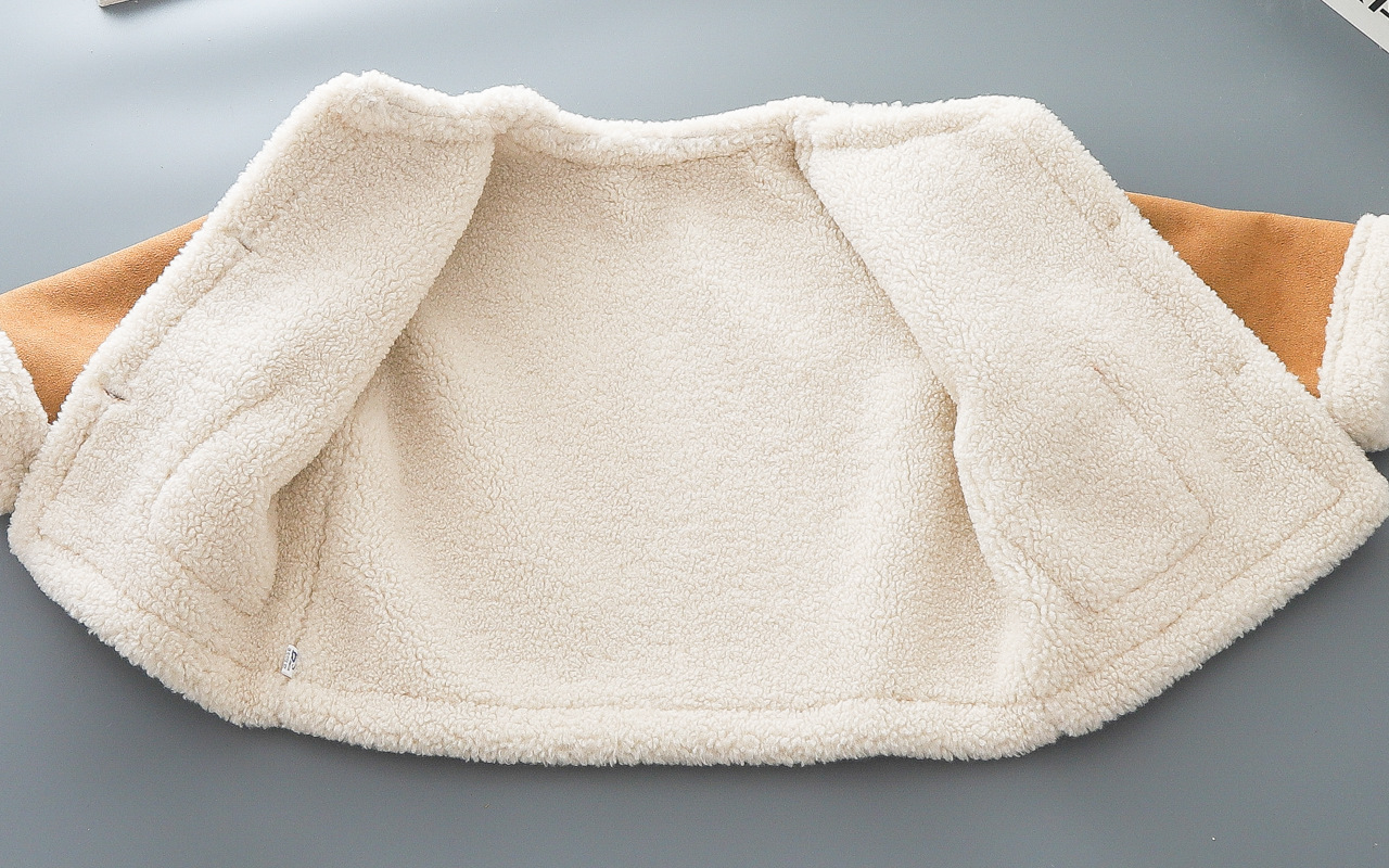 Замшевая куртка для мальчиков осенью и зимой плюшевая корейская версия иностранного воздуха прилив для детей 2024 новые 3-6 лет сентябрь