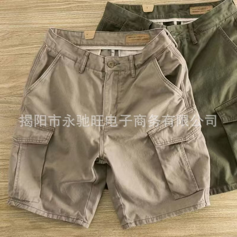 Приличный бренд ретро свободные прямые летние новые шорты карман укороченные брюки мужские сумка укороченные брюки повседневные средние брюки