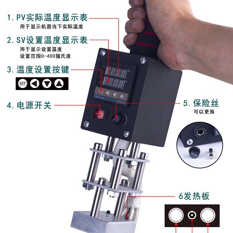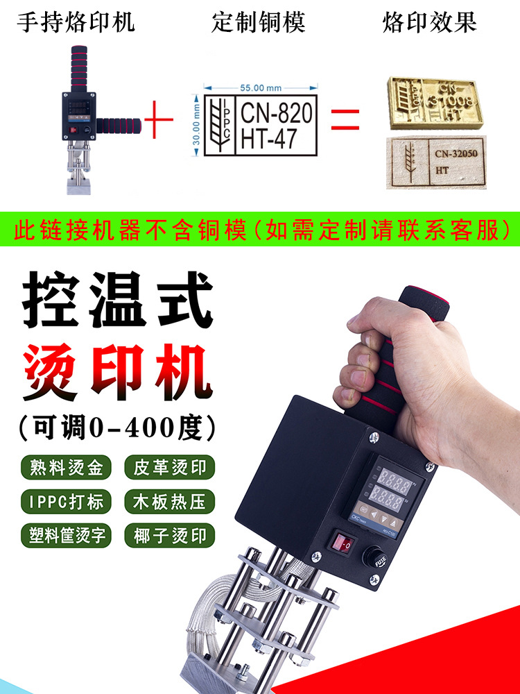 Ручной термопресс для маркировки небольших медных форм, кожи, деревянных коробок, кокосовой скорлупы, пластика и поверхностей с криволинейной формой.