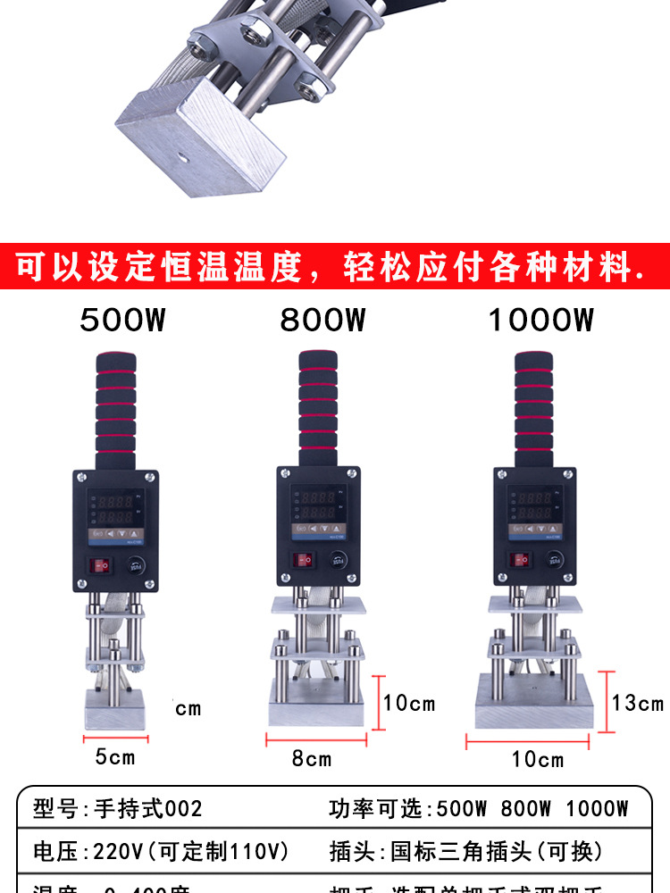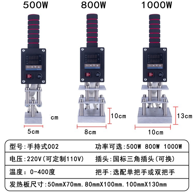 Нагревательная пластина с одной ручкой 500 Вт, 5X7 см (без формы); Нагревательная пластина с одной ручкой 800 Вт, 8х10 см (без формы); Нагревательная пластина с одной ручкой 1000 Вт, 10X13 см (без формы); 500 Вт с двойной ручкой, нагревательная пластина 5х7 см (без формы); Нагревательная пластина с двойной ручкой 800 Вт, 8х10 см (без формы); Нагревательная пластина с двойной ручкой 1000 Вт, 10X13 см (без формы)