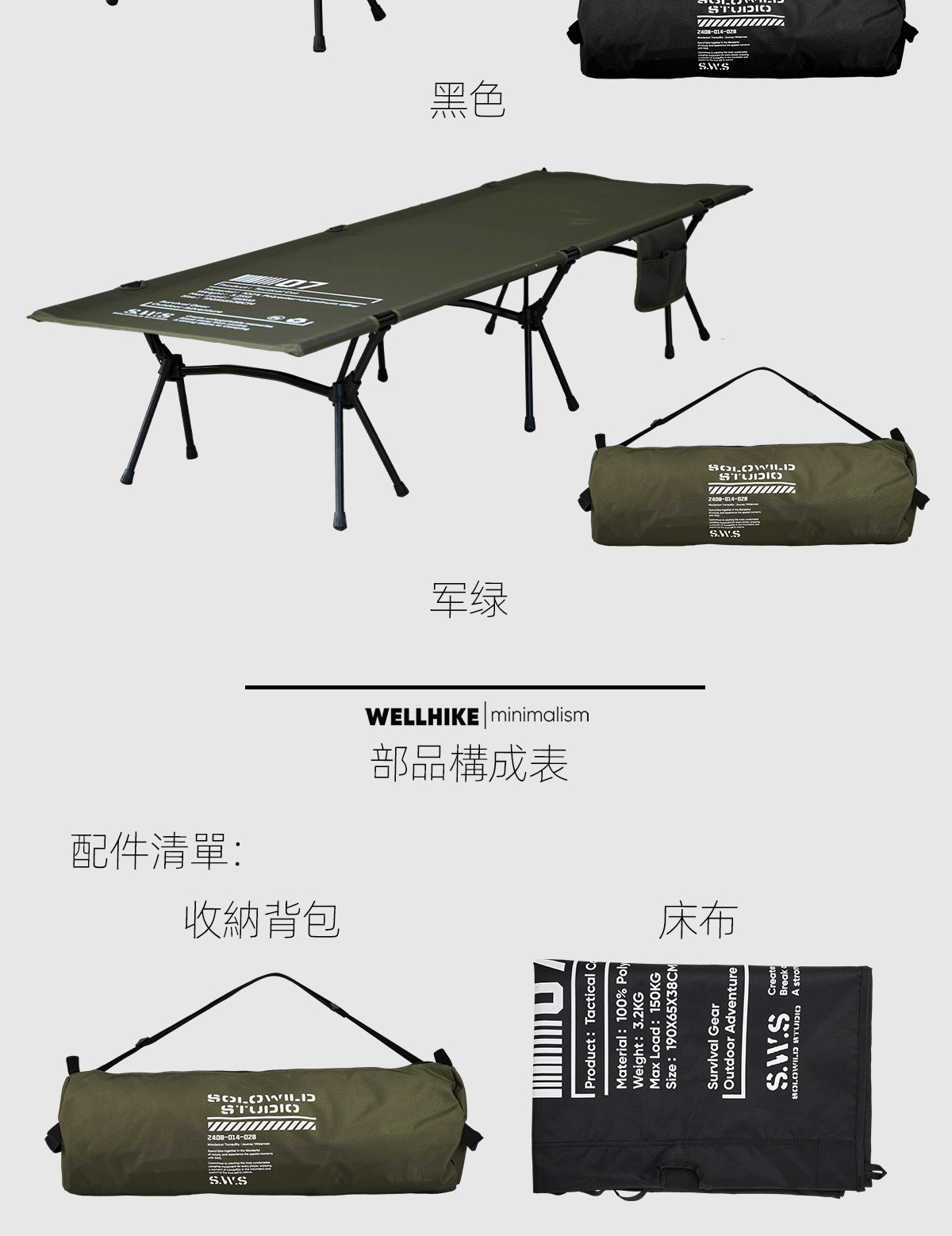 Раскладушка SWS-черная; Раскладушка SWS-военный зеленый
