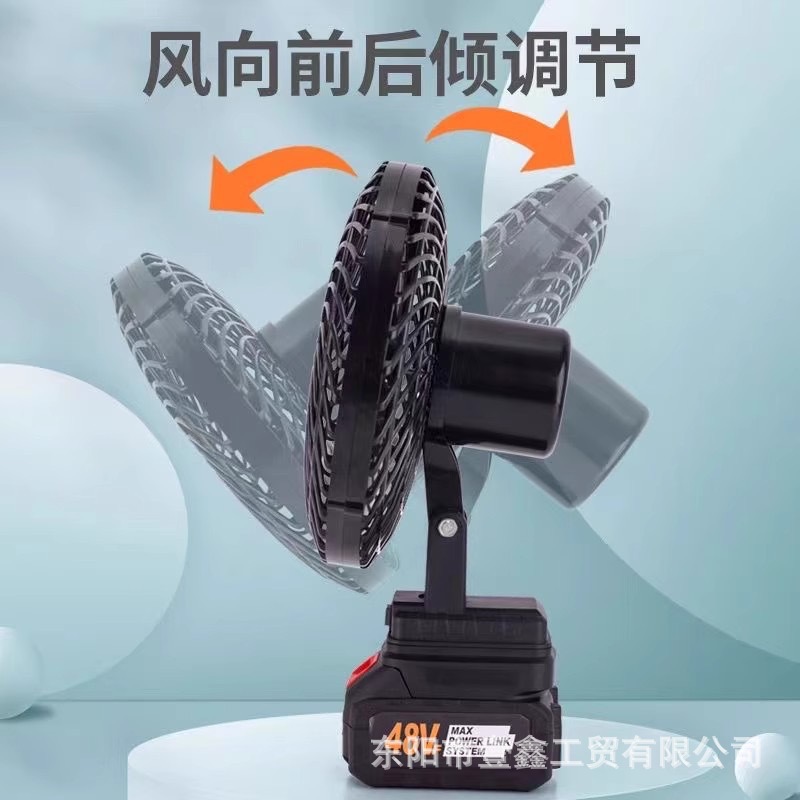 Беспроводной зарядный вентилятор с литиевой батареей для кемпинга, настольный, портативный, с большим объемом воздуха, для стройплощадок, общежитий и использования на открытом воздухе.