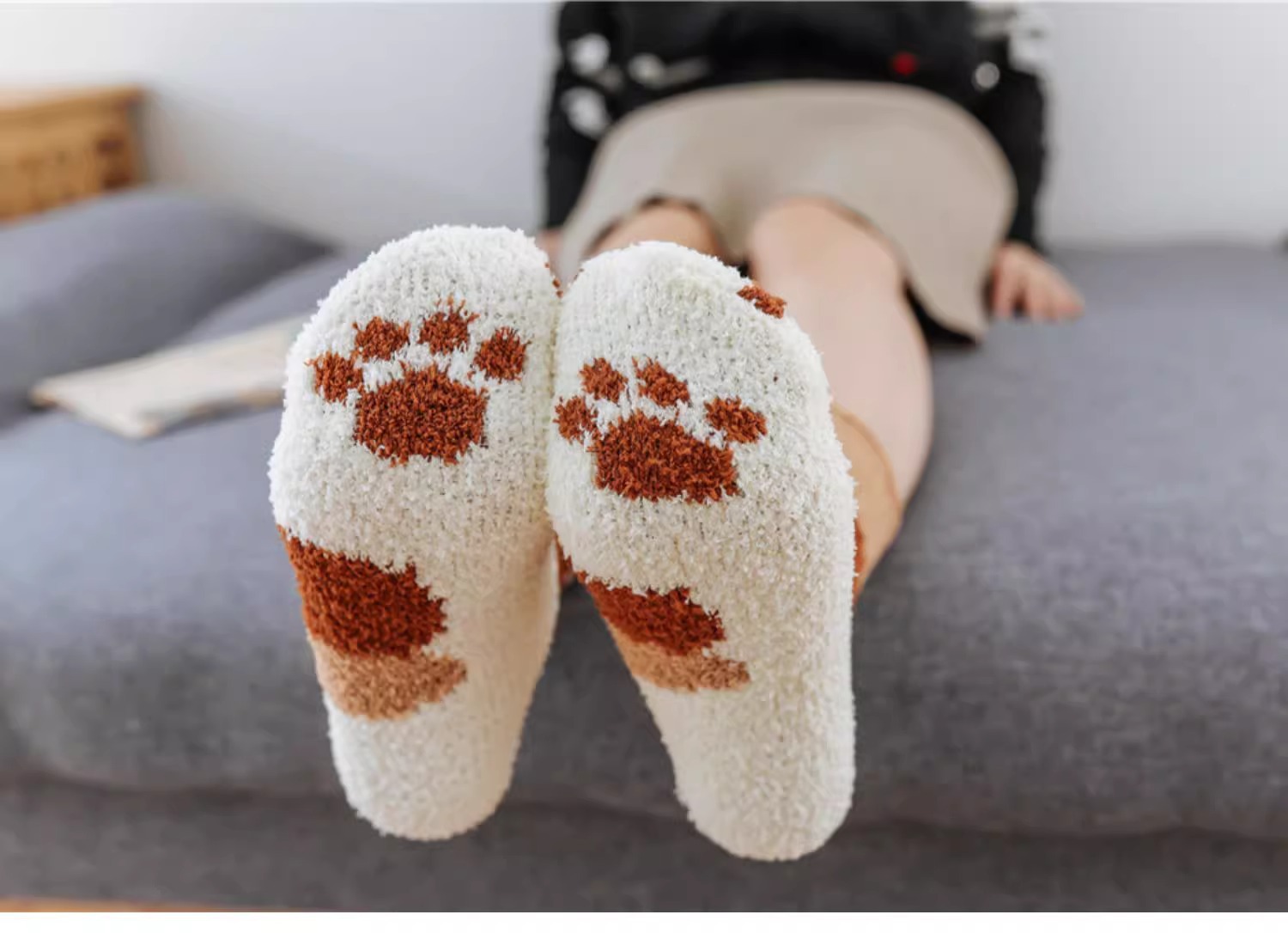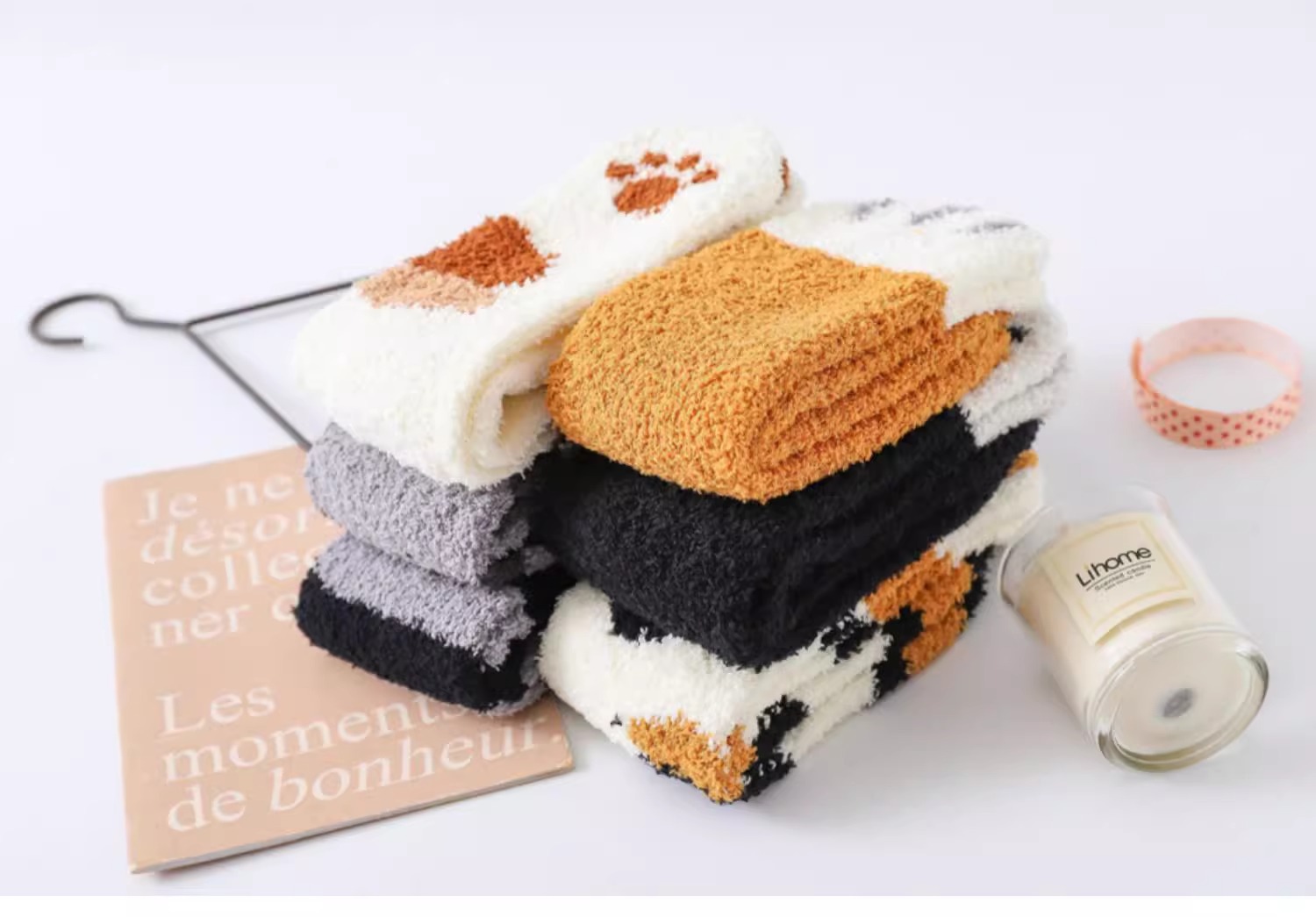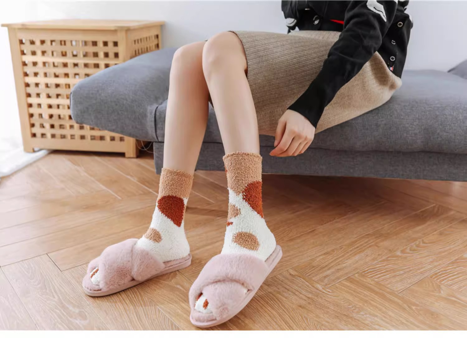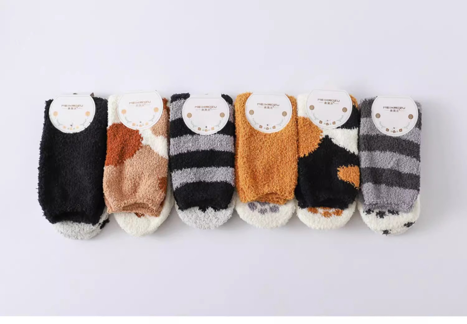 Носки женские зимние плюшевые толстые коралловые пушистые носки милые японские домашние носки для сна пушистые носки