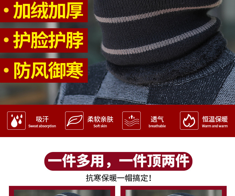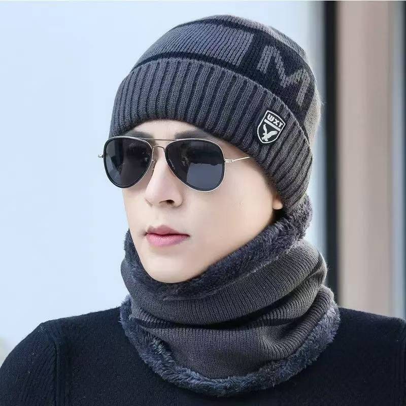 Мужские зимние молодые теплые толстые вязаные шерстяные шапки
