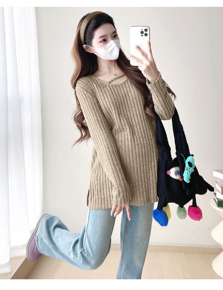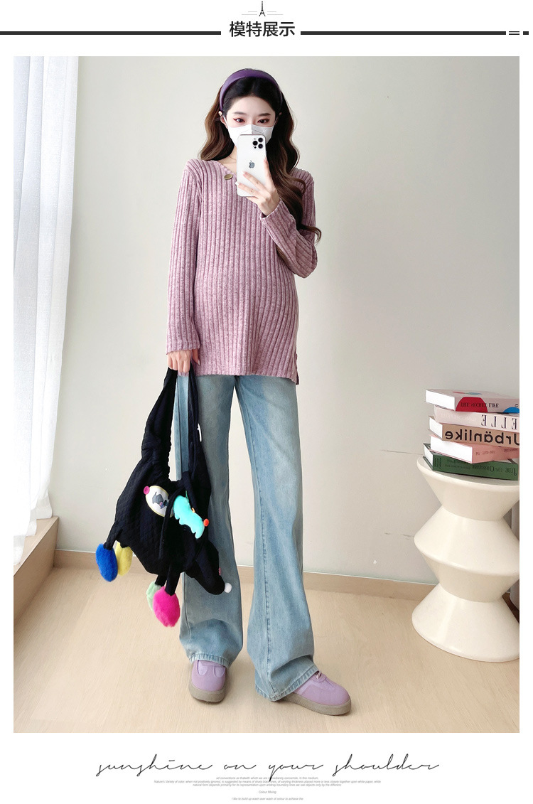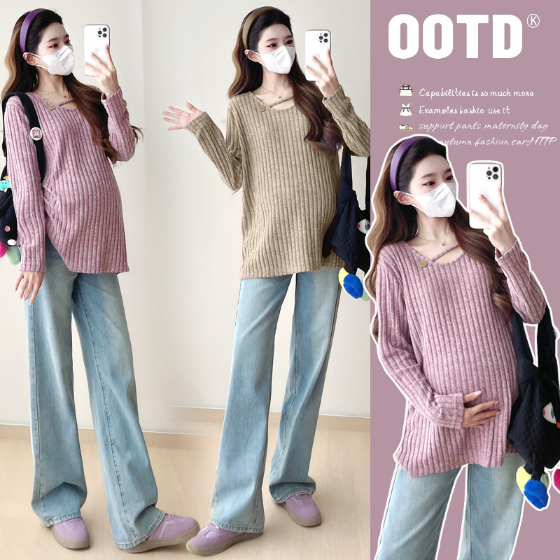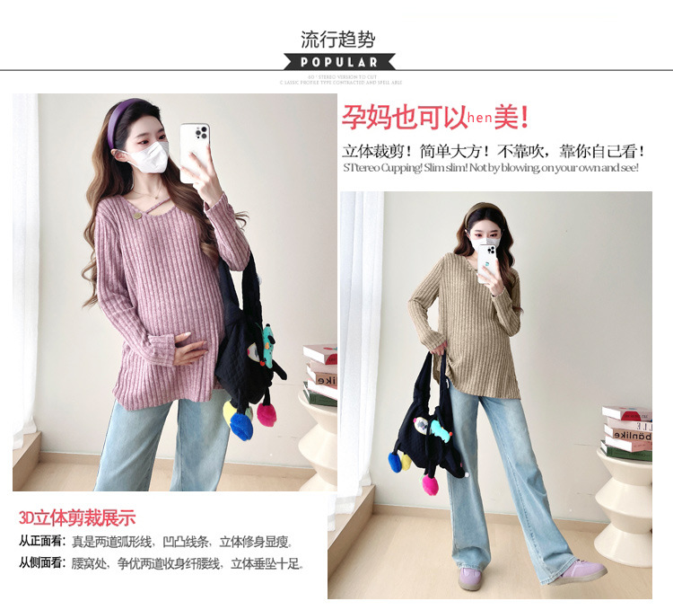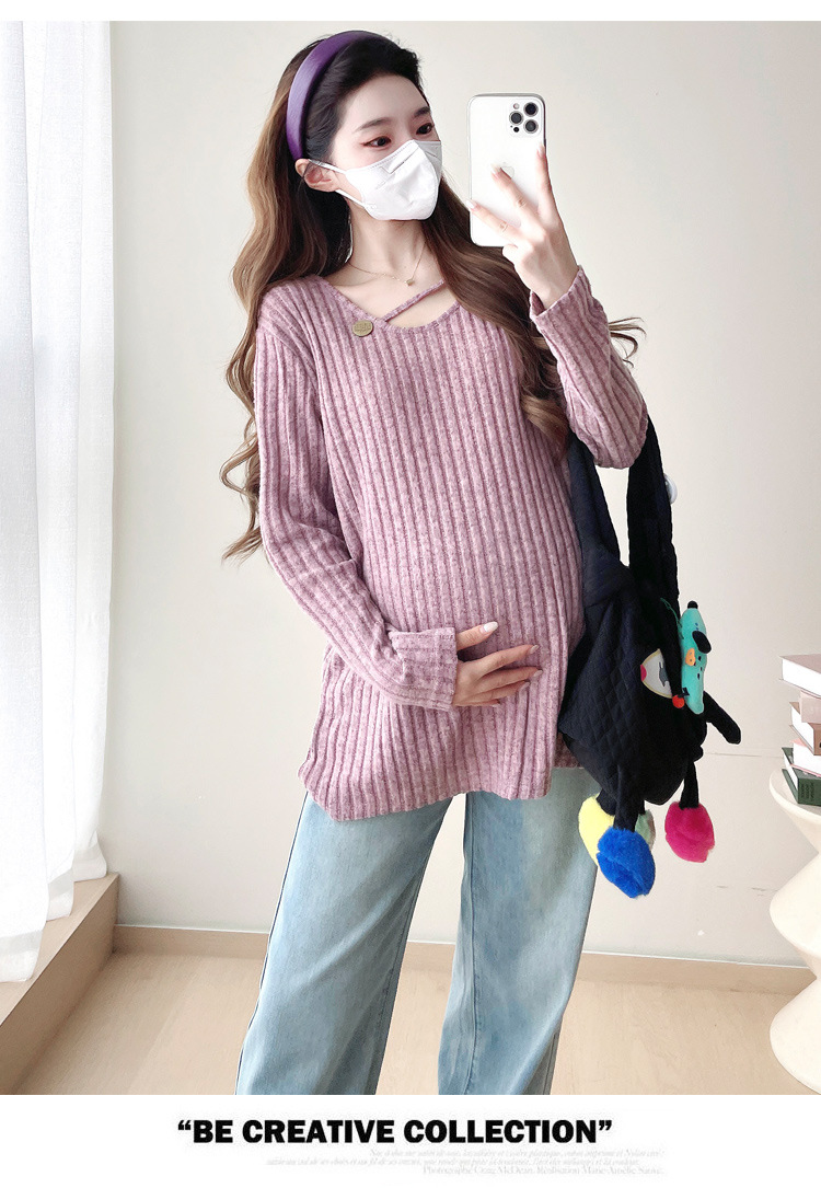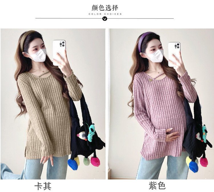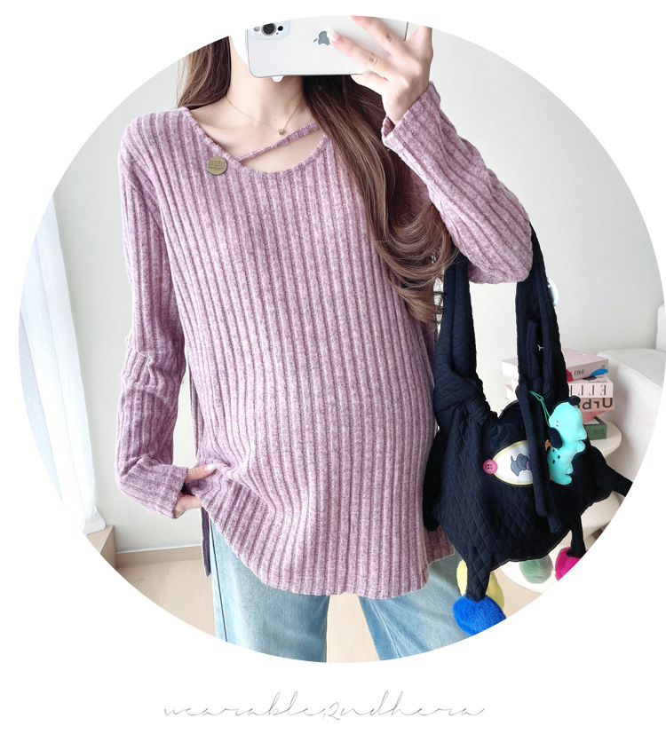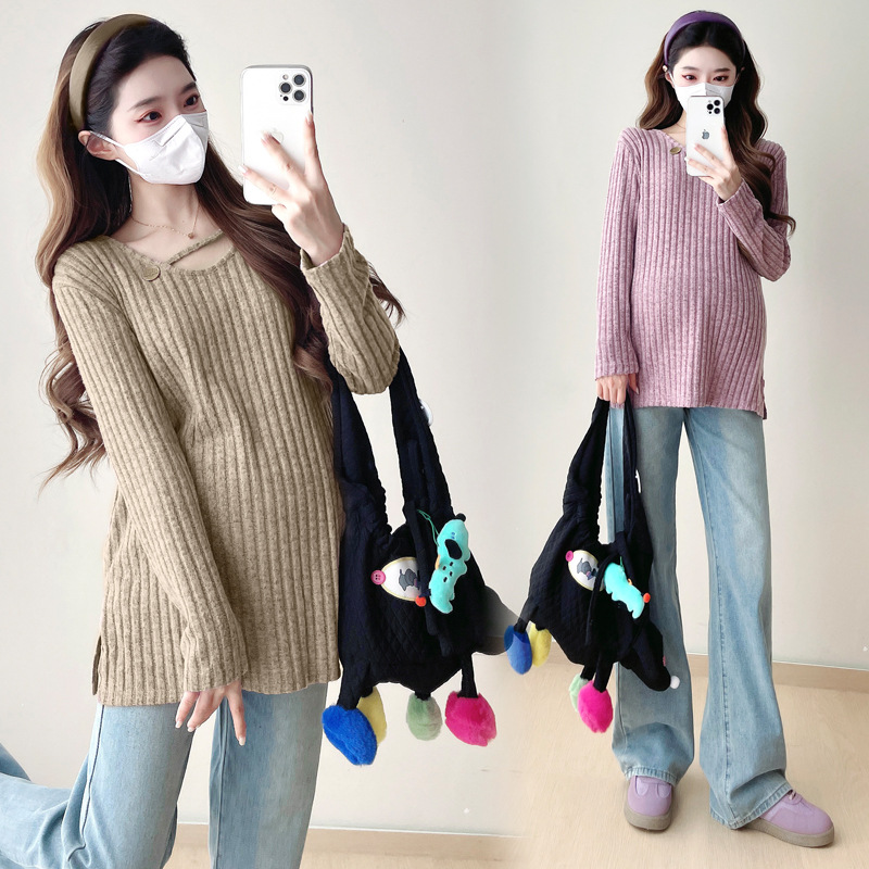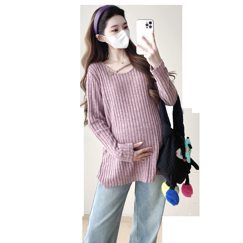 Беременная весенняя рубашка с дном 2024 новые осенние пушистые полоски простой свитер модный модный осенний и зимний топ