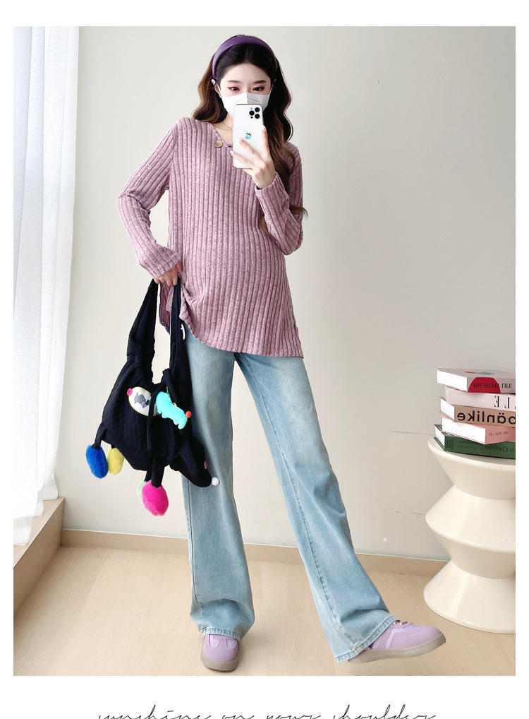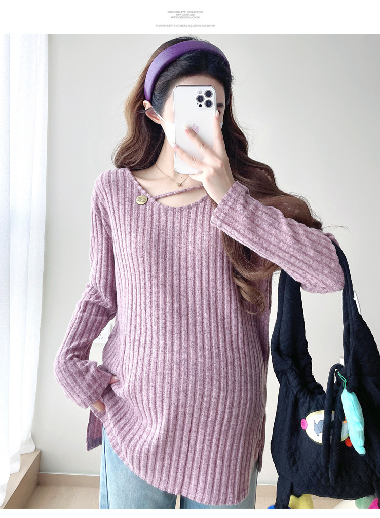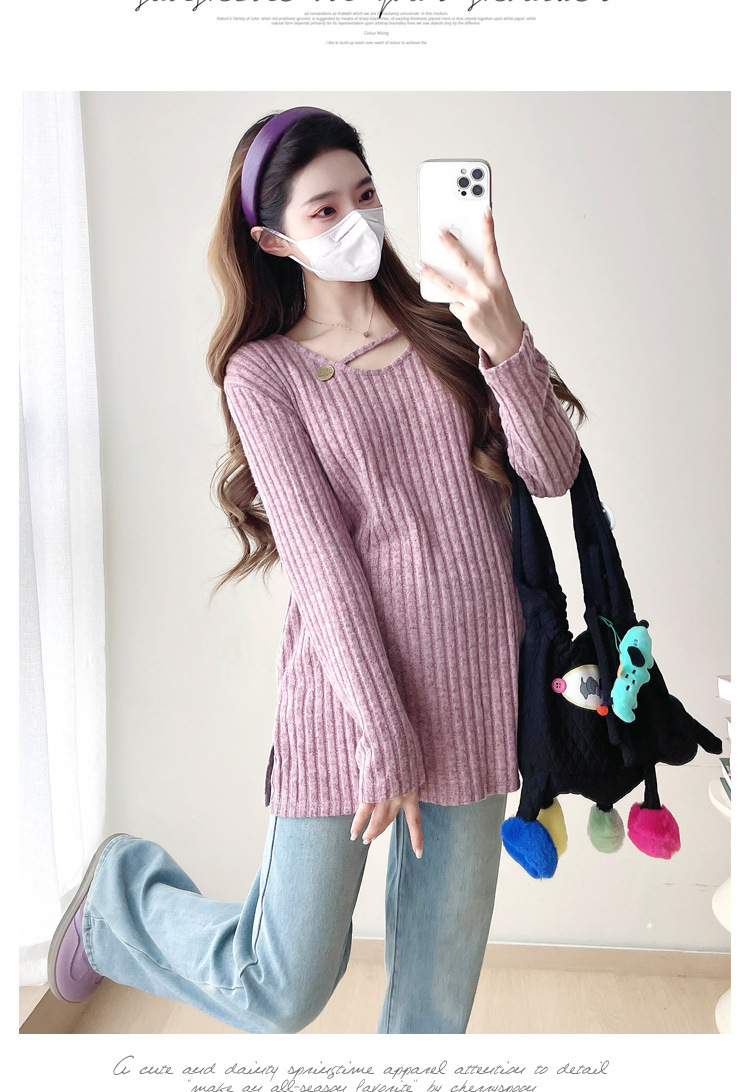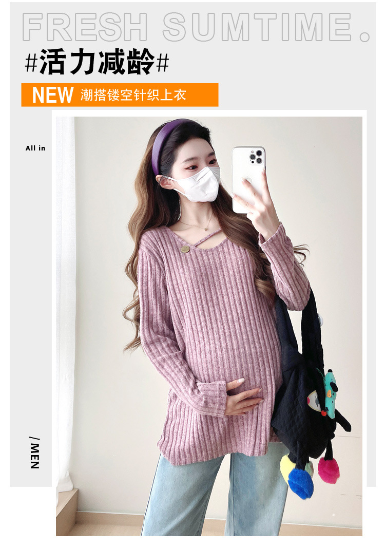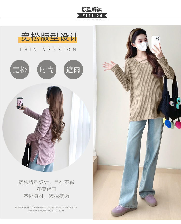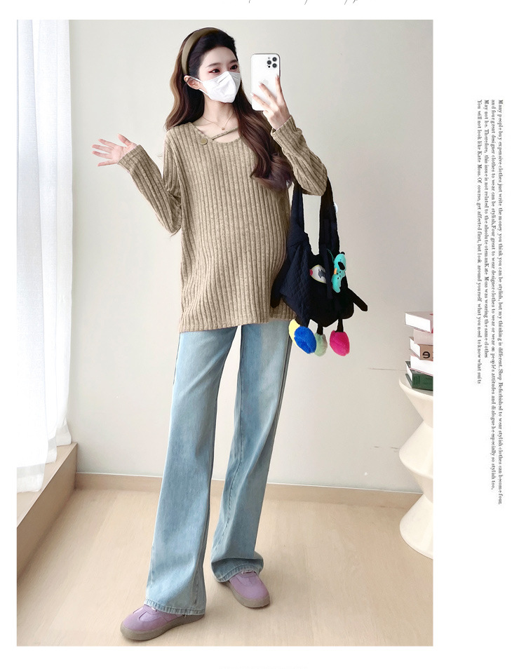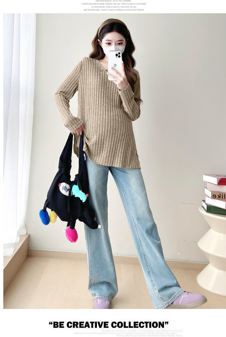 Беременная весенняя рубашка с дном 2024 новые осенние пушистые полоски простой свитер модный модный осенний и зимний топ