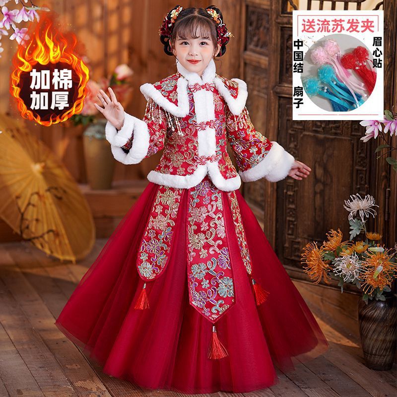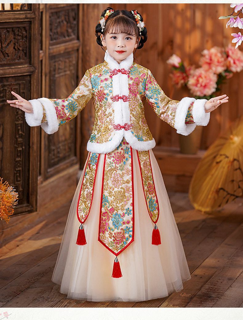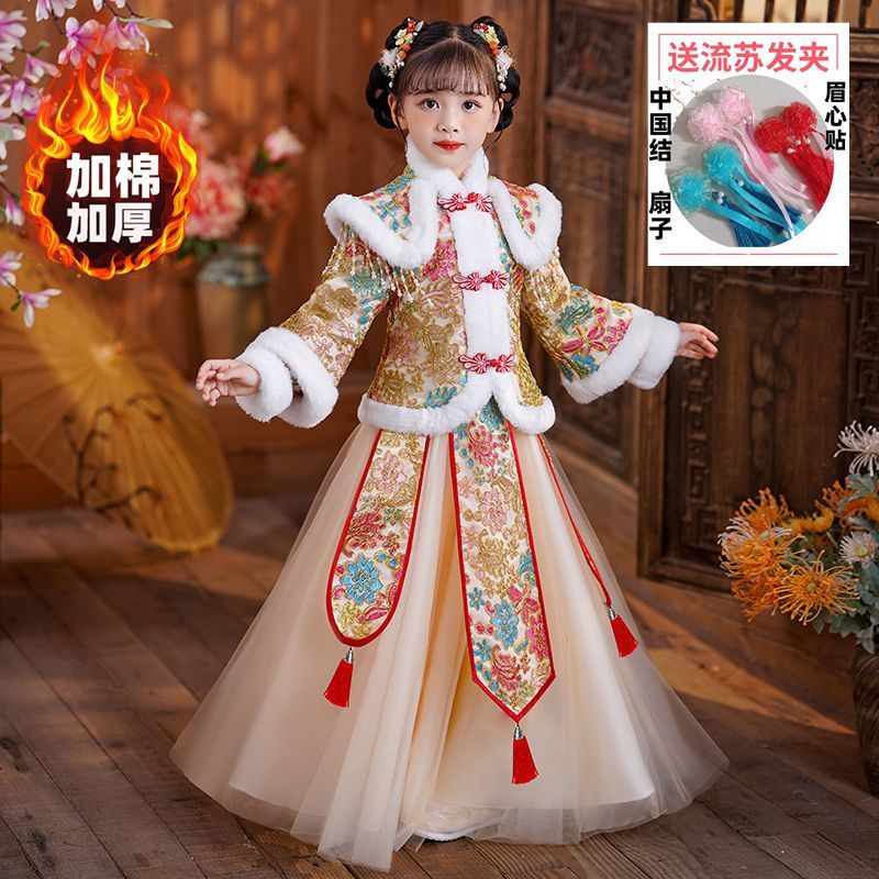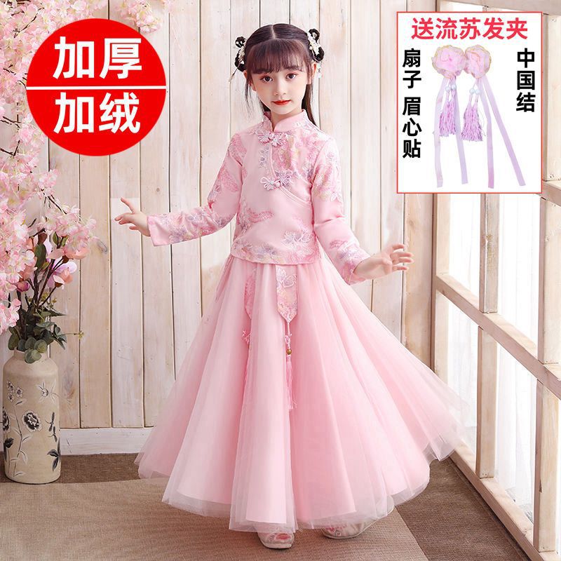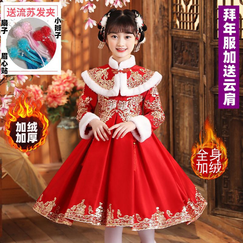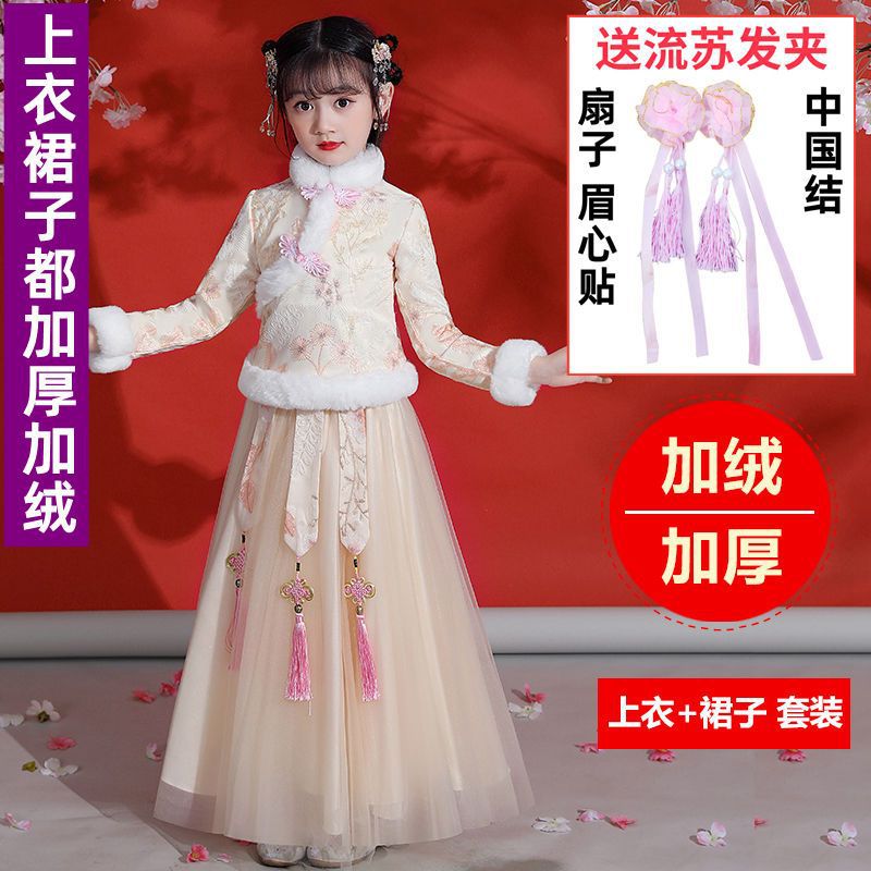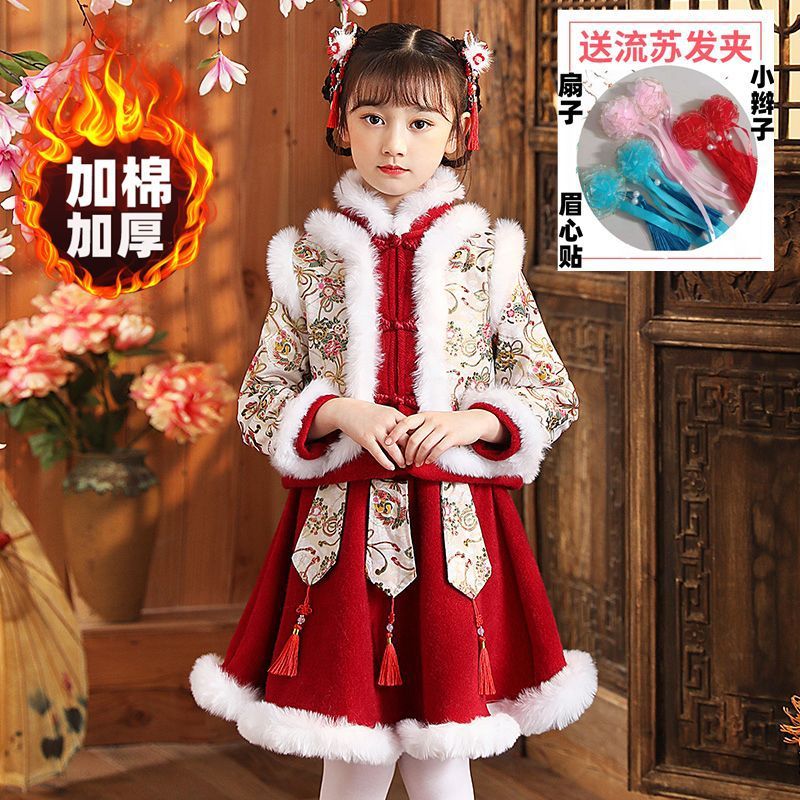 Y зимняя одежда для девочек, новый костюм Тан на флисовой подкладке династии Хань, детский новогодний старинный костюм для девочек, новогоднее приветствие, плащ из двух предметов