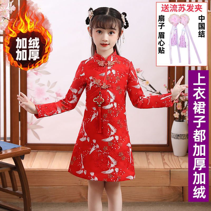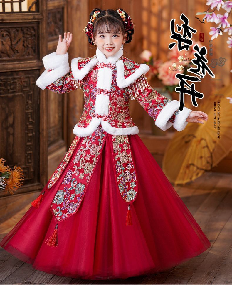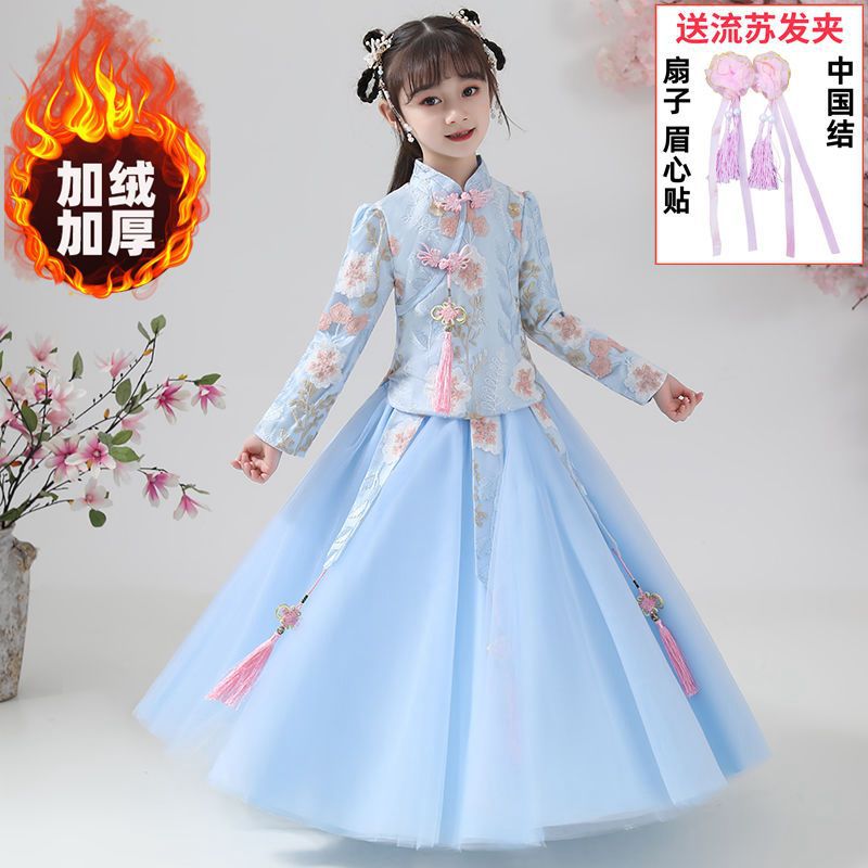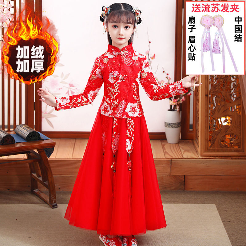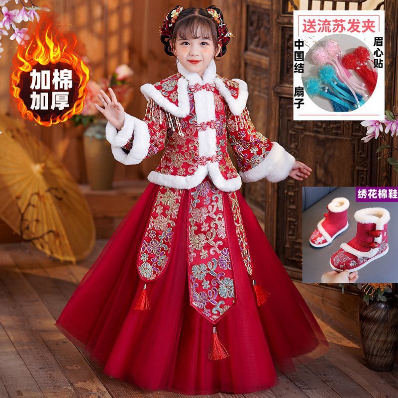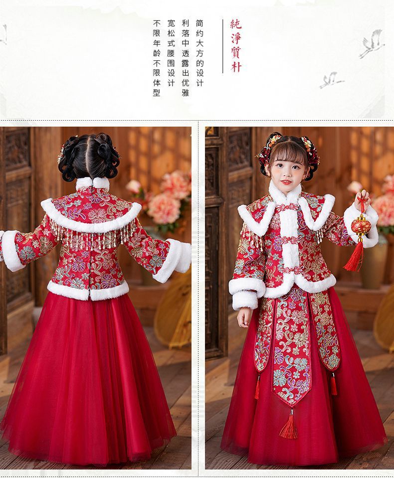 Y зимняя одежда для девочек, новый костюм Тан на флисовой подкладке династии Хань, детский новогодний старинный костюм для девочек, новогоднее приветствие, плащ из двух предметов
