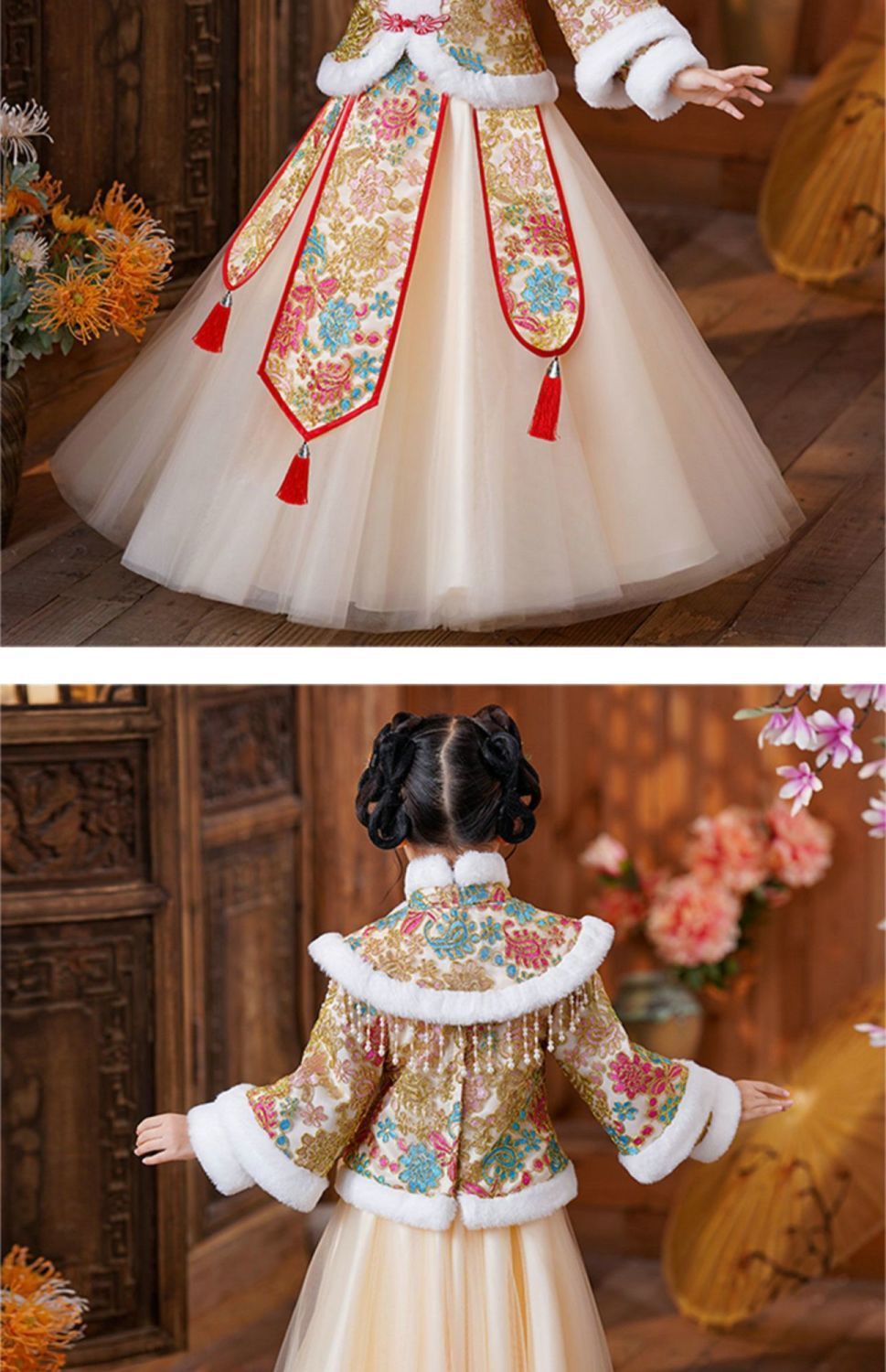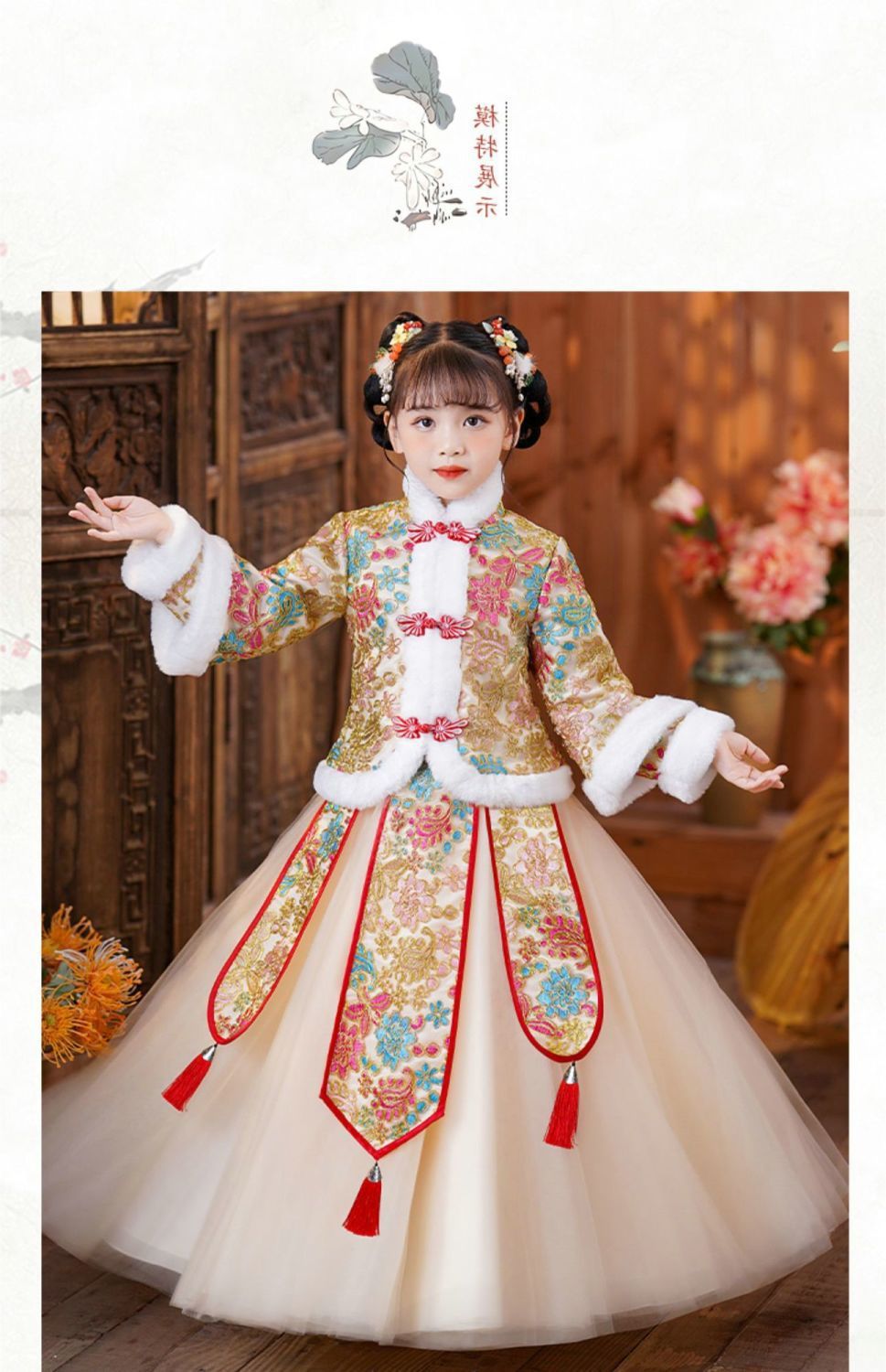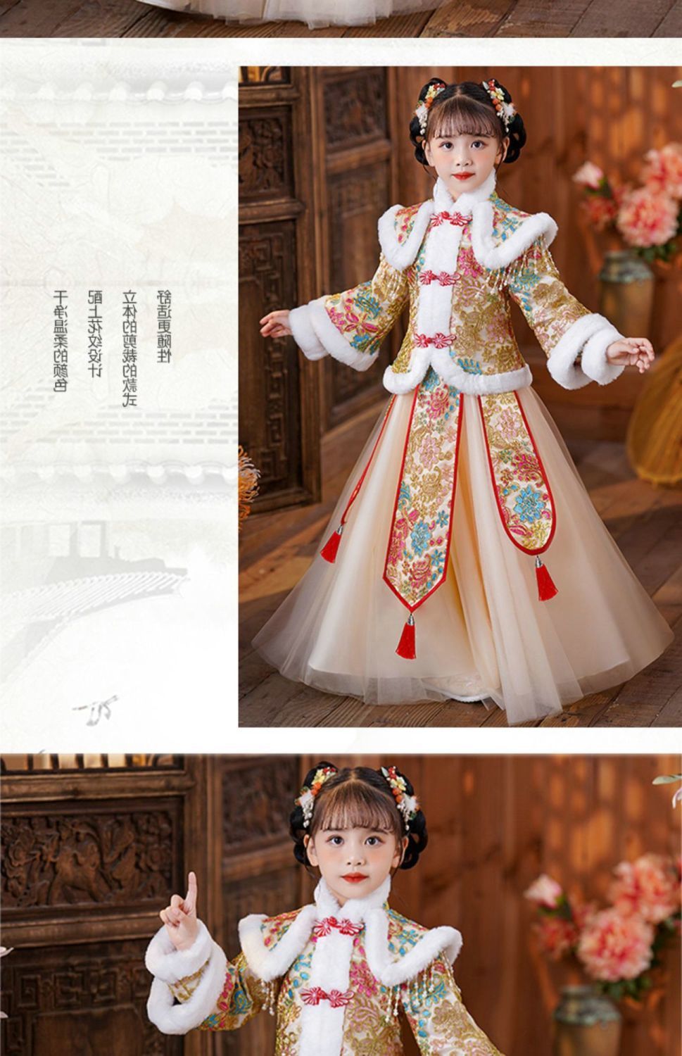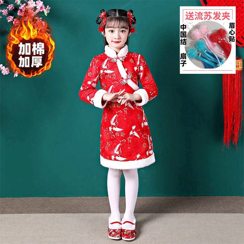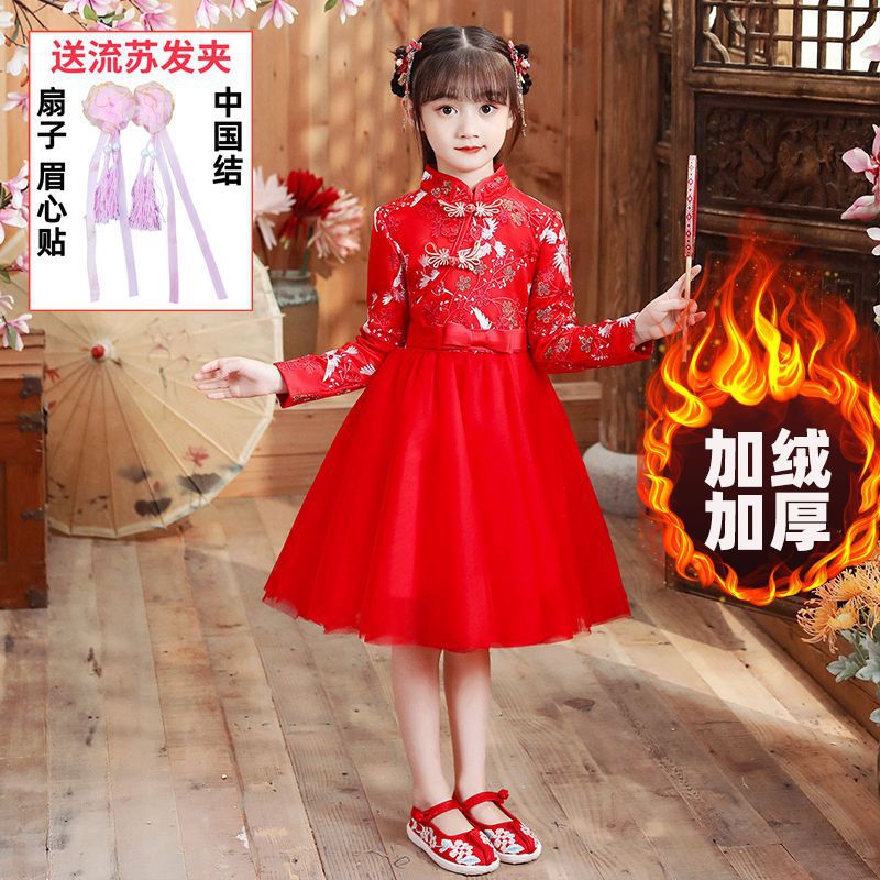 Y зимняя одежда для девочек, новый костюм Тан на флисовой подкладке династии Хань, детский новогодний старинный костюм для девочек, новогоднее приветствие, плащ из двух предметов