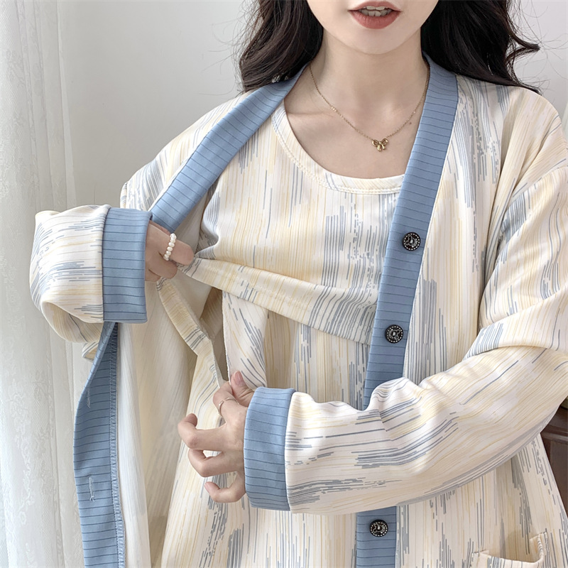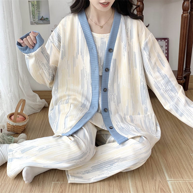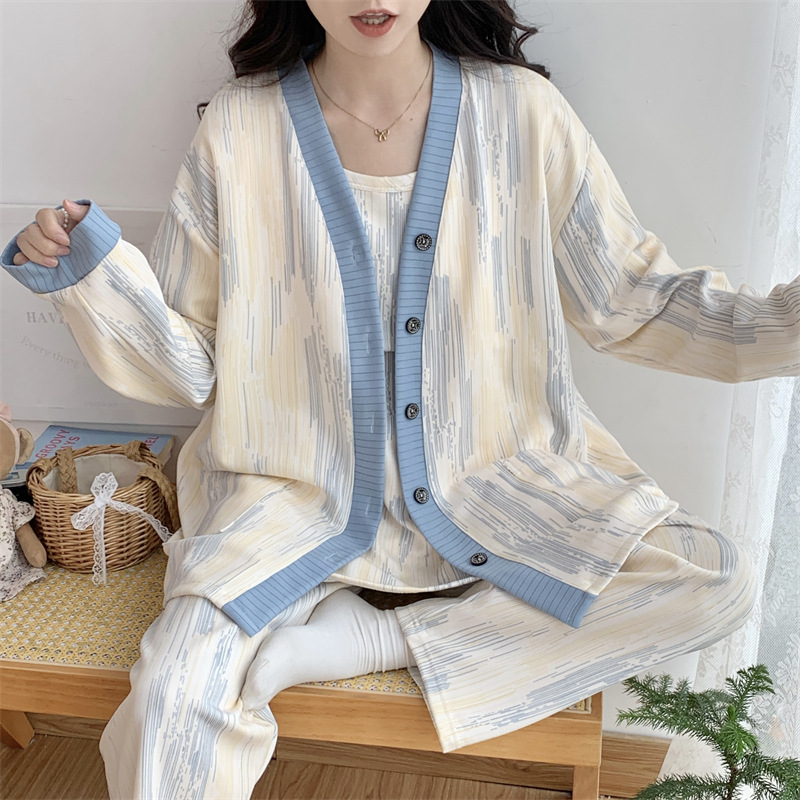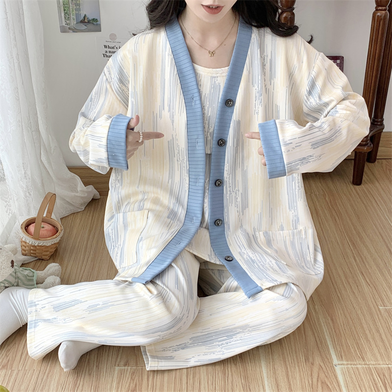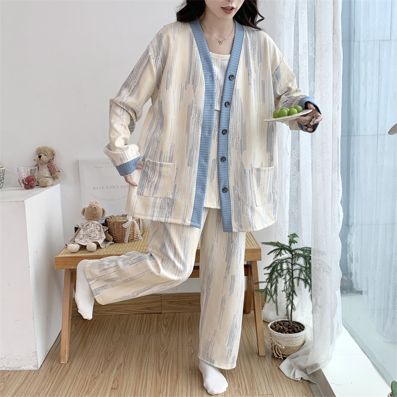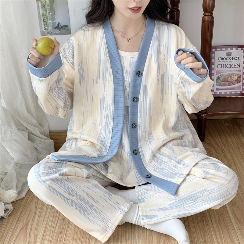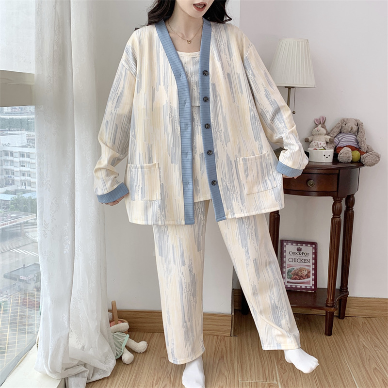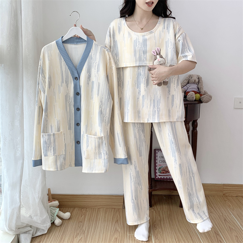 Весенне-осенний комплект для беременных больших размеров (до 136 кг), 4-9 месяцев после родов, для кормящих мам, из трех предметов, летняя пижама для кормящих мам, удлиненный крой