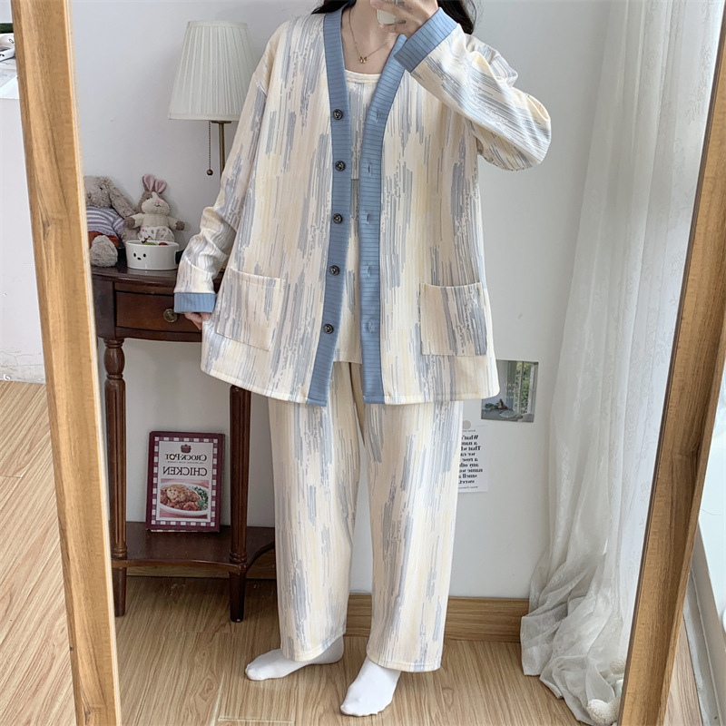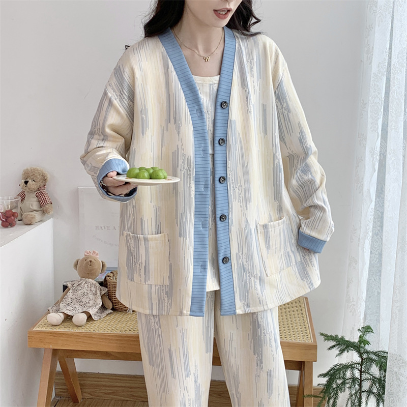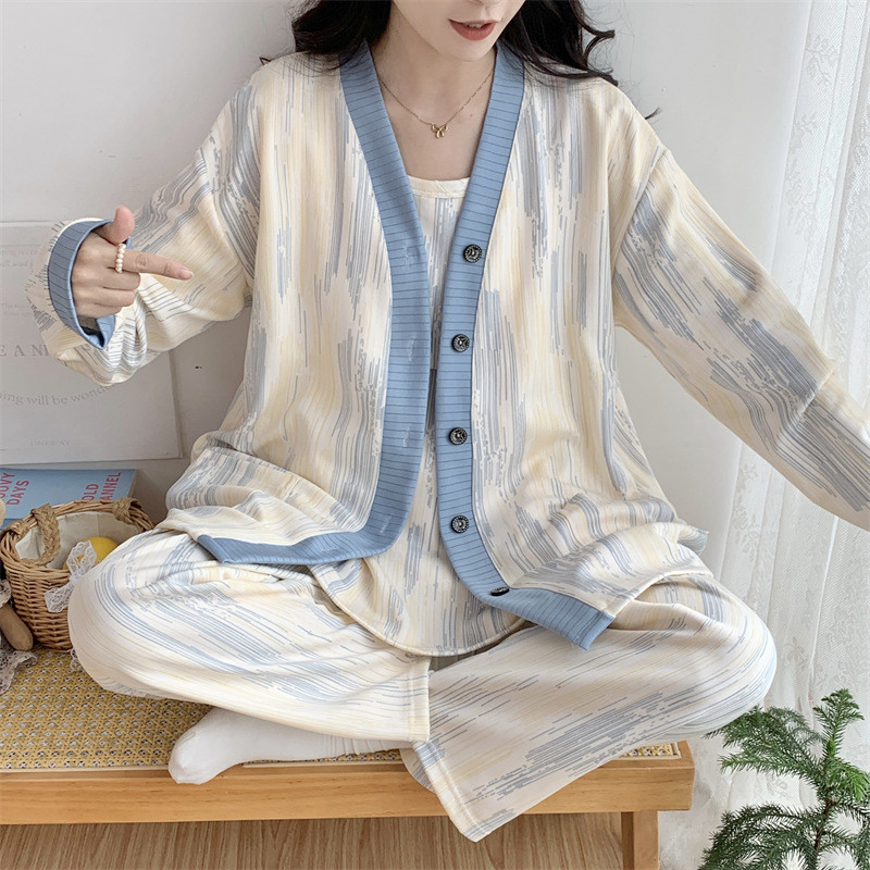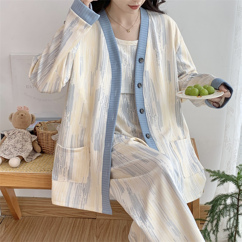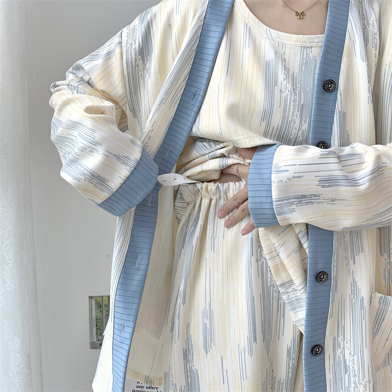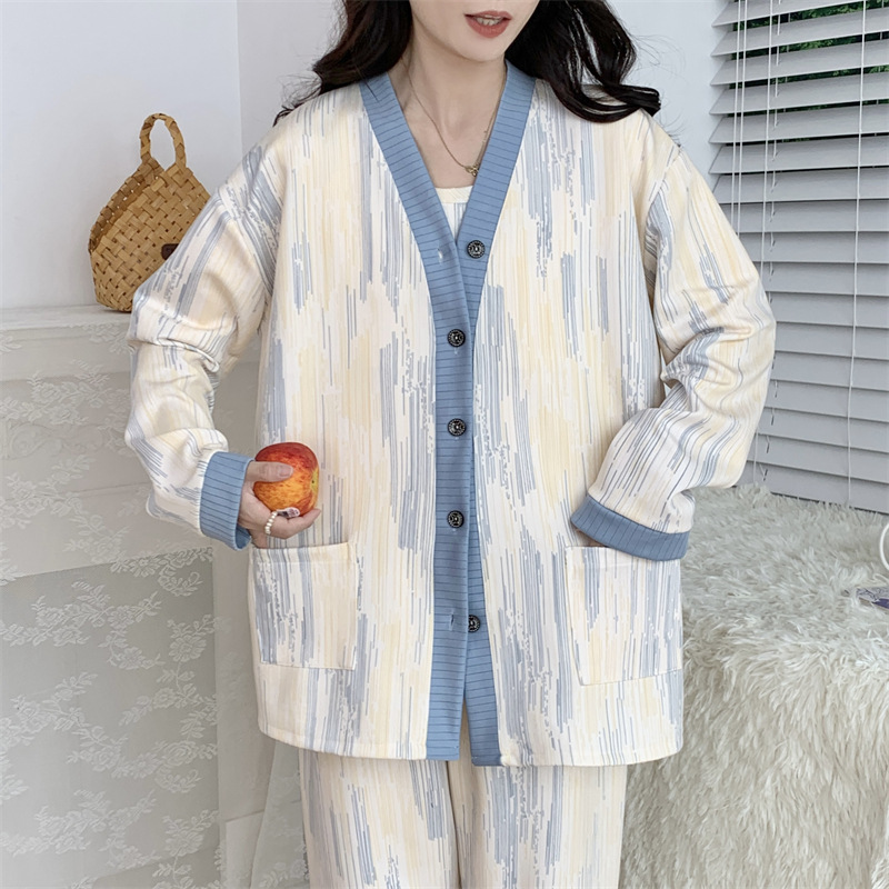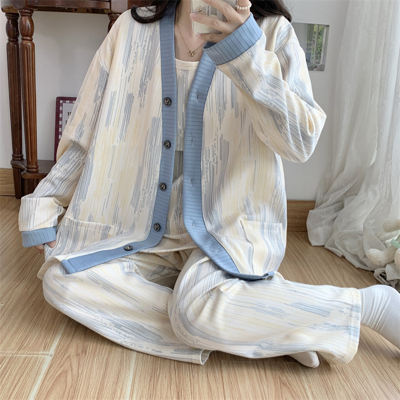 Весенне-осенний комплект для беременных больших размеров (до 136 кг), 4-9 месяцев после родов, для кормящих мам, из трех предметов, летняя пижама для кормящих мам, удлиненный крой