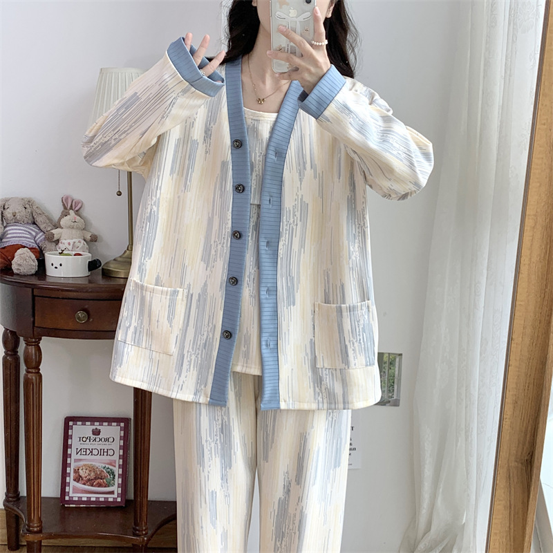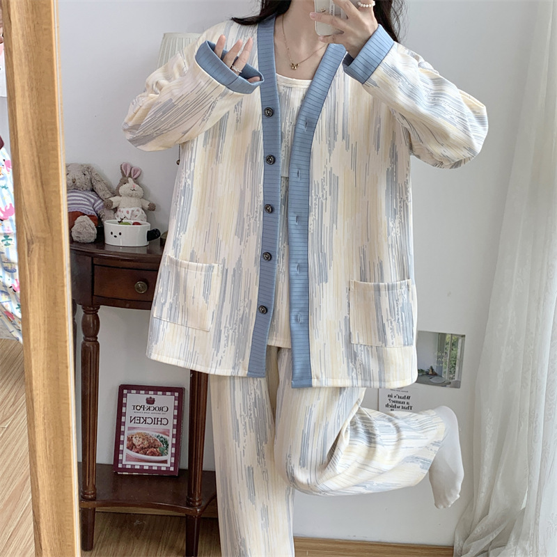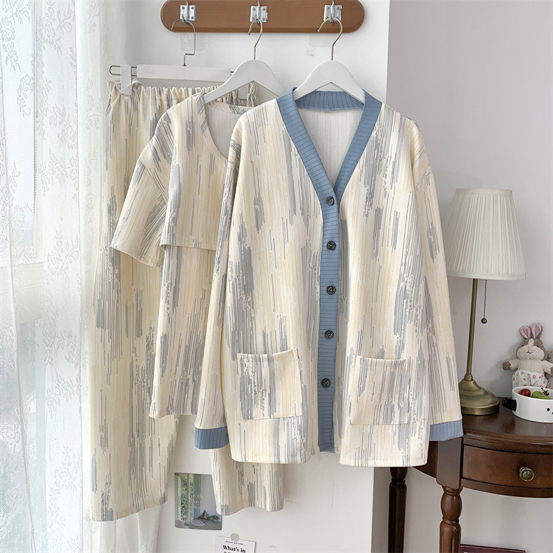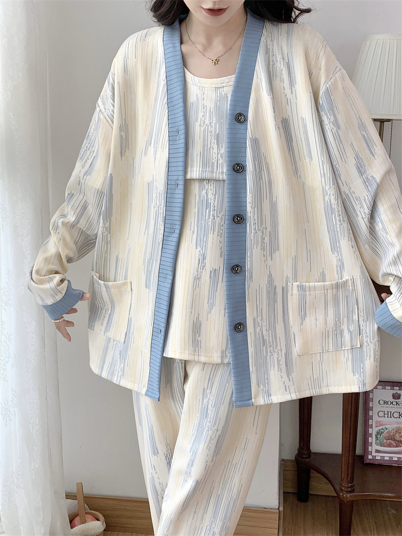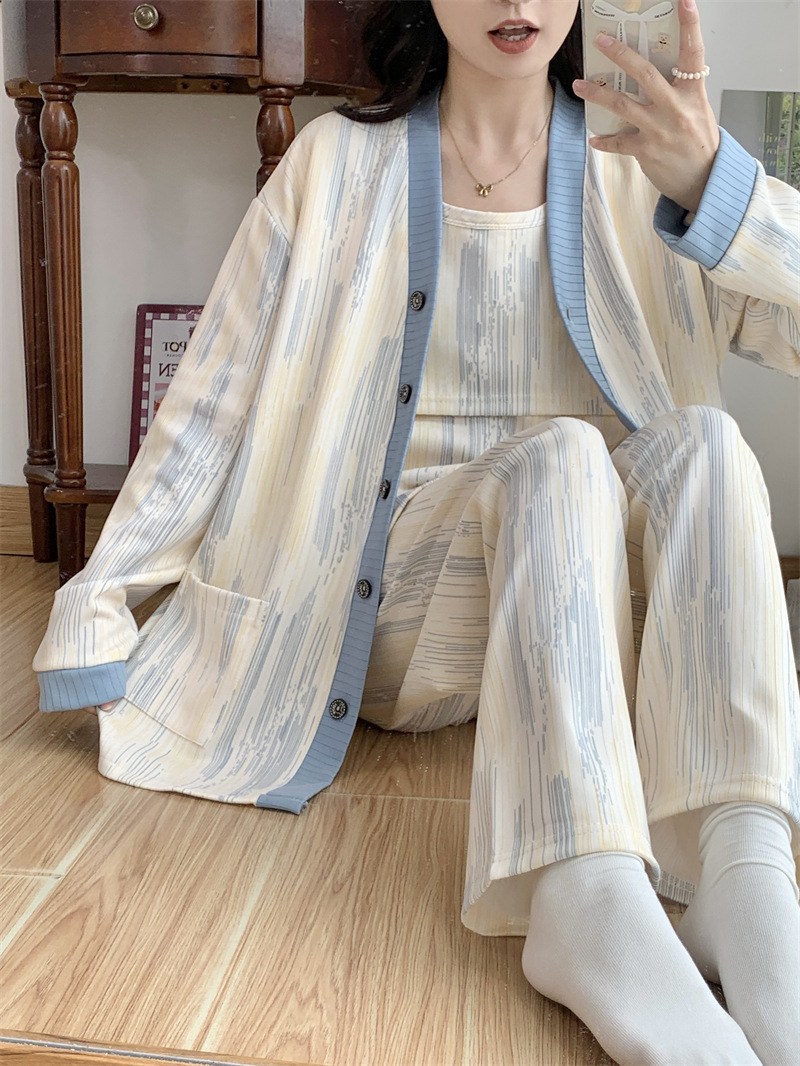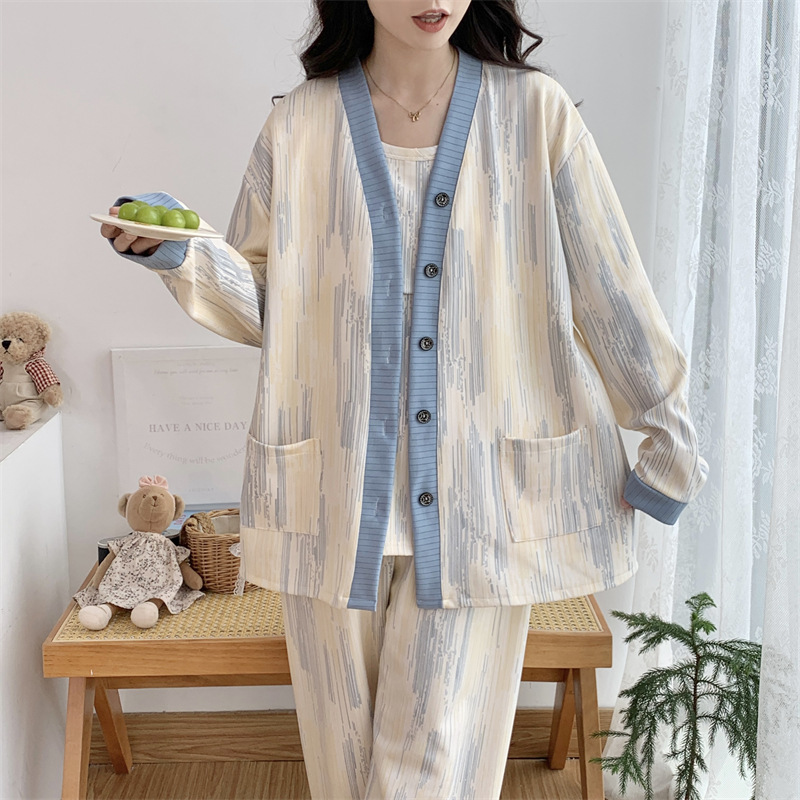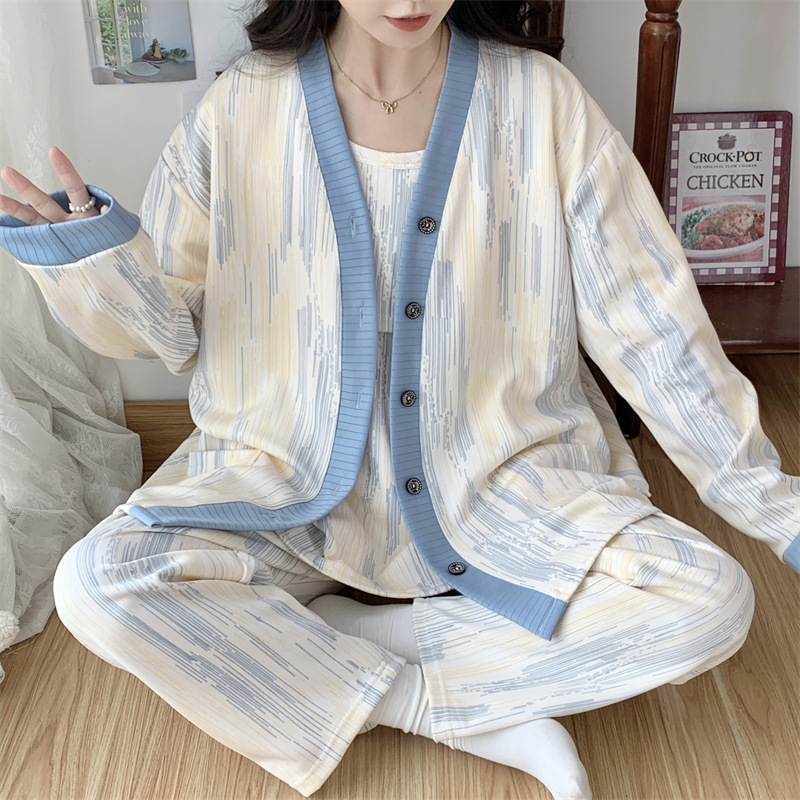 Весенне-осенний комплект для беременных больших размеров (до 136 кг), 4-9 месяцев после родов, для кормящих мам, из трех предметов, летняя пижама для кормящих мам, удлиненный крой