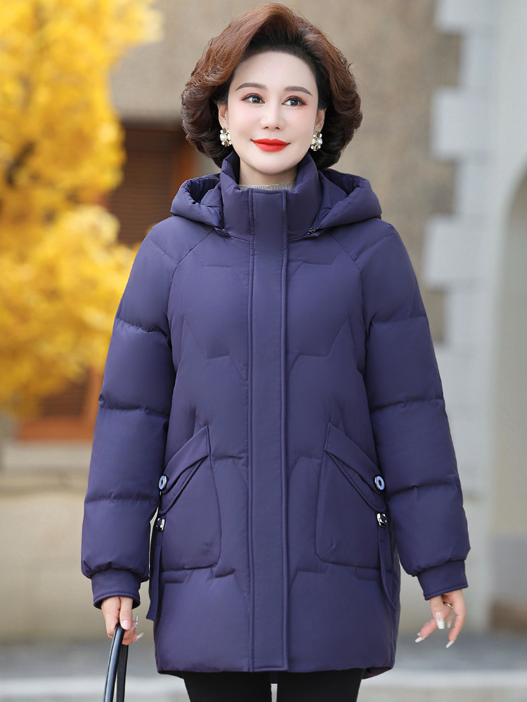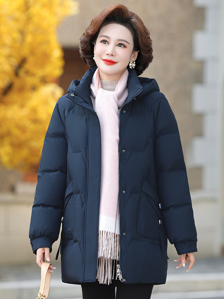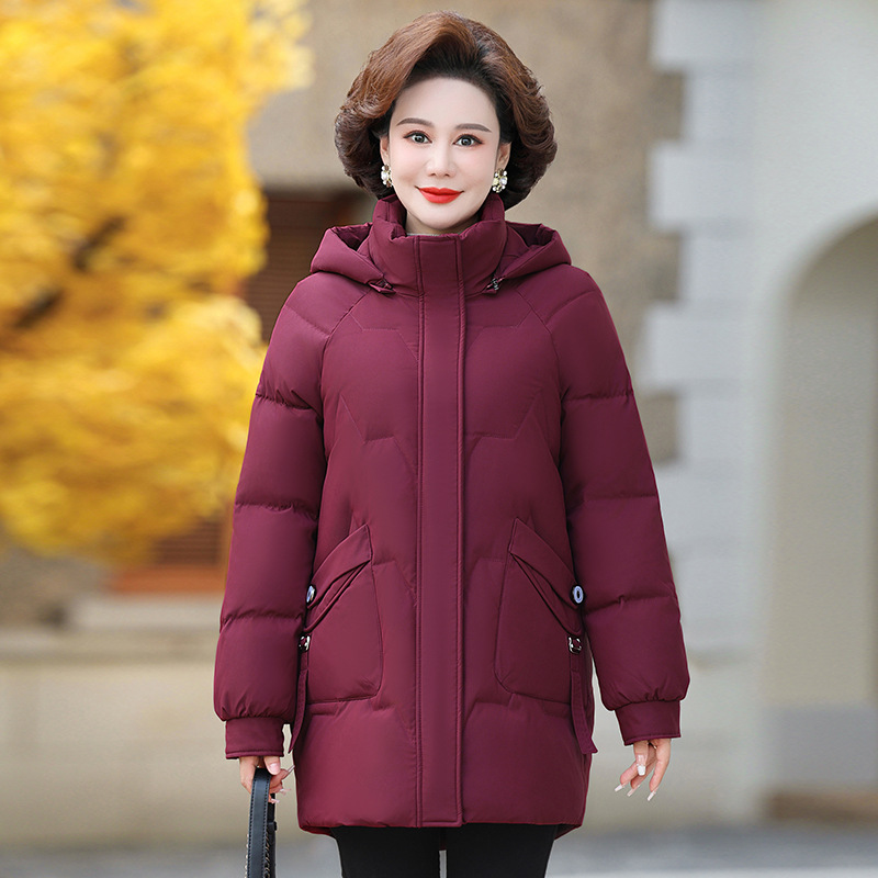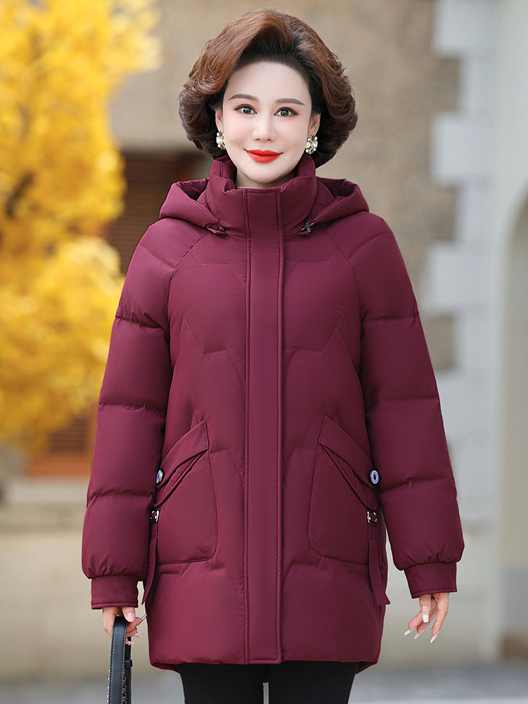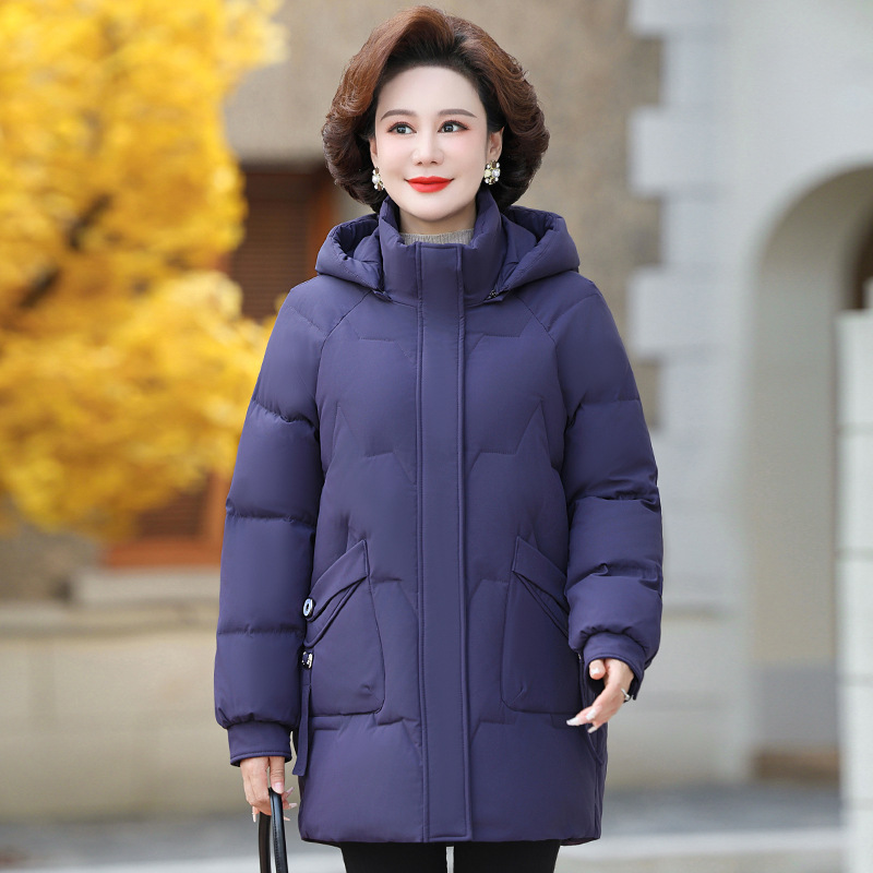 Оптовая продажа от производителя: новая модель женской пуховой куртки 2025 года, средней длины, больших размеров, зимняя одежда для женщин среднего и старшего возраста, утепленное пальто.