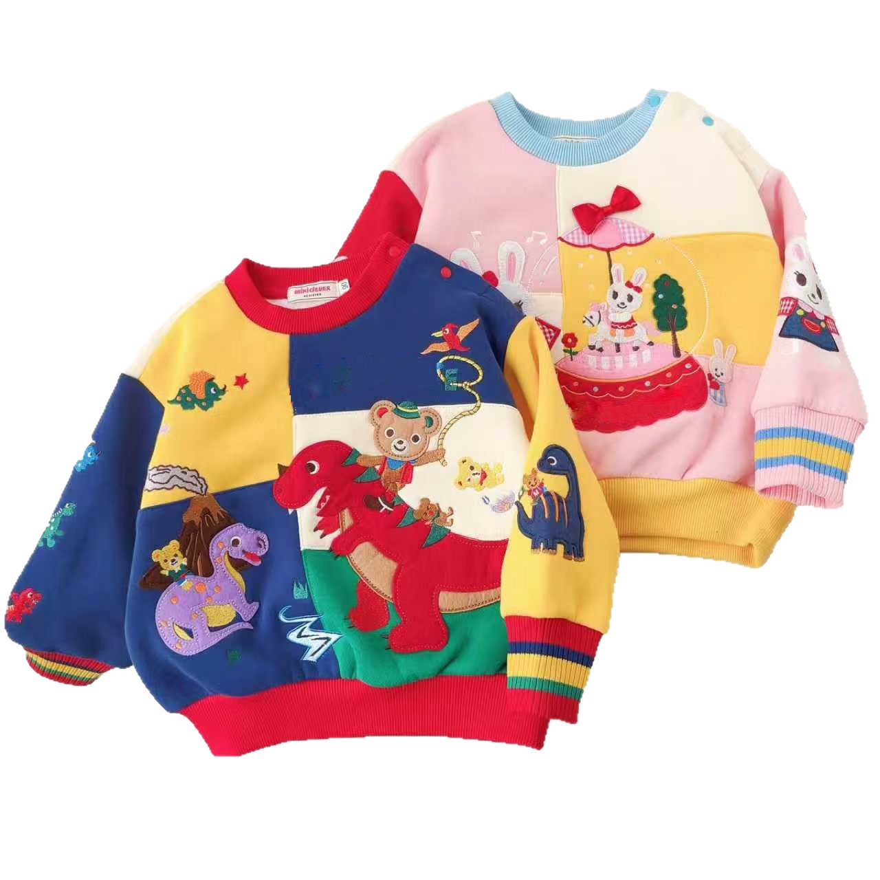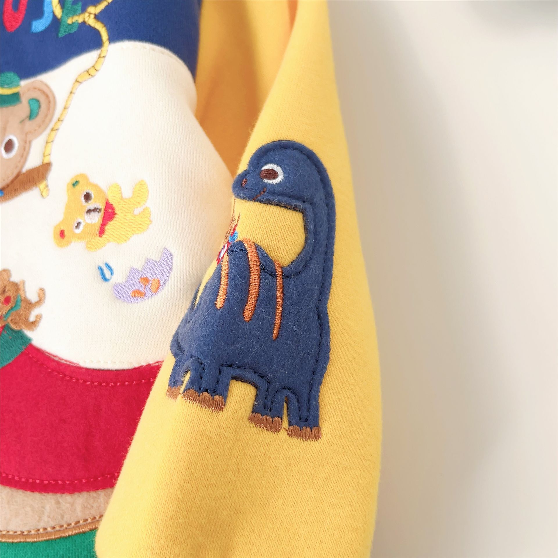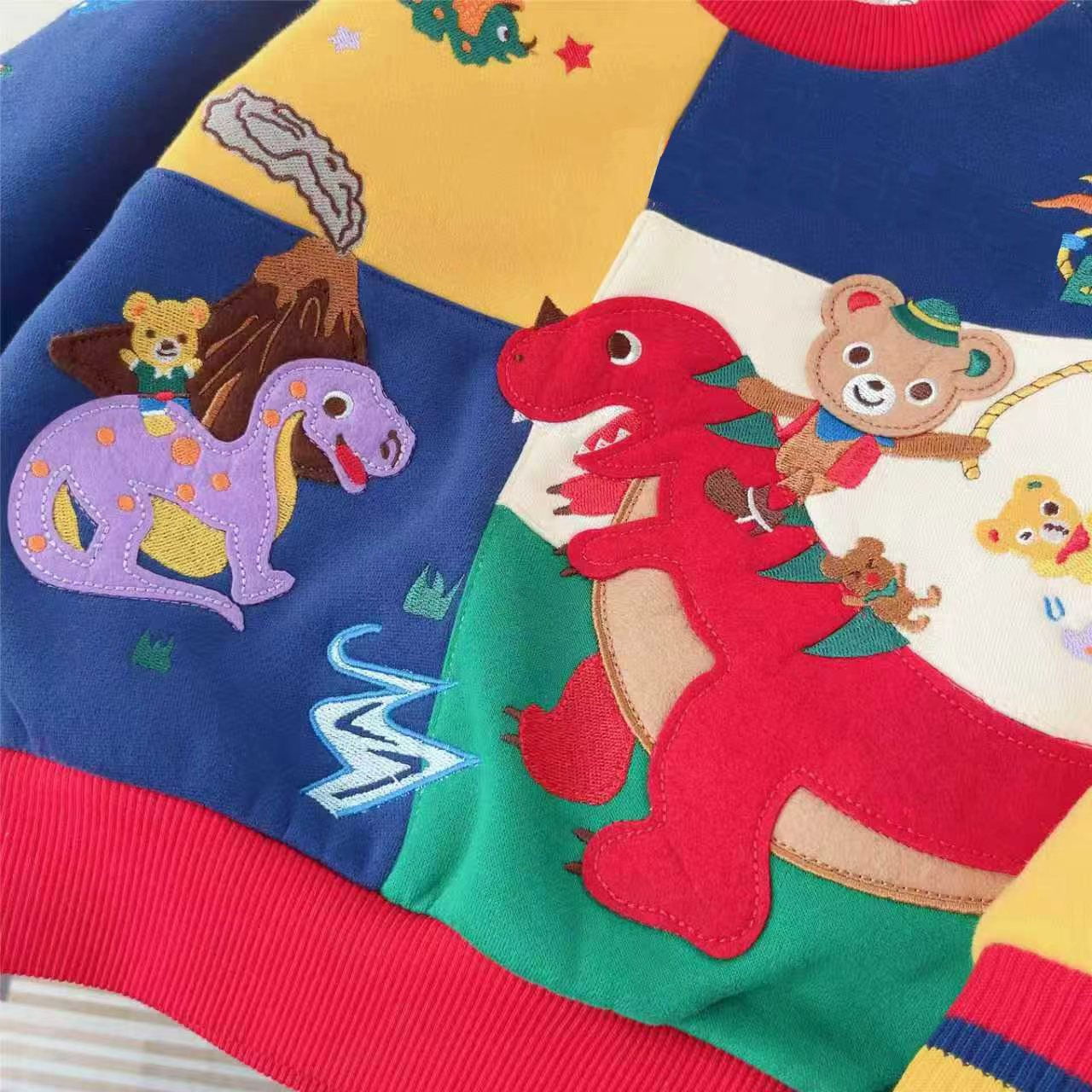 Роскошная толстовка в японском стиле с лоскутным узором в виде медведя, кролика и динозавра, новинка осени и зимы 2024 года, толстовка для мальчиков и девочек 6061
