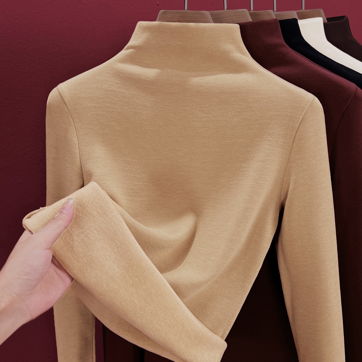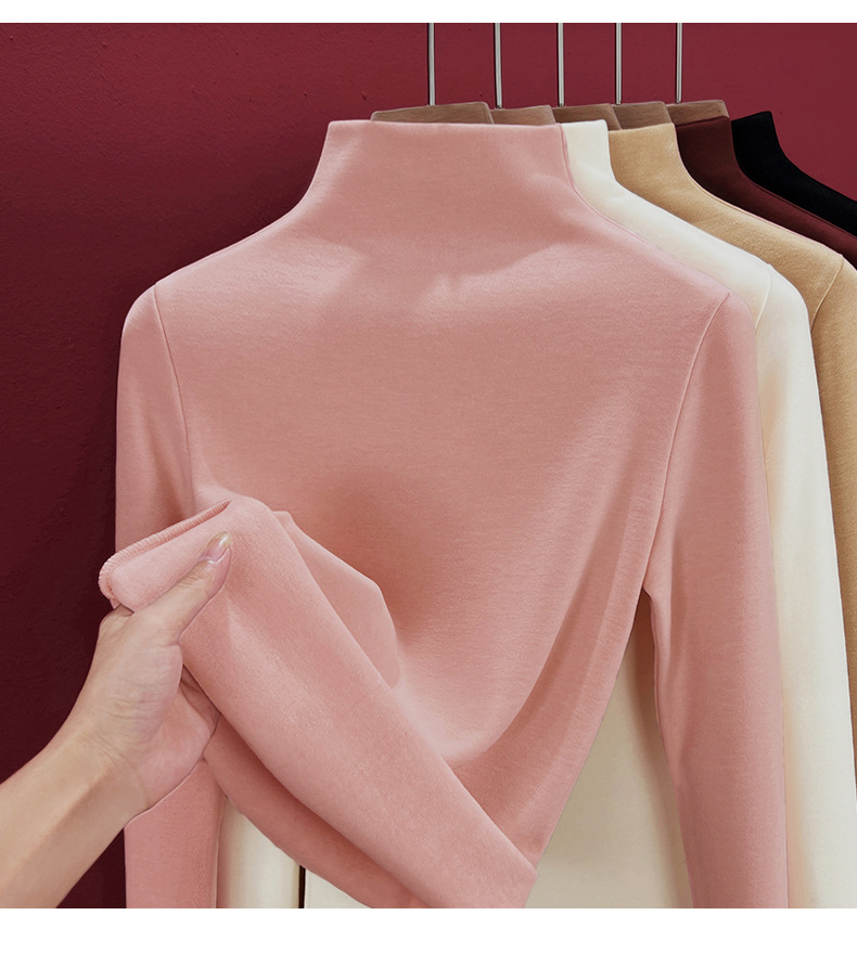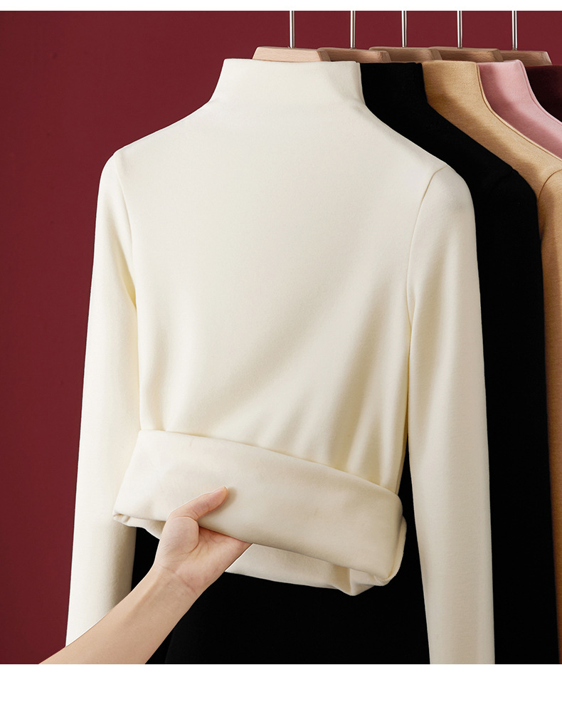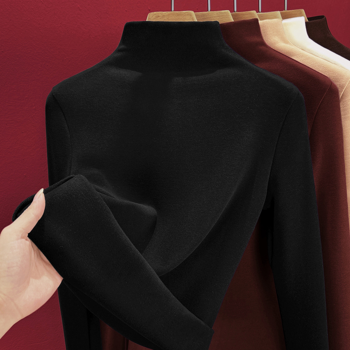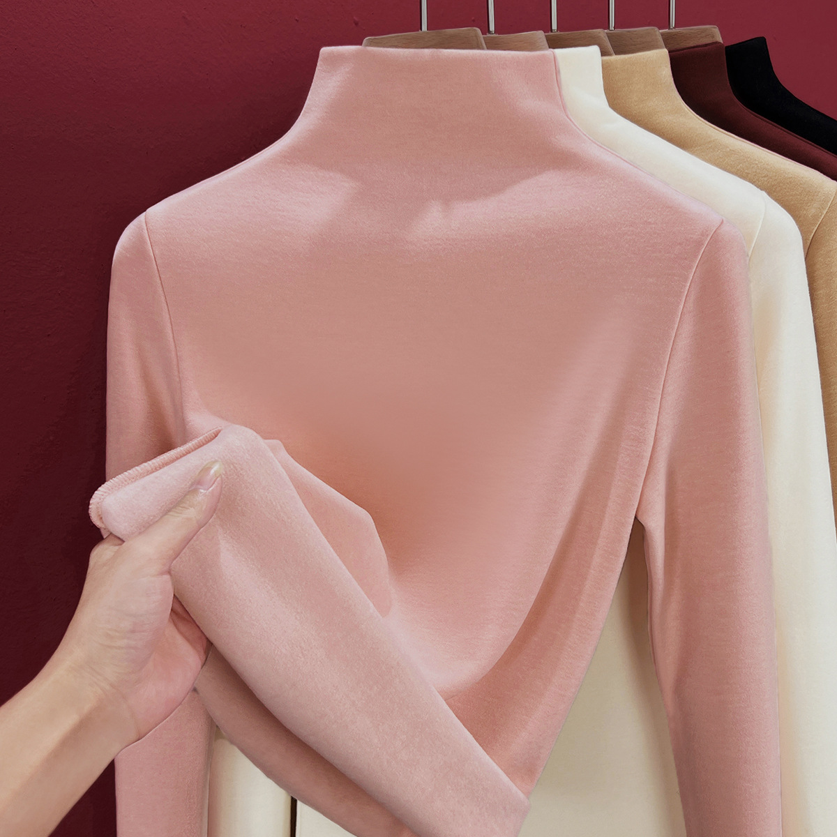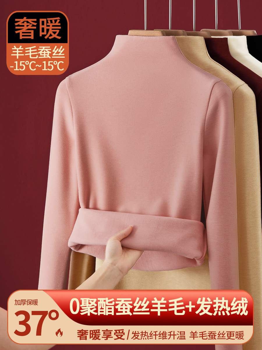 Шёлковая теплая флисовая термоодежда для женщин, внутренний слой — топ с дополнительным флисом и утолщенным воротником-стойкой, осенняя шерстяная базовая рубашка для зимы.